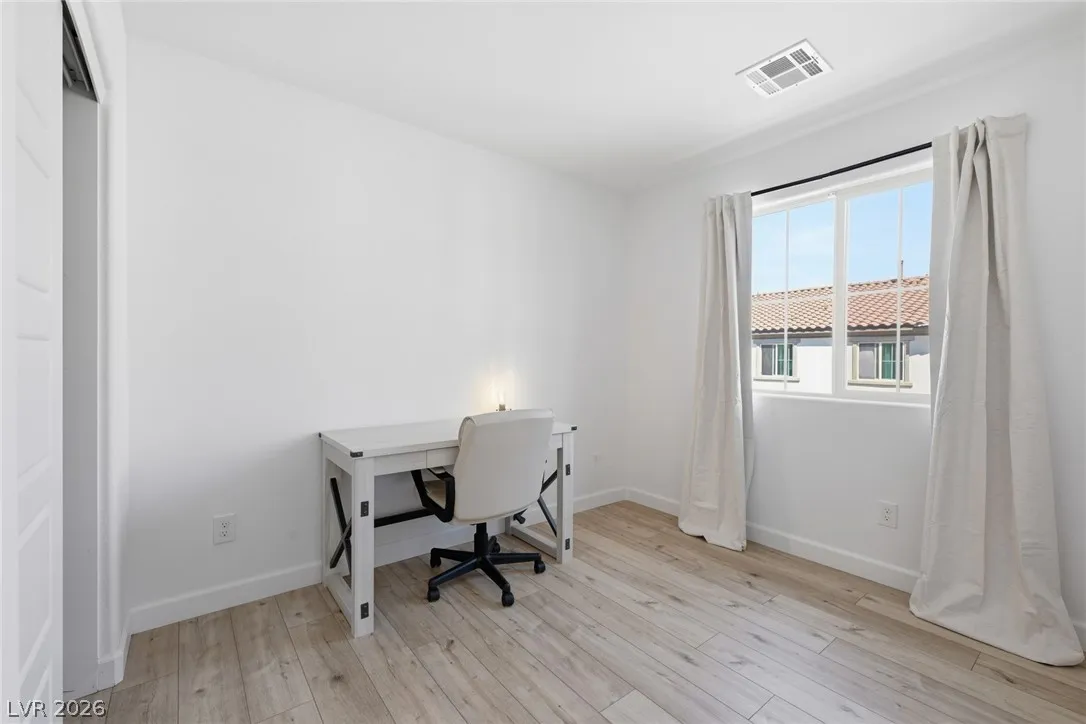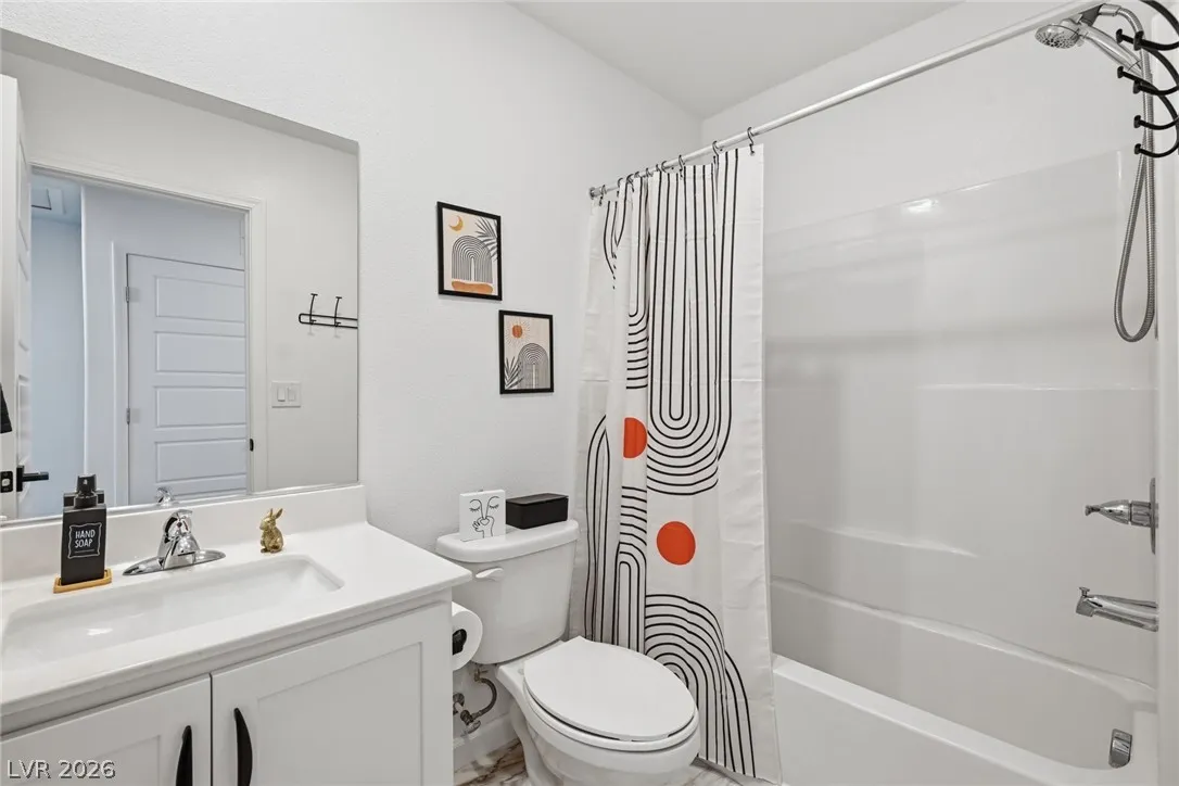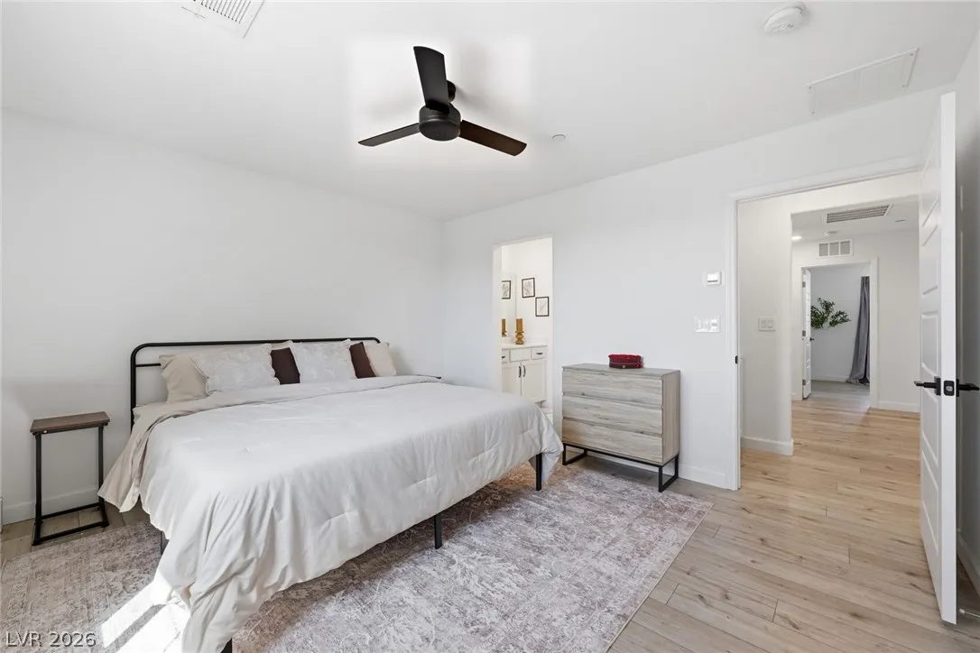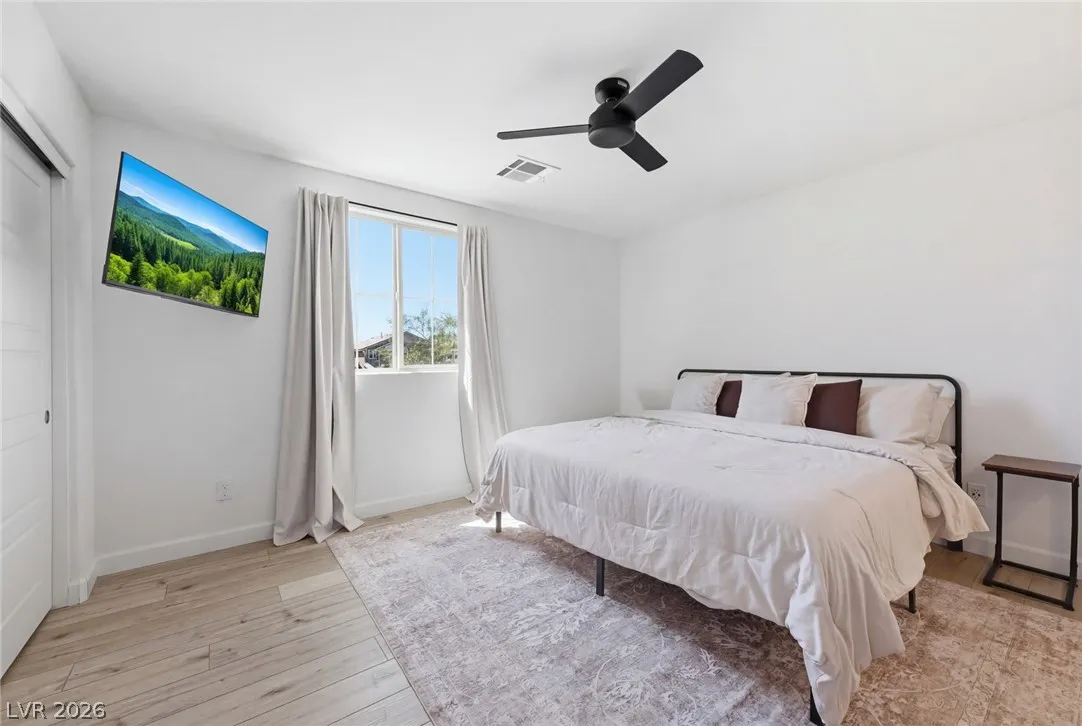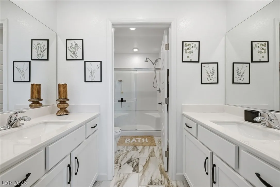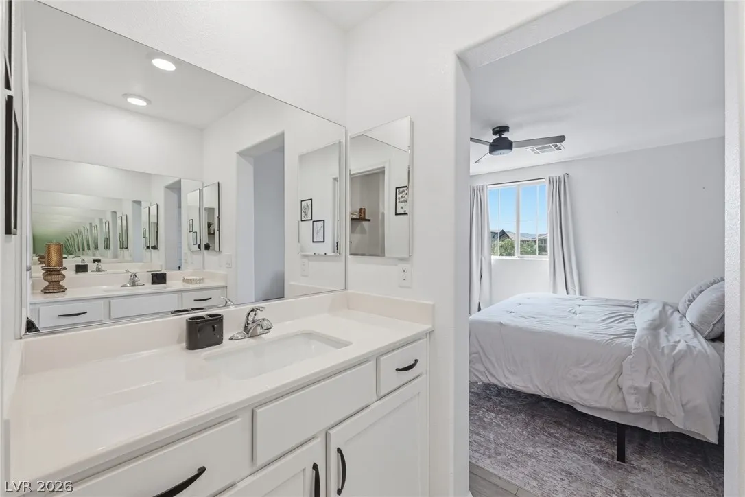 The spacious primary suite is designed for comfort with a dual-sink vanity, walk-in shower, upgraded closet, & breathtaking valley views that provide the perfect evening backdrop. Additional features include epoxy-coated garage floors, extended paver driveway, & thoughtful finishes throughout that elevate both style & functionality. Conveniently located within walking distance to community amenities including the central pool, park, fitness court, pickleball courts, & playground. Set within the Cadence community just minutes from premier dining, shopping, & entertainment. Welcome Home!