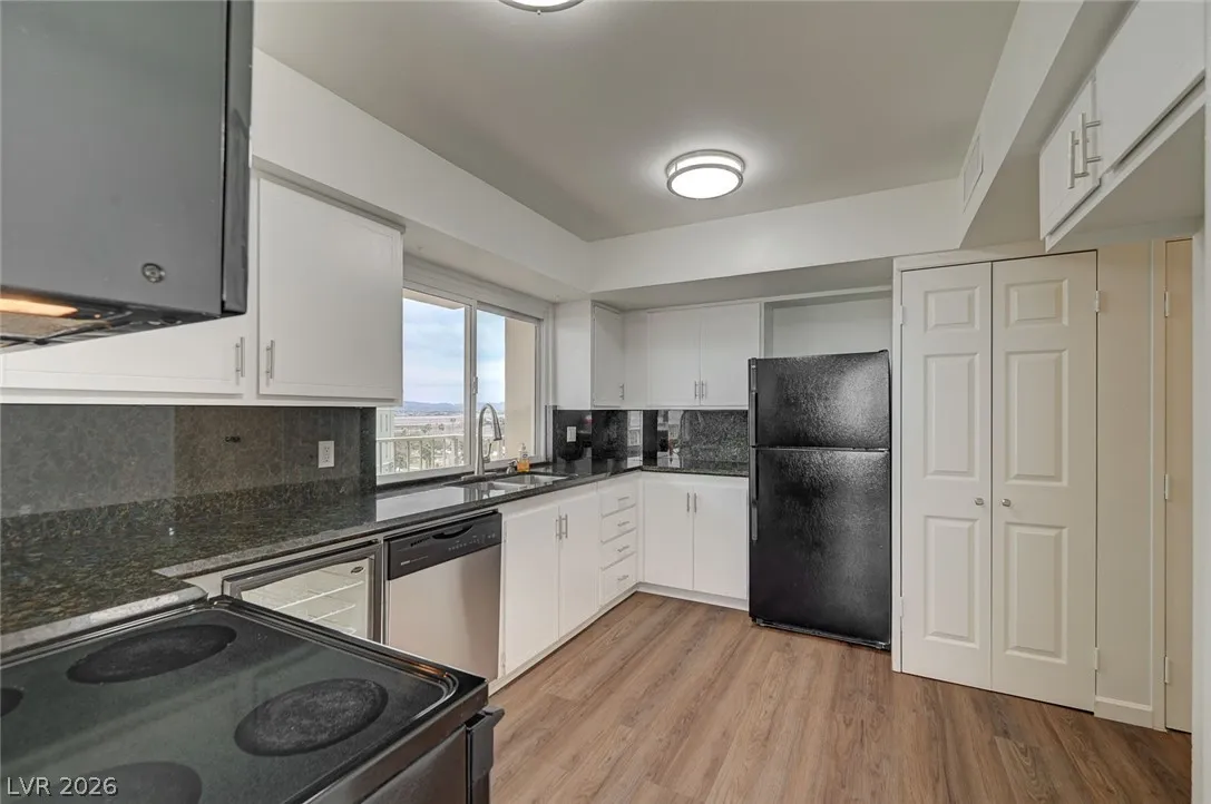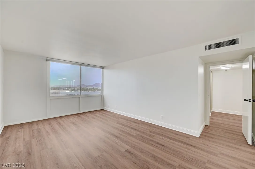 Experience luxury high-rise living in a newly remodeled 2-bedroom, 2-bathroom unit on 9th floor with oversized balcony. Enjoy breathtaking Las Vegas Strip views, to including the Sphere and overlooking Formula 1 Las Vegas Grand Prix. A modern kitchen features white cabinets, black granite countertops w/full backsplash to cabinets, and wine fridge. Both oversized bedrooms offer even more spectacular views! Located just moments from world-class dining, entertainment, shopping, and nightlife. This condo offers the ultimate Las Vegas lifestyle, Property amenities include multiple tennis courts, basketball, gym, pool, and game room with billiards. Unit includes 1 assigned parking space in garage. Typical application processing time is 3-4 business days. MIN 640 CREDIT SCORE & 3x INCOME (NET) REQUIRED. If approved max hold time is 2 weeks before lease must begin. All information contained herein intended to be accurate but should be independently verified by any interested party.
