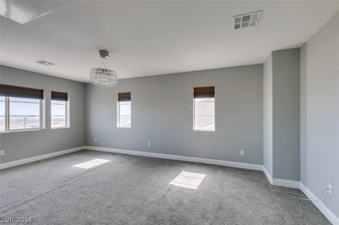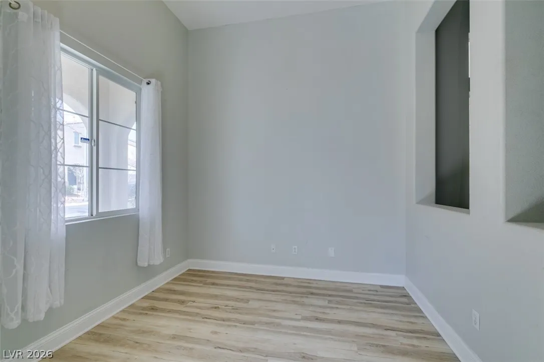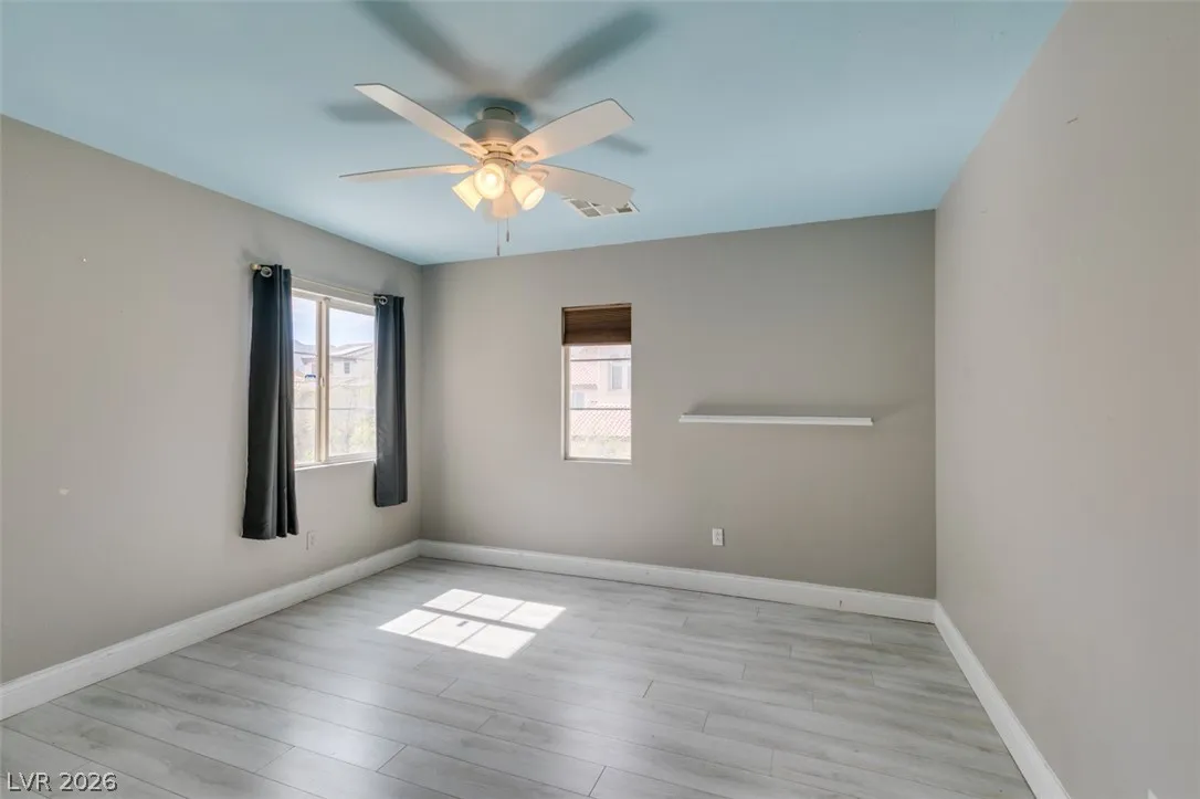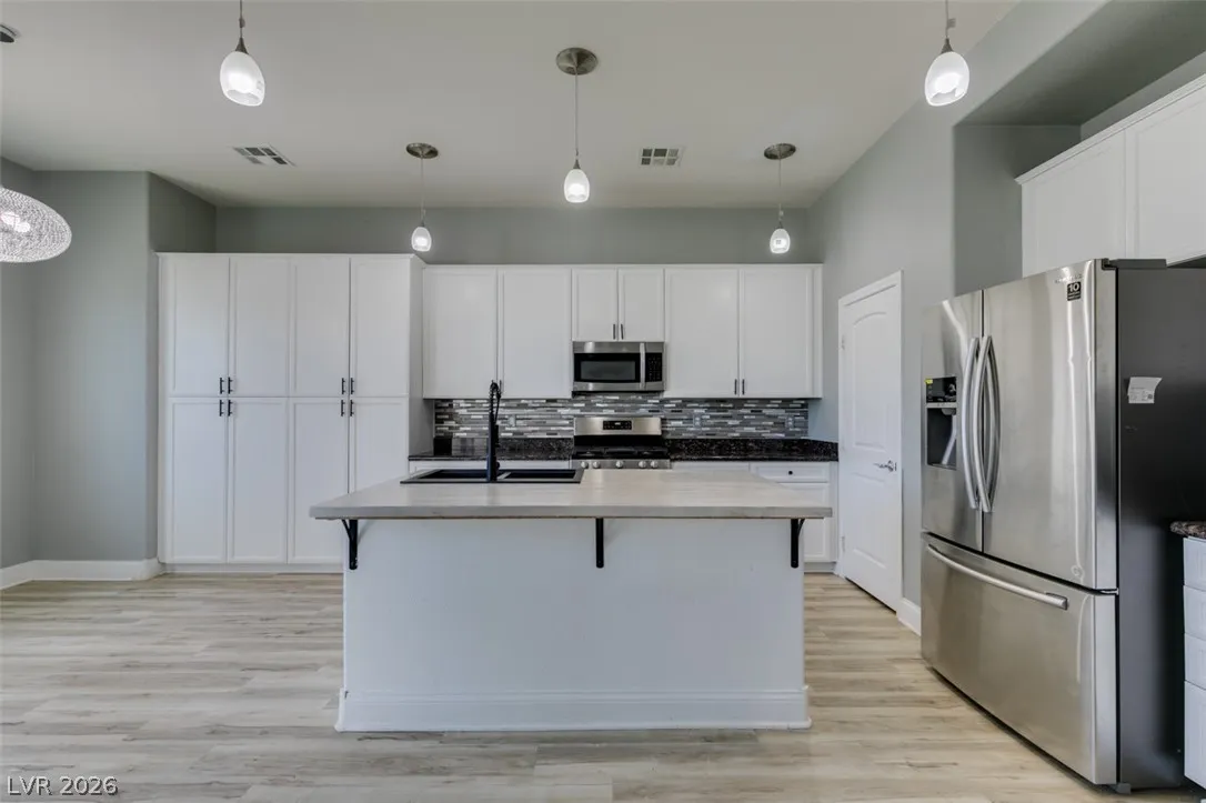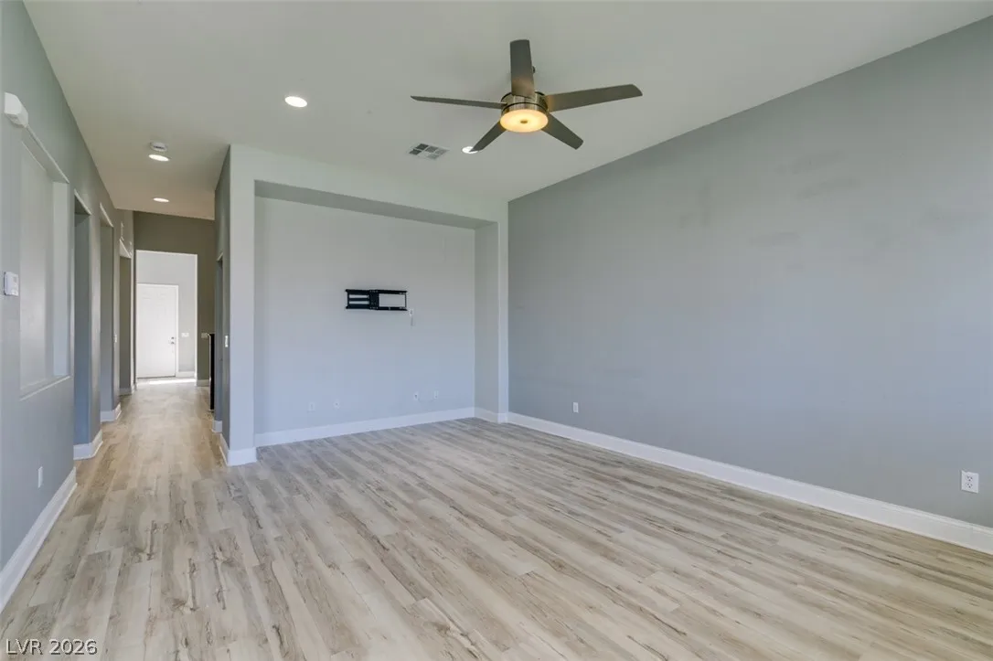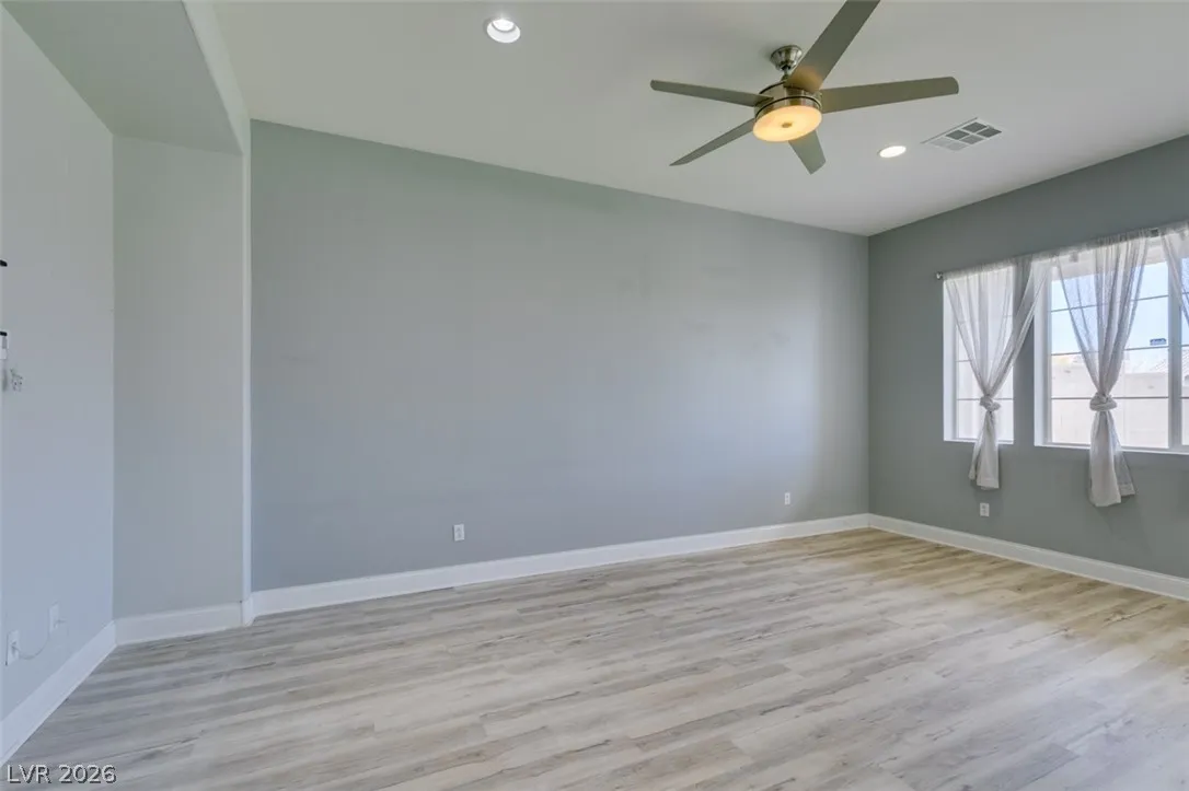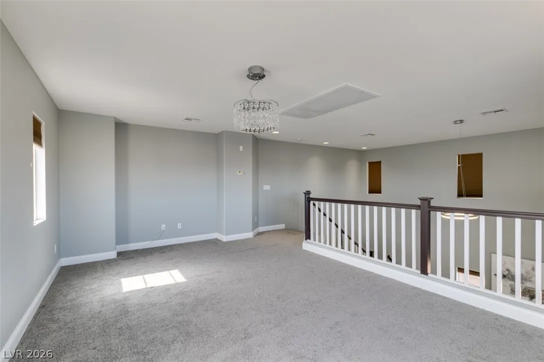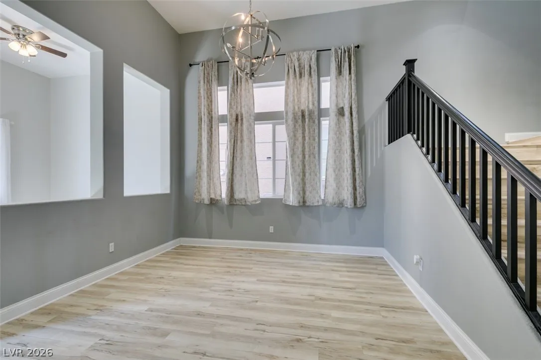Step into this stunning 4-bedroom, 3-bath home featuring a unique open layout and modern designer touches. The main level welcomes you with luxury vinyl flooring, a versatile den perfect for a home office, and a bright formal living room with vaulted ceilings. The spacious family room flows seamlessly into a clean, white kitchen with granite countertops, tile backsplash, stainless steel appliances, and an eating nook ideal for dining. Upstairs, the two-story primary suite boasts a balcony, walk-in closet, and spa-like bath with dual vanities, soaking tub, and separate shower. Three additional bedrooms and an upstairs loft with city and mountain views provide flexible space for relaxing or working from home. This home perfectly blends style, comfort, and functionality.