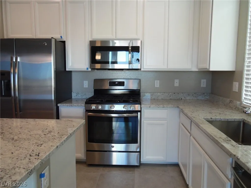 Beautiful 2 bedroom condo in gated Watermarke Community located in Mountains Edge! Spacious, open floor plan features large living and dining room combination with tile flooring, bedroom are carpeted, 2 tone paint in neutral colors. Bright & Modern kitchen with granite countertops, island, all appliances. Patio doors lead to sun deck. 2 car garage on ground level with living quarters directly above. Gate community features clubhouse & pool! Owner will consider small pets (under 25 pounds) with a $350 pet deposit per approved pet.