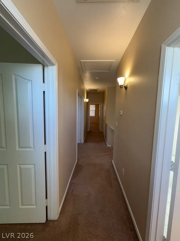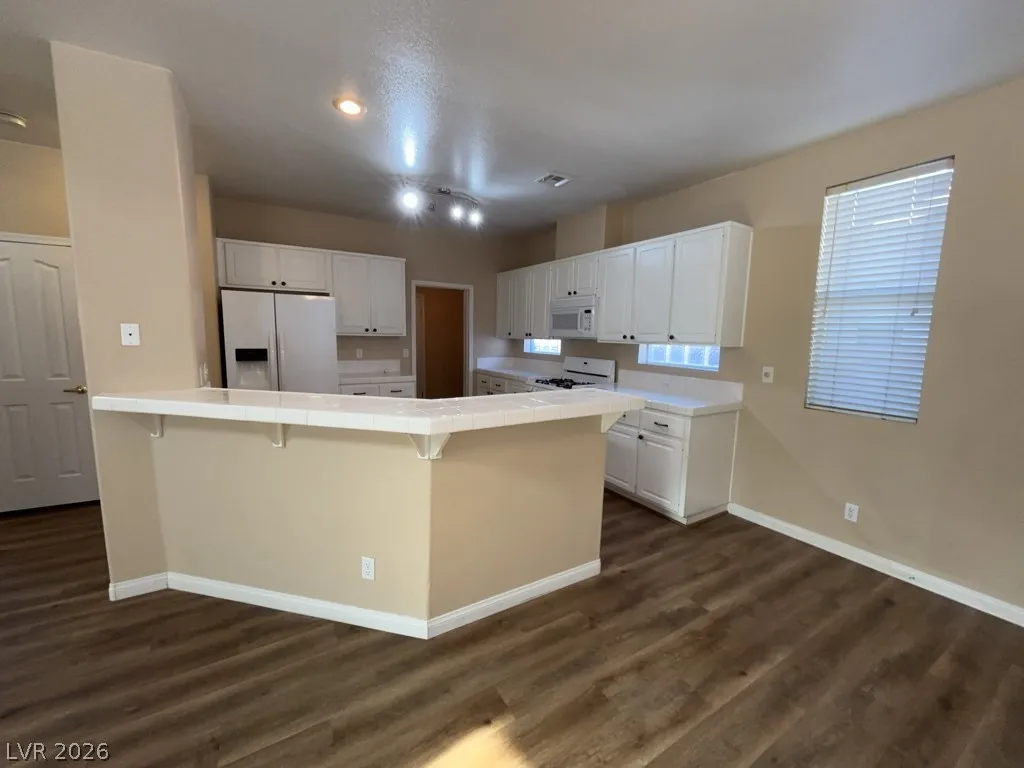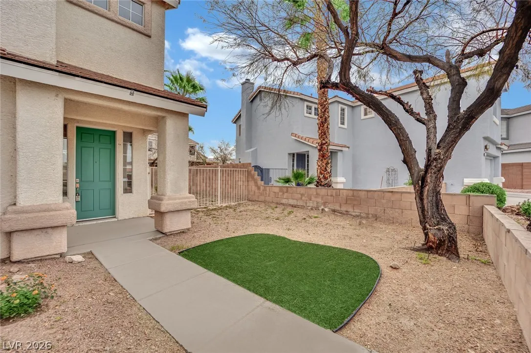 Green Valley North – quite location and nicely refreshed landscaping. Very open and airy downstairs with double height ceiling, multiple upper and lower windows lets in excellent natural light from the East. Dark vinyl plank flooring contrasts nicely with paint finish. Open concept flows into the u-shaped kitchen with breakfast bar, pantry, tons of cabinetry. Off kitchen is a very large laundry room with upper cabinets – there is space to add a laundry tub sink or dog wash station! Spacious upstairs bedrooms. Middle bedroom has a full length bench ledge. Primary bedroom has 2 double closets. Zoned for Green Valley High School!! Within minutes to Green Valley Park, Pecos Legacy Park and Fox Ridge Park. Galleria Mall about 10 minutes away.