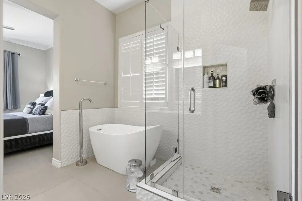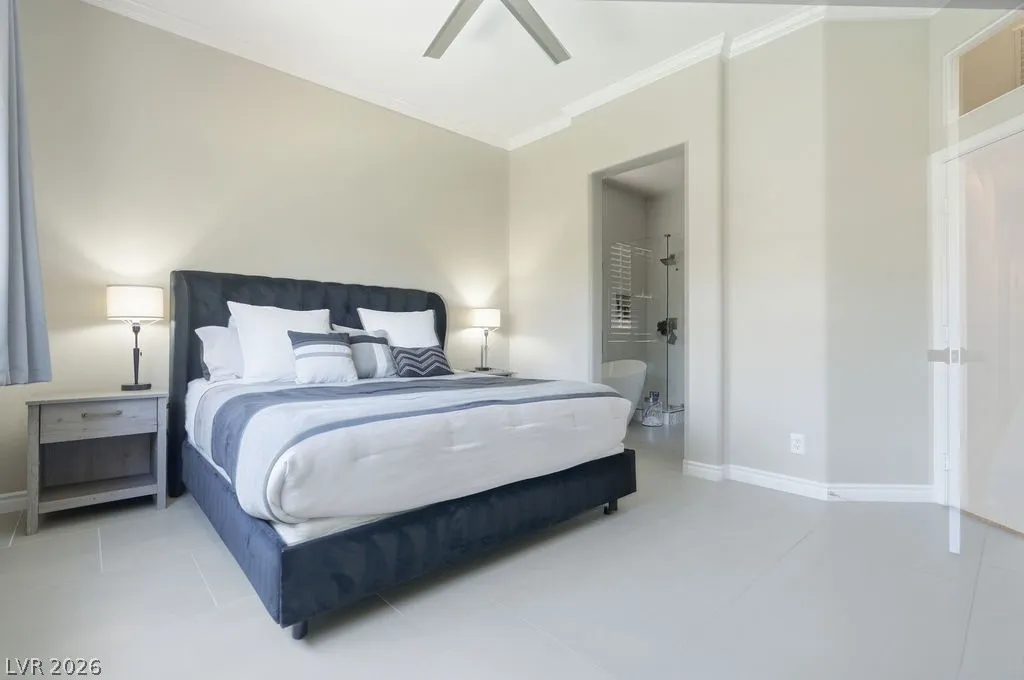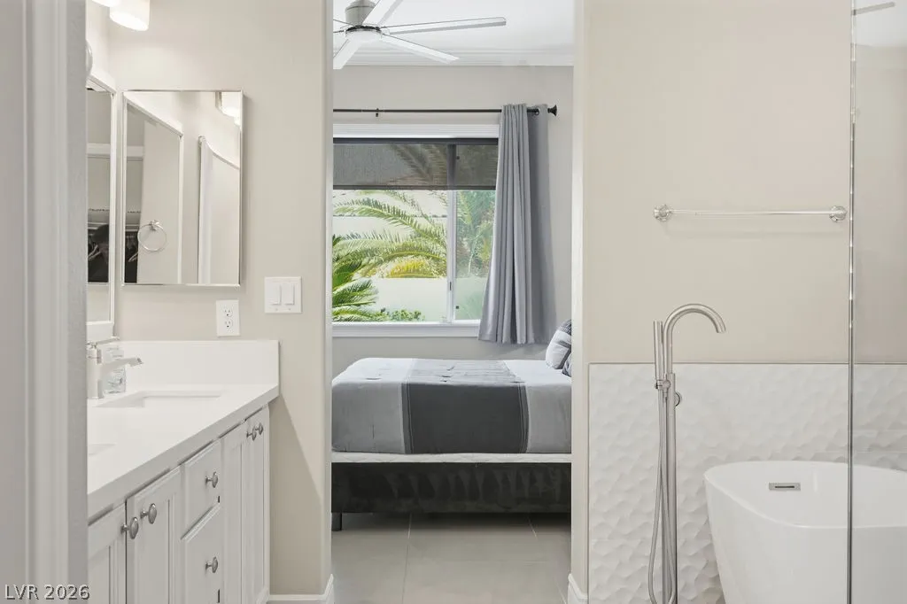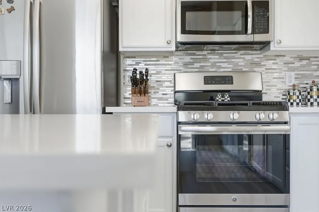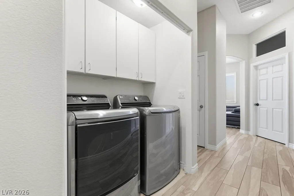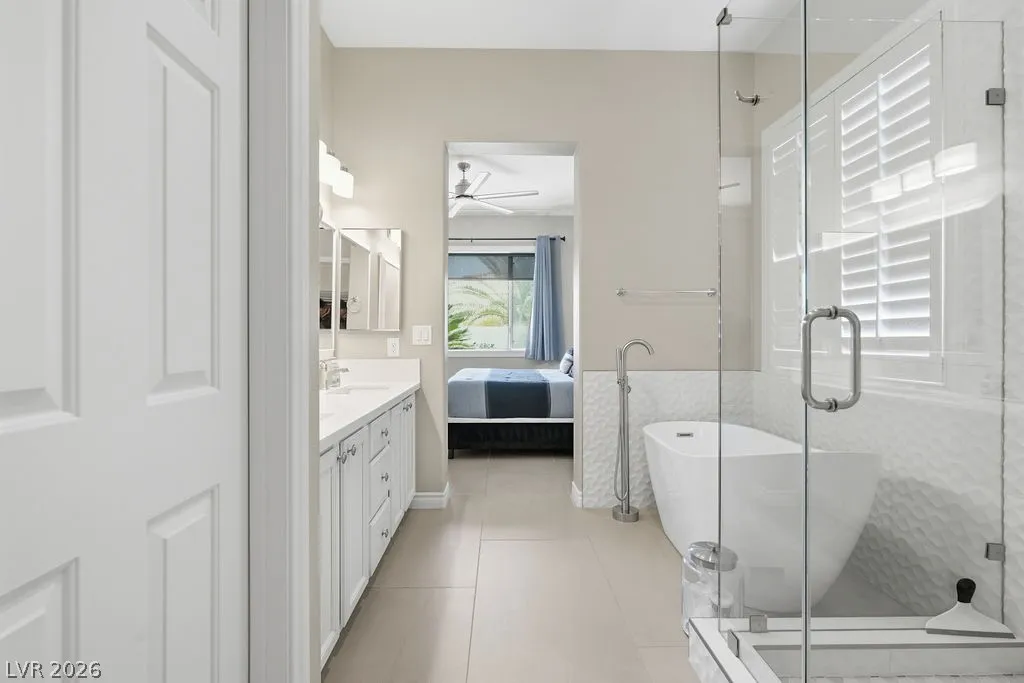 Fully furnished single-story home in Summerlin featuring an open floor plan with 3 bedrooms, 2 bathrooms, a 2-car garage, and a private pool. The spacious living area flows seamlessly into the dining space and fully equipped kitchen with stainless steel appliances and quartz countertops. The primary suite includes a walk-in closet and en-suite bath. — truly move-in ready. The backyard offers a sparkling private pool and covered patio, perfect for enjoying the Las Vegas lifestyle. Minutes from Downtown Summerlin, Red Rock Canyon, and the 215 Beltway.