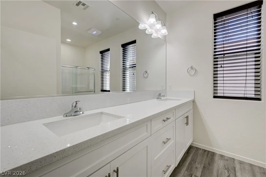 BATHROOMS HAVE A STYLISH UPDATED LOOK WITH QUARTZ COUNTERTOPS. THE PRIVATE BACKYARD IS