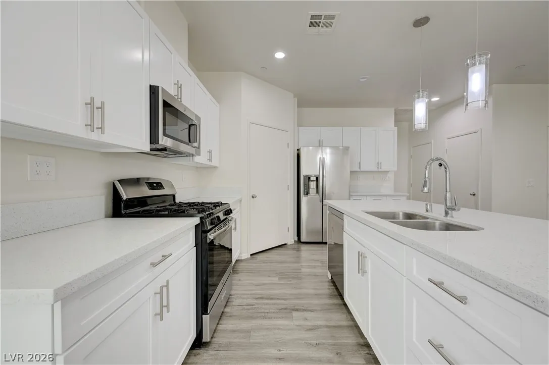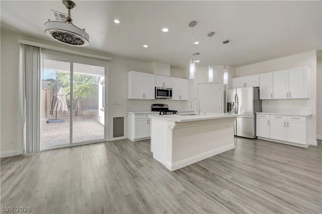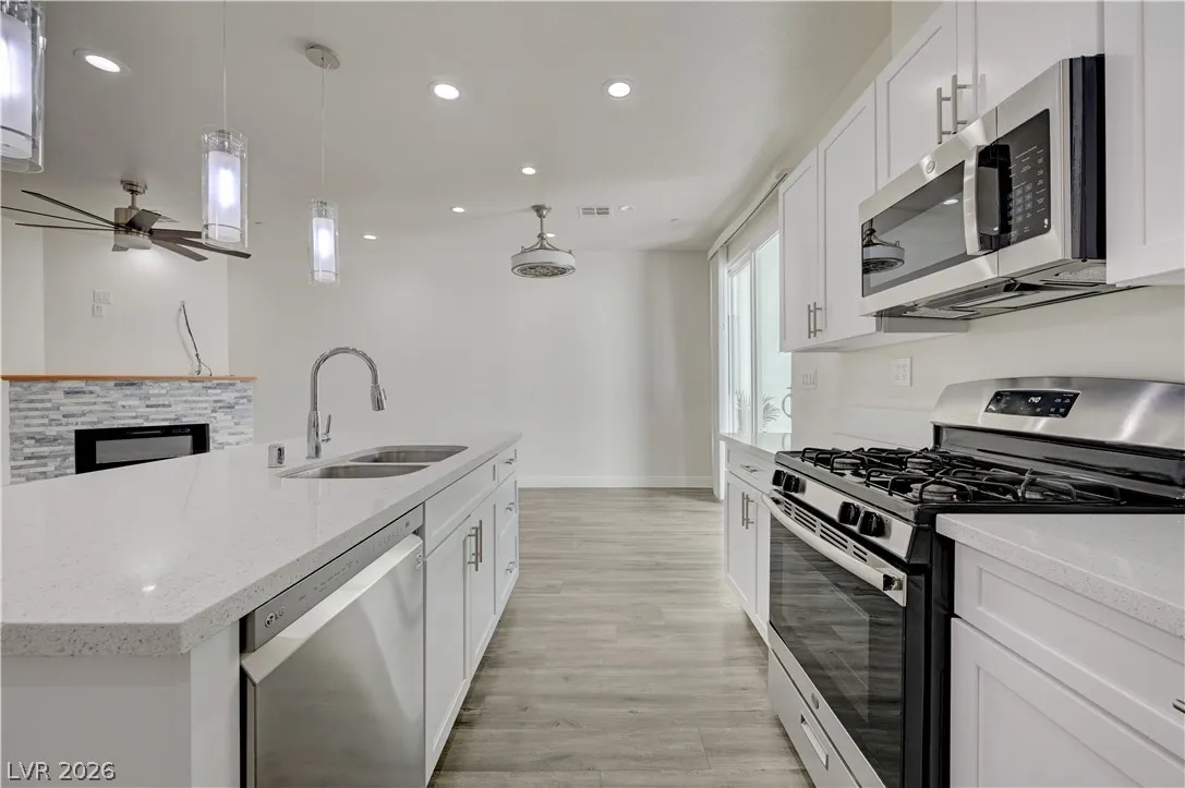 LOVED ONES. THE KITCHEN OFFERS QUARTZ COUNTERTOPS, A QUARTZ ISLAND, AND RECESSED LIGHTING