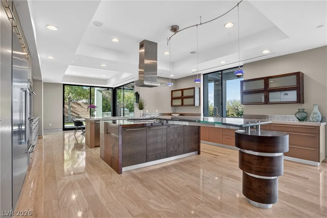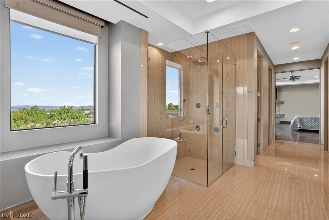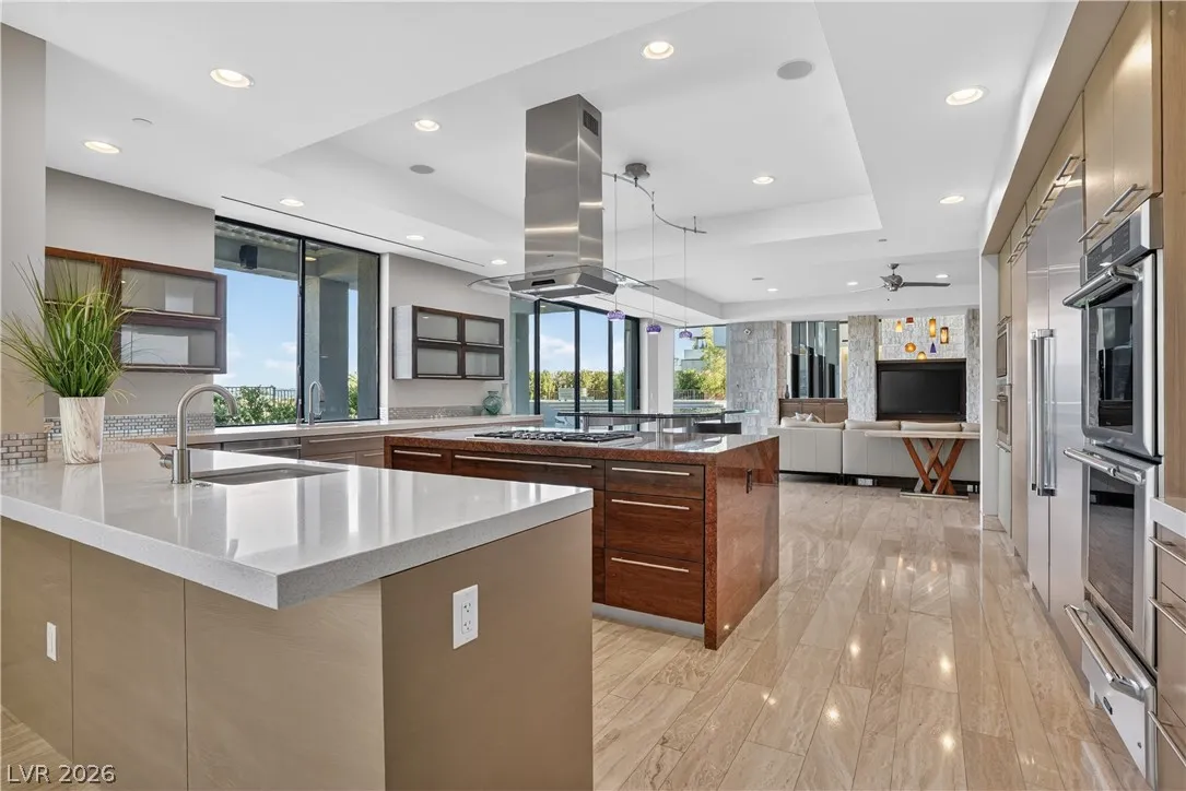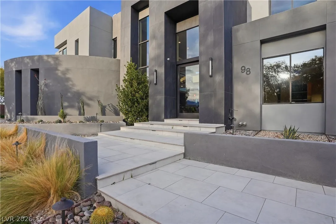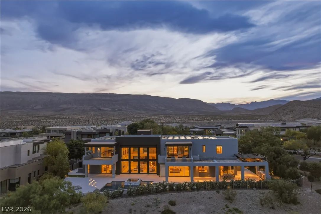 Located in The Azure community of The Ridges – 98 Sun Glow sits on almost a half acre private lot overlooking stunning golf course & strip views. The exclusive guard gated community tucked into the Red Rock Mountains is known for modern amenities & security, located 5 minutes from Downtown Summerlin & freeway access. A new private golf club is being built, almost completed. The entry immediately impresses with floor to ceiling windows showing off the view & brand new pool & spa. Downstairs, multiple living areas & an open kitchen, multiple bedrooms, an office & laundry room. The private backyard is perfect for entertaining w/ a built in kitchen & dining area, firepit & raised patio. Upstairs a large loft, laundry room, two bedrooms & the stunning master suite. A large private balcony provides direct Vegas strip & valley views. The master bath includes his & her everything, multiple closets & sauna. Large paid off solar for low energy bills. Available furnished & open to shorter terms.