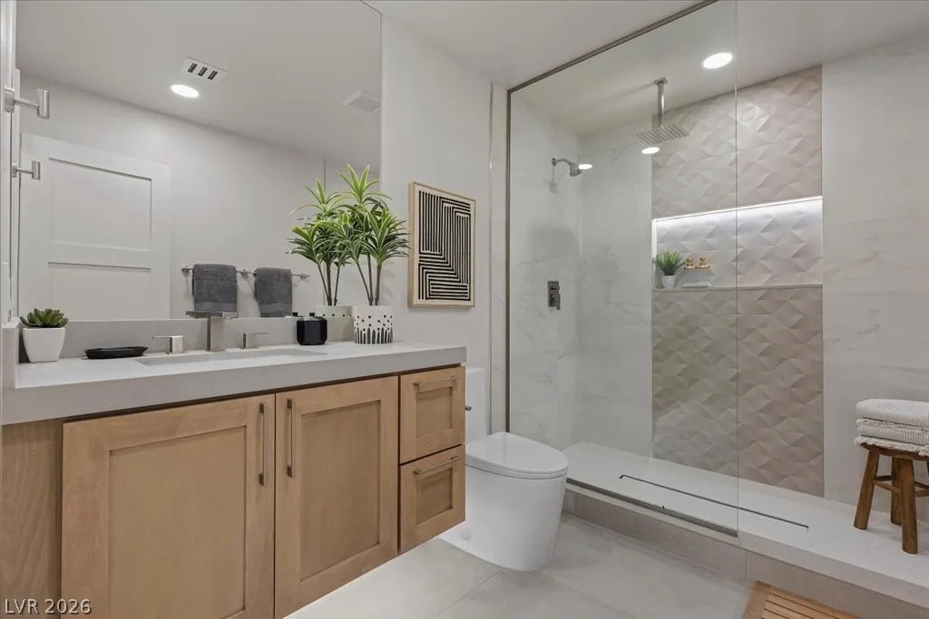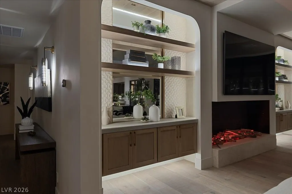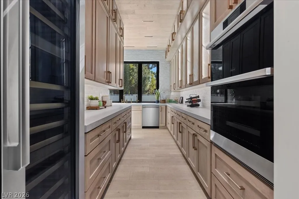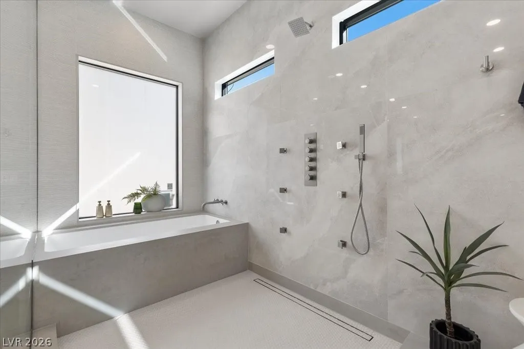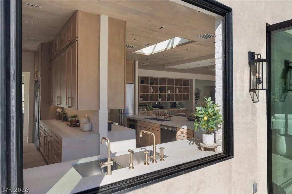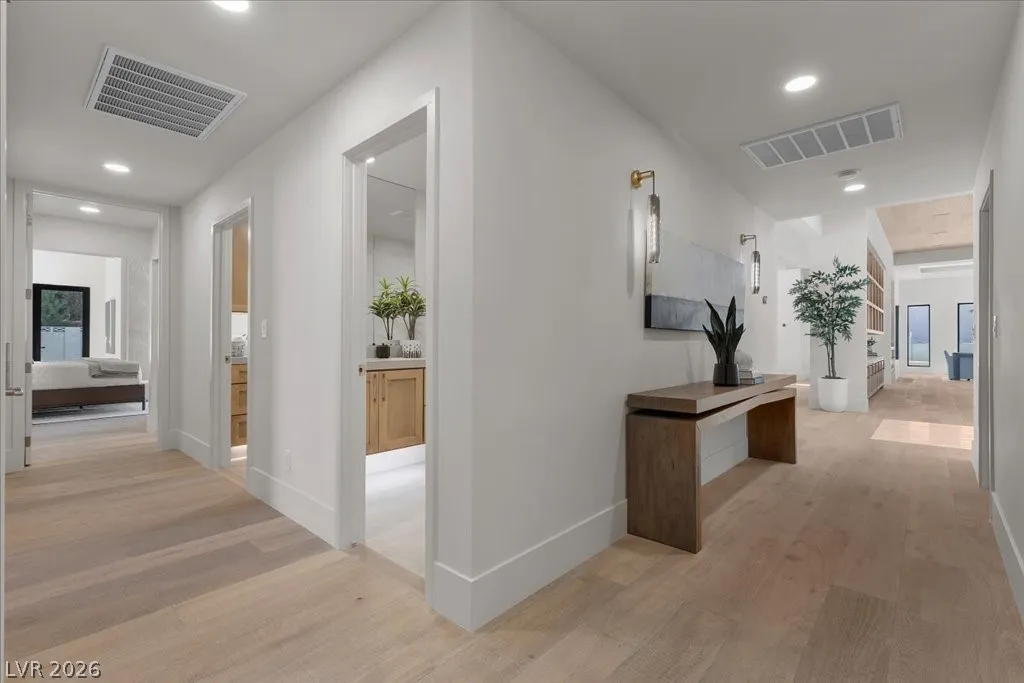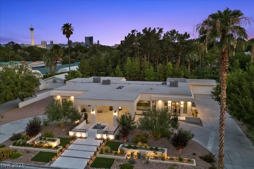Nestled within the exclusive guard-gated Rancho Bel Air neighborhood of the Las Vegas Historic District, this fully reimagined, 4,475 sq. ft. home on a ½-acre lot offers a harmonious blend of architectural artistry, privacy, and luxury. Featuring four spacious bedrooms and five luxurious bathrooms, each adorned with carefully selected custom finishes and fixtures that seamlessly blend modern sophistication with timeless elegance. Designer furniture, specifically curated for the residence, is included for a turnkey opportunity. The private backyard retreat boasts a brand-new pool, an outdoor kitchen, and an entertainment area featuring a “disappearing” television. Experience the exclusivity of this iconic neighborhood, conveniently located minutes from the Las Vegas Strip and major freeways.This masterpiece, a signature Paragon creation, embodies a true fusion of architectural artistry, privacy, and luxury. A visit is highly recommended to fully appreciate its exceptional qualities.