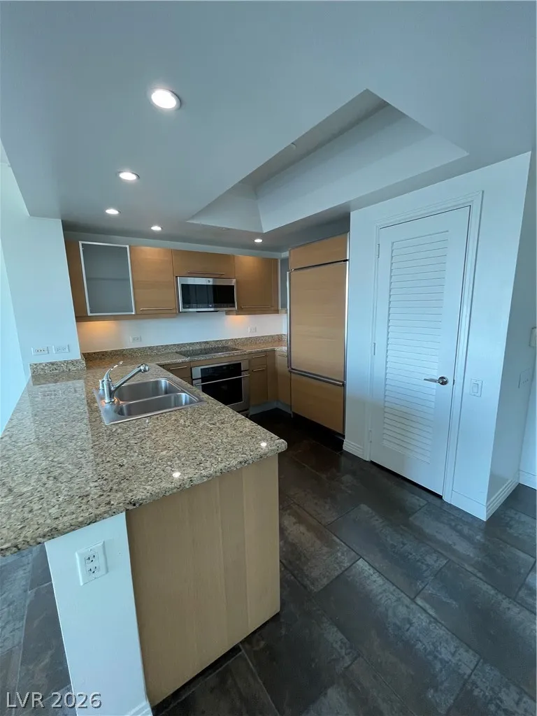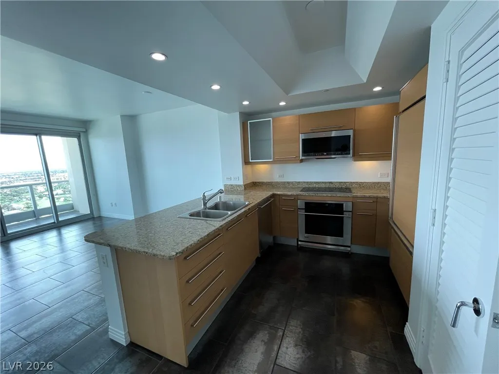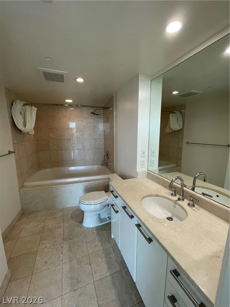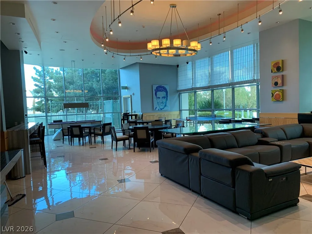 Fabulous One bedroom, 1.5 bath High Rise Condo with spectacular panoramic southeastern views of Las Vegas from the 28th floor. Resort style High Rise Living with World Class Amenities, fitness center, lagoon featured pool & spa, entertainment/recreation/game rooms, tennis courts, putting green, BBQ area. Secure and Guard gated
