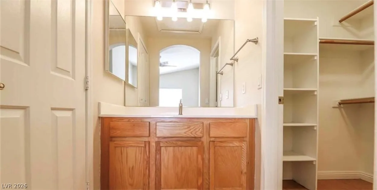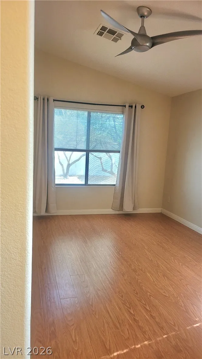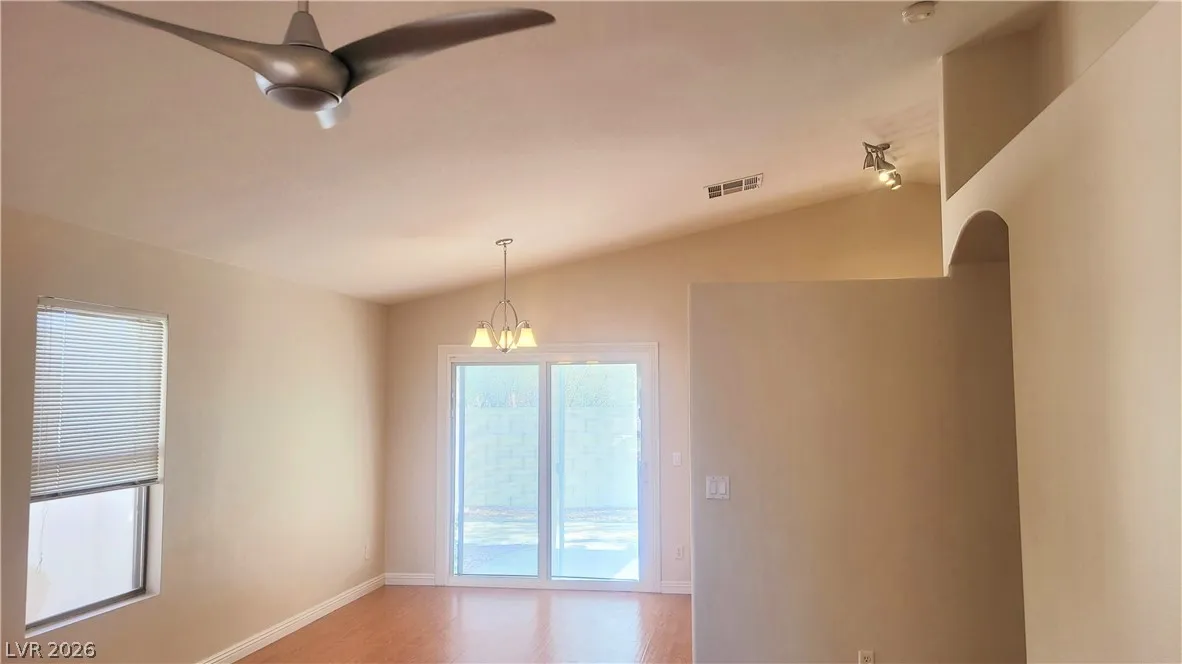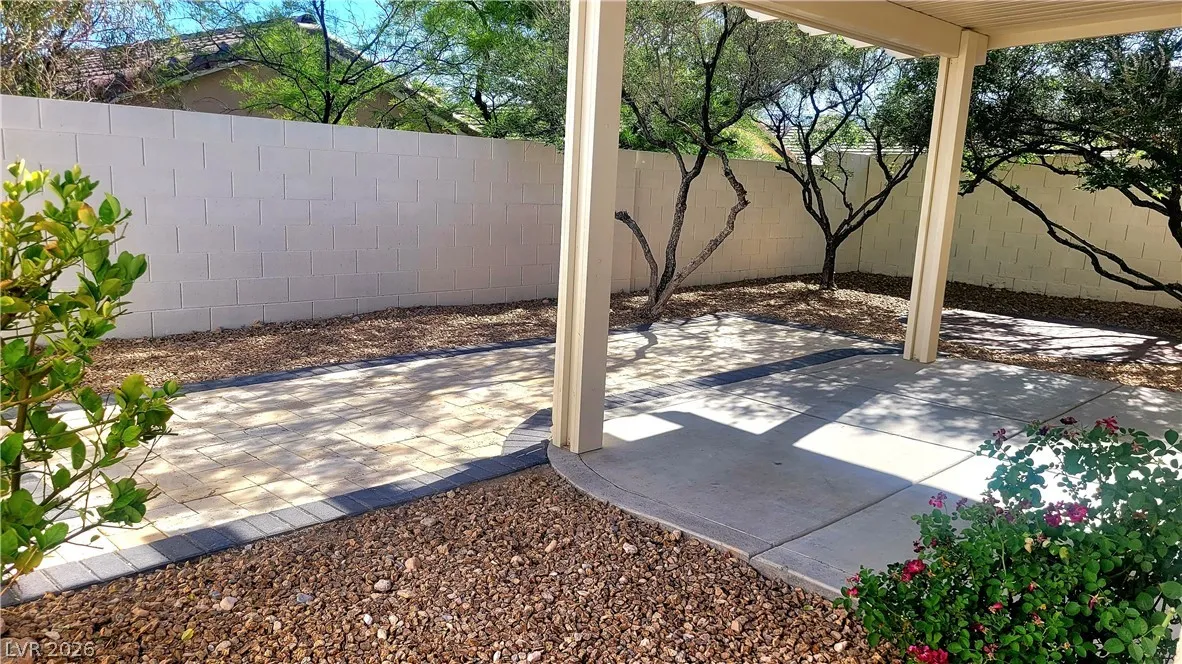 This beauty won’t last! DOWNTOWN SUMMERLIN Single Story 3 bedroom home with open floor plan, high ceilings, and a very private backyard. This home features new wood laminate flooring throughout and porcelain tile in the bathrooms with new quartz countertops. All new solar screens have been added to windows, and a Nest thermostat to make for an energy-efficient home. Covered patio area in the backyard, as well as a second paved sitting area addition. The living room features an open layout and a fireplace. The kitchen includes stainless steel appliances and new quartz countertops. The dining room area features an upgraded sliding glass door that looks out into a private tree-lined backyard. The property is close to Downtown Summerlin, featuring many sought-after shops and restaurants with easy freeway access.