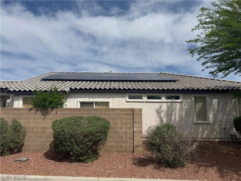 Live in one of Las Vegas’s most sought-after communities! This beautiful single-story home features a bright, open floor plan with soaring 9-foot ceilings and modern finishes throughout. A Modern Kitchen comes with fully upgraded with sleek stainless-steel appliances and contemporary cabinetry. Durable and stylish tile flooring flows through the entire home—perfect for easy cleaning. A large family room designed for entertaining and comfortable living. There is a huge backyard featuring lush trees and pristine green turf. The property is located on a corner Lot, enjoy extra privacy and curb appeal on a spacious corner plot. Solar Powered save significantly on monthly utility bills with included energy-efficient solar panels.