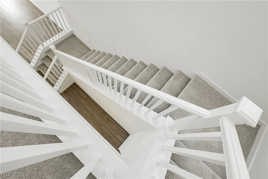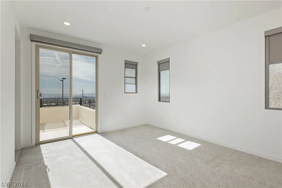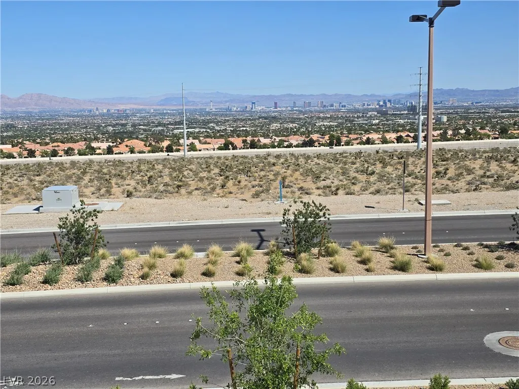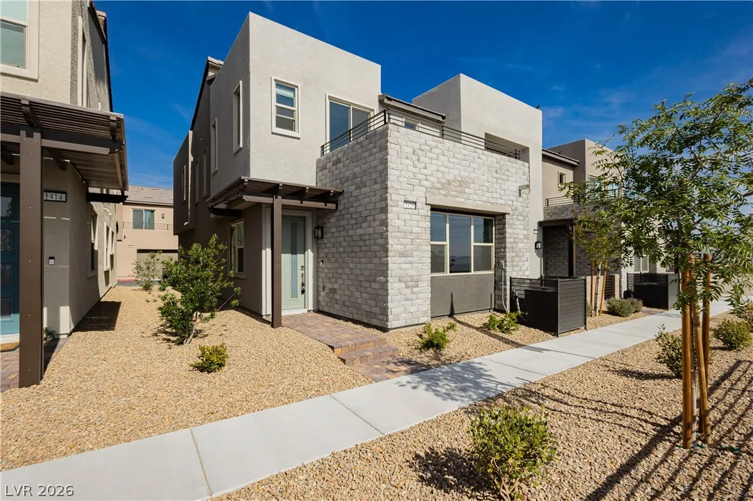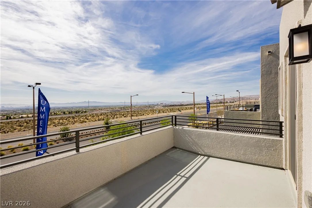 Strip Views from Living Room and Balcony!! Open Concept and Move-in ready inside brand new Lark Hill in Summerlin!! Directly in front of The Hub Park with grassy fields, shaded play areas, courts, and more. This bright two-story blends open-concept living with thoughtful upgrades. The island kitchen offers extended cabinetry and counter space, granite countertops, stainless steel appliances, pantry, and a breakfast bar that opens to spacious living and dining areas ideal for everyday life and entertaining. Upstairs, a loft/flex room anchors the bedroom level. The primary suite features a walk-in closet and a walk-in shower; two secondary bedrooms are nicely sized, and the laundry room is upstairs. Enjoy a large private balcony with views of the Strip and sunrise, and no rear neighbors. Hassle-free landscaping as the HOA maintains everything. Just minutes to DT Summerlin with retail, dining, and quick access to 215.