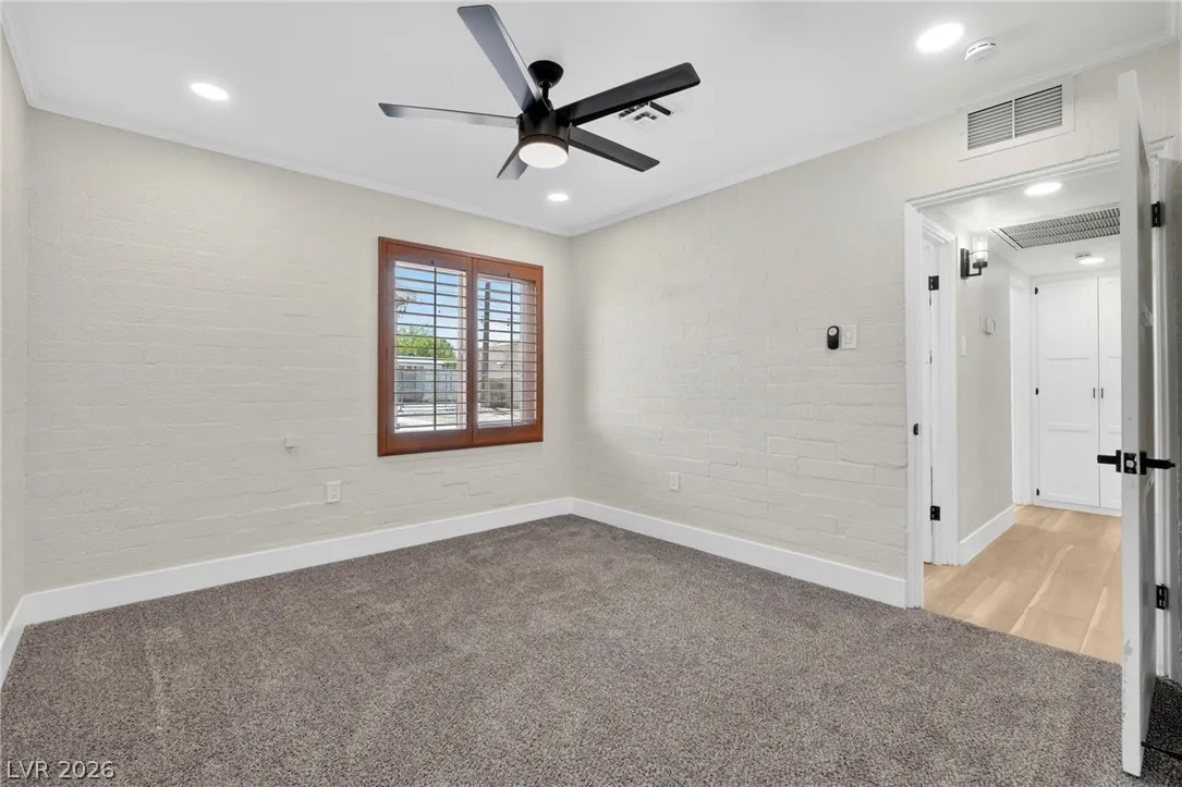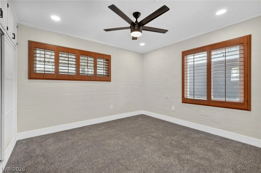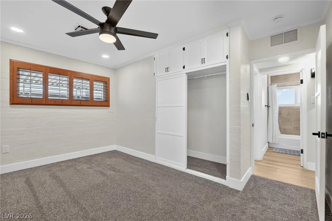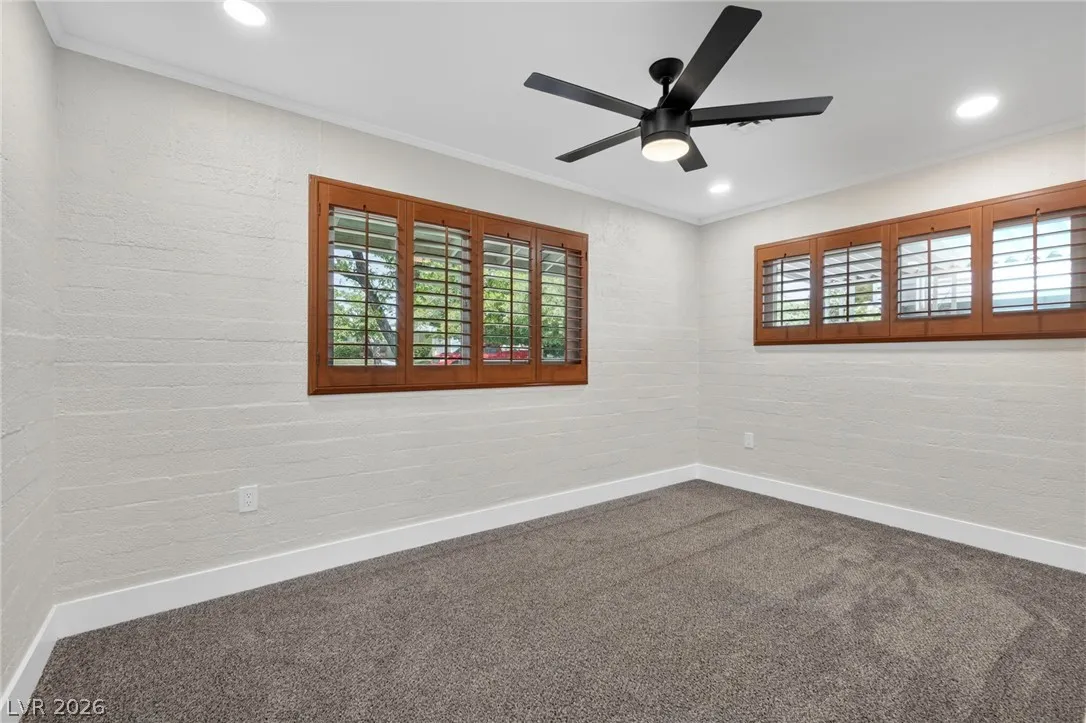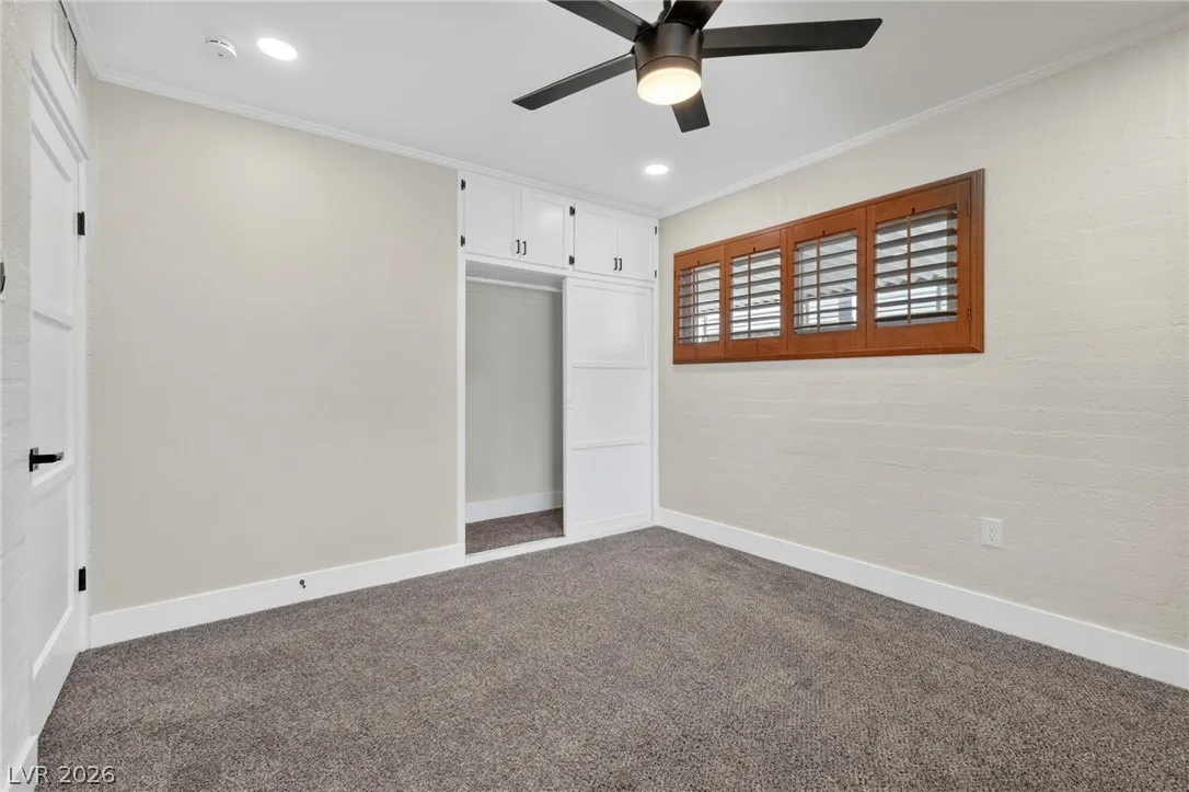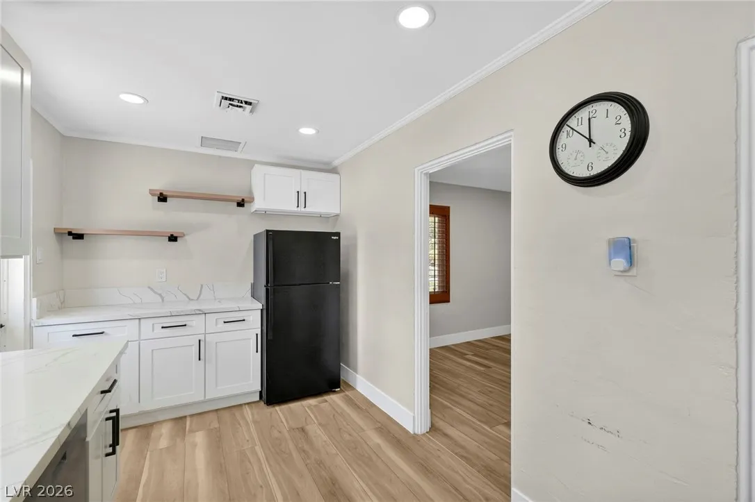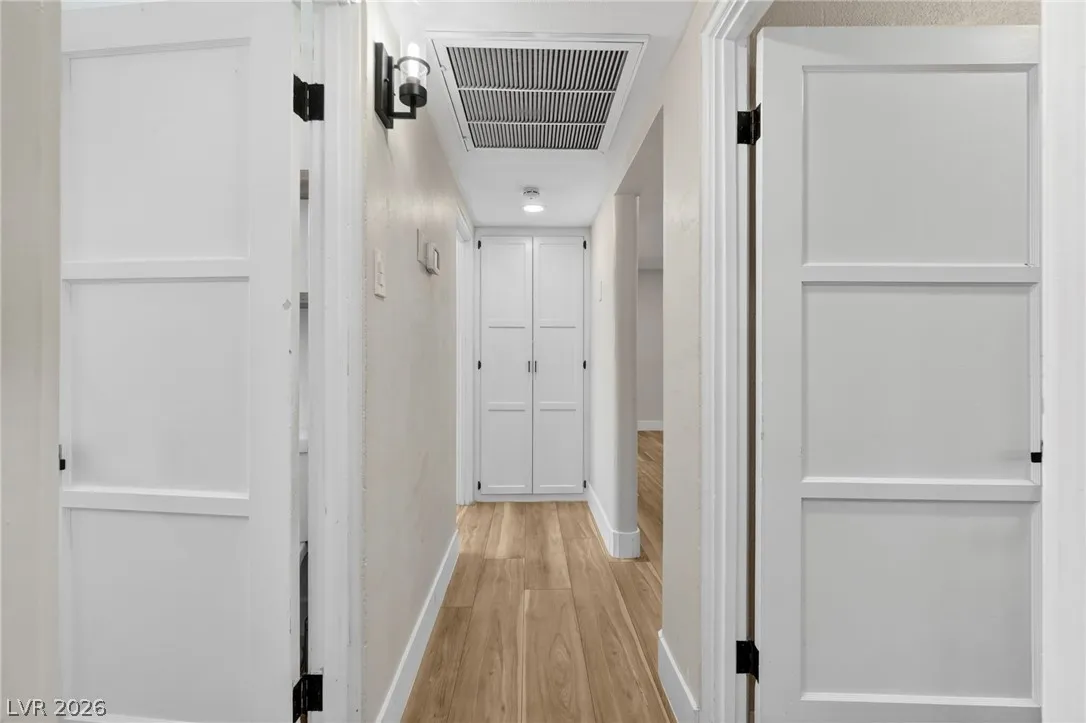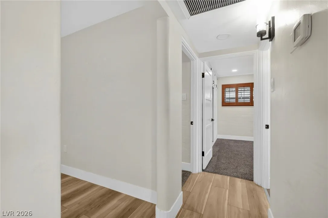 Discover this natural light-filled 2 bed, 1 bath Boulder City home that perfectly blends modern elegance with everyday convenience. The open living room flows into an eat-in dining area, creating an inviting space for entertaining. The kitchen showcases shaker-style cabinets, quartz countertops, and stainless-steel appliances. Both generously sized bedrooms enjoy tons of natural light, while luxury vinyl plank flooring and upgraded baseboards add a low-maintenance finish throughout. Set on an oversized homesite with RV potential and extra parking, the property also includes a spacious 2-car garage/shed for ample storage. Updated water lines to include Hot/Cold, all drain lines, main sewer line to the street, and brand new water softner.