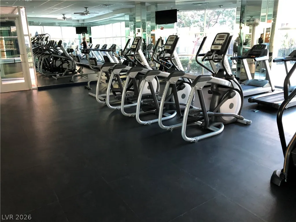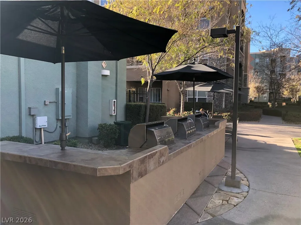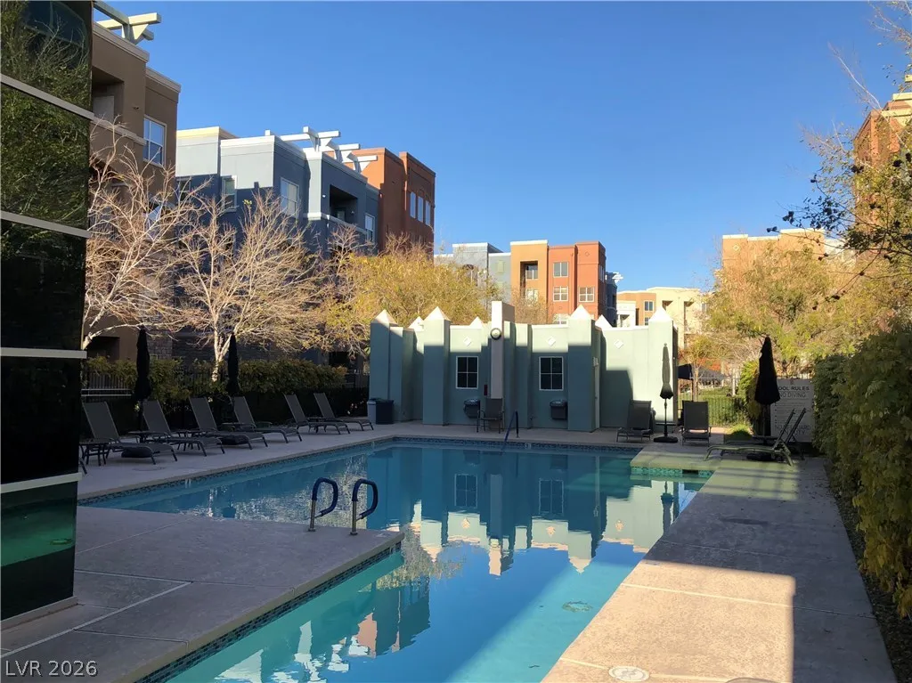 Great 2-bedroom condo in a fabulous Manhattan community with stunning southern mountain views. This prime location offers easy access to the highway and the Strip. The condo features granite countertops, recessed lighting, and beautiful entertainment wall cutouts in the family room. Enjoy 24-hour guard-gated security for peace of mind. The second bedroom is sizable, while the spacious master bedroom includes a double closet and a walk-in closet. The master bath features a double sink for convenience. Also included are a washer, dryer, and major kitchen appliances. You’ll have assigned underground parking and full access to community amenities, which include a gym, multiple sports fields, a pool, a spa, and BBQ areas. Elevator access is available directly from the underground parking. The building has a controlled entry system for added security. This condo is truly a great find at an amazing price!