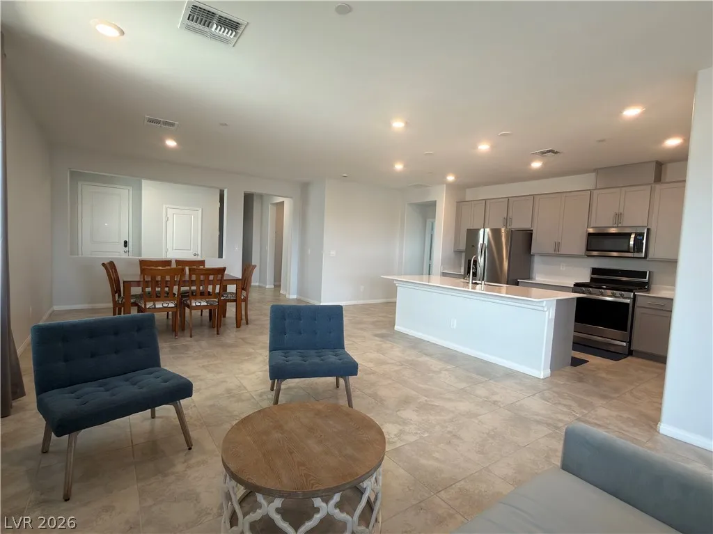Welcome to this stunning, modern one-story sanctuary nestled in the highly sought-after Inspirada master-planned community. This impeccably designed 4-bedroom, 3-bathroom home offers the perfect blend of luxury and functionality. The open-concept living space features high-end luxury vinyl flooring in all wet areas and a chef-inspired kitchen fully equipped with all stainless steel appliances