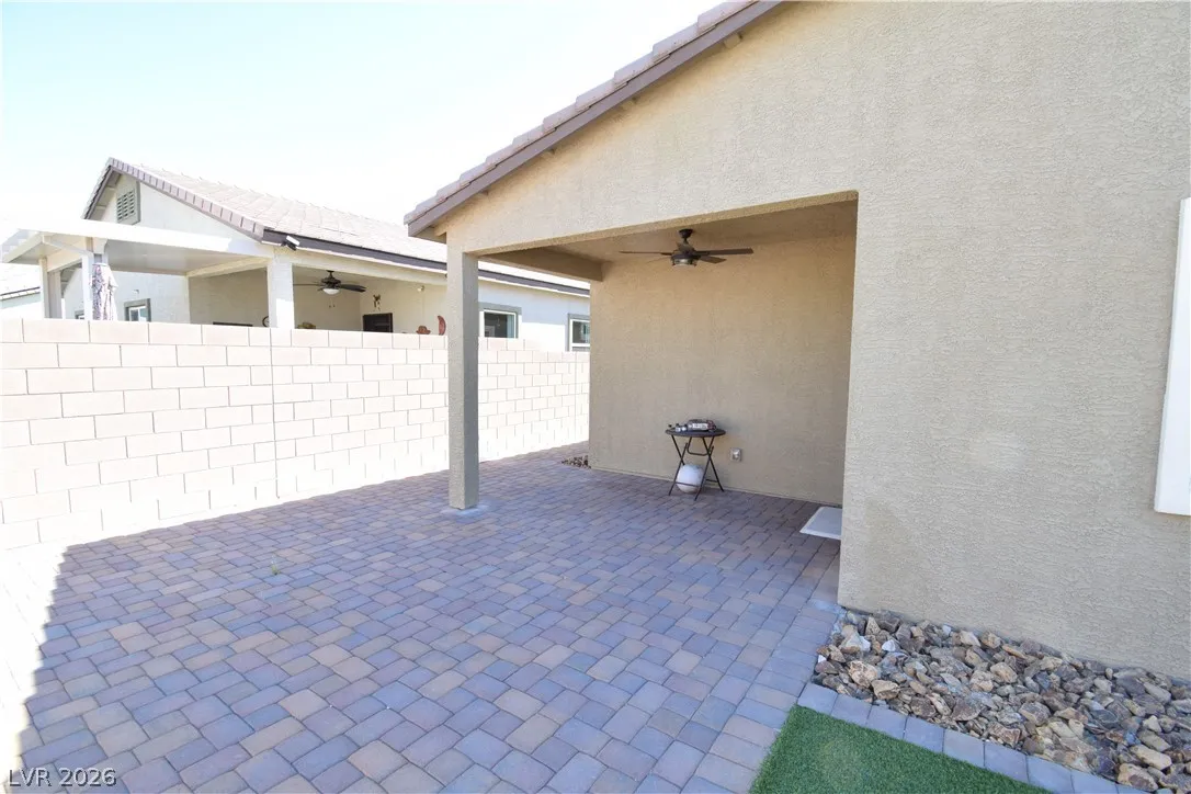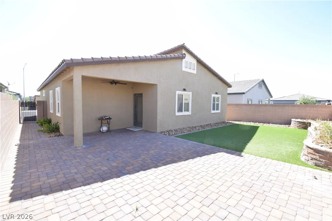 Beautiful single story home located in gated community. Tile flooring in all kitchen and living room and all bathroom. Carpet in bedroom. Open floorplan. Kitchen with granite countertop and generous island. Covered patio in the backyard and low maintenance turf. This house has solar system that will save you on power bill.
