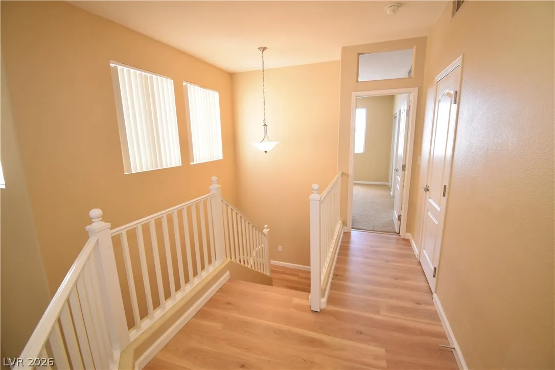 Beautifully upgraded townhome in the heart of Summerlin. 2 bedroom and 2 1/2 bath, 2 car garage. New wood flooring in all downstairs and the stairs , upgraded carpet in the bedroom. Vaulted ceiling. Private back patio. Community is gated, has guest parking.