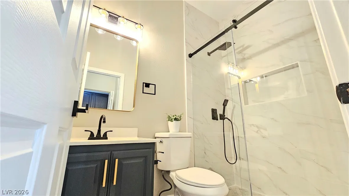 Like a BRAND NEW 4 bedroom, 1 story home in highly desirable Green Valley Ranch. 10-foot ceilings throughout with a wide open floorplan. Enter the home into a formal living room that can double as a playroom/entertainment room. Home is fully remodeled with warm luxury vinyl plank flooring & new paint throughout. Primary bedroom has a retreat for lounging/office/den. Primary bath has a brand new stand alone, relaxing bath tub. Second bathroom is a fully remodeled full bath with all new fixtures. Third bath has a fully remodeled stand up shower. WOW kitchen with floor-to-ceiling cabinets with lighting under the counters & in the display upper cabinets. Wraparound Quartz countertops with breakfast seating overlooking the family & dining room. Family room has an electric fireplace with TV mount for up to 85″ TV. Huge backyard for entertaining/relaxing. Near Henderson Multigenerational Center/Pool, The Dollar Loan Center (Silver Knights), GVR Casino, The District, 215, parks, top schools!