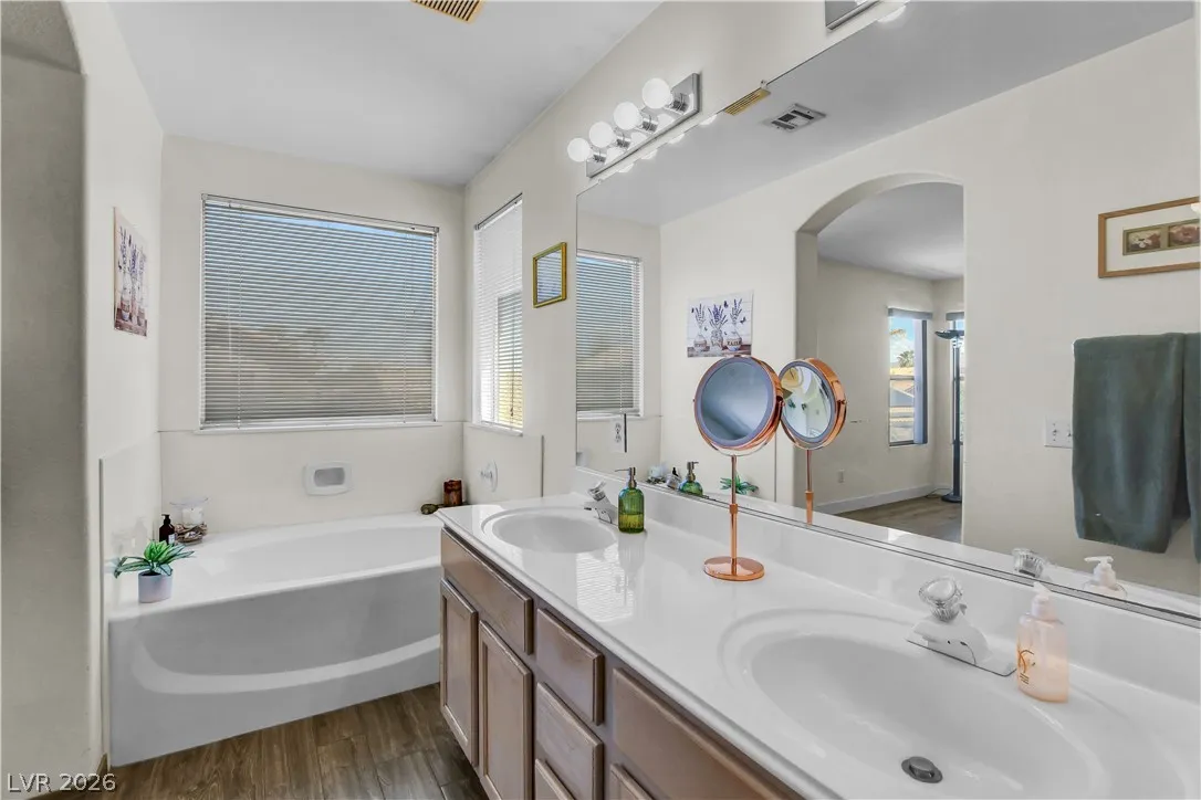 Beautifully maintained home located in the desirable northwest Las Vegas area! This property features a spacious and functional floor plan with upgraded flooring throughout, including luxury wood laminate that adds both style and durability. The home offers generous living spaces, a well-appointed kitchen, and comfortable bedrooms perfect for everyday living or entertaining.