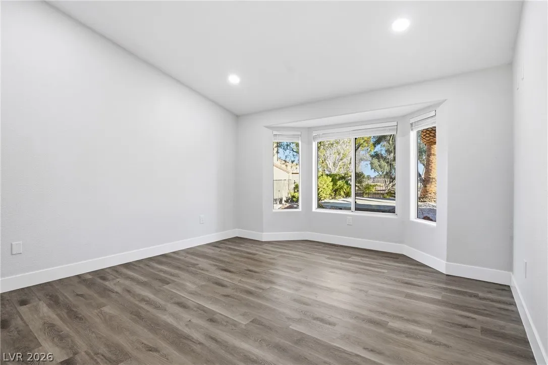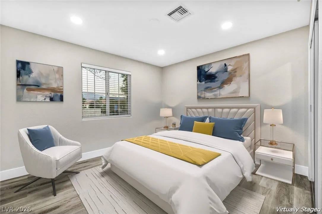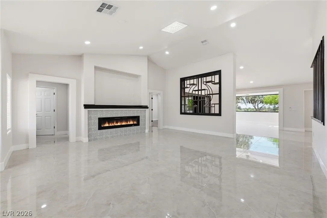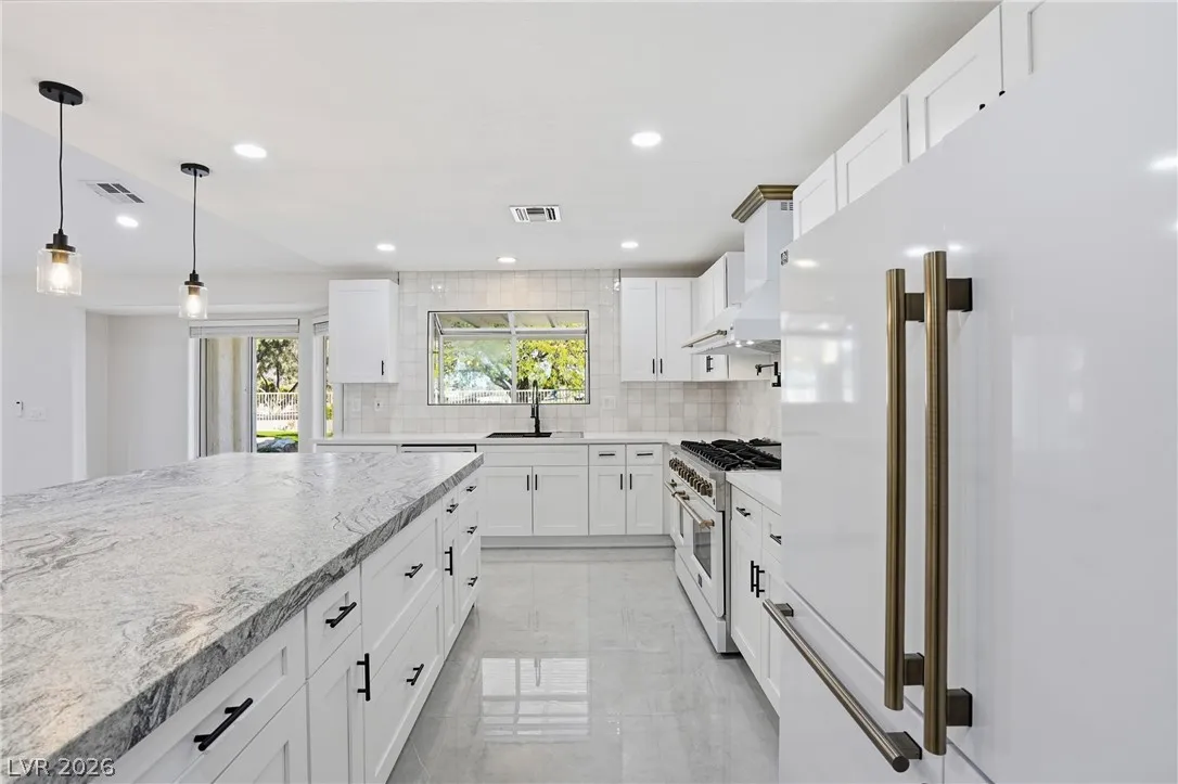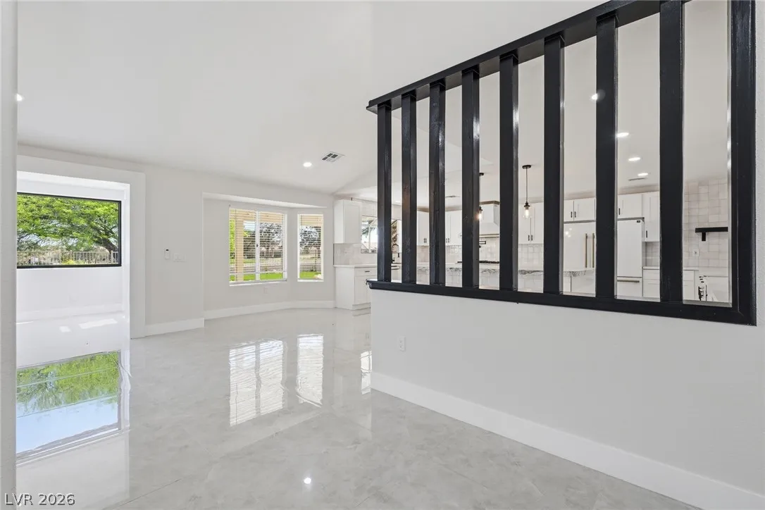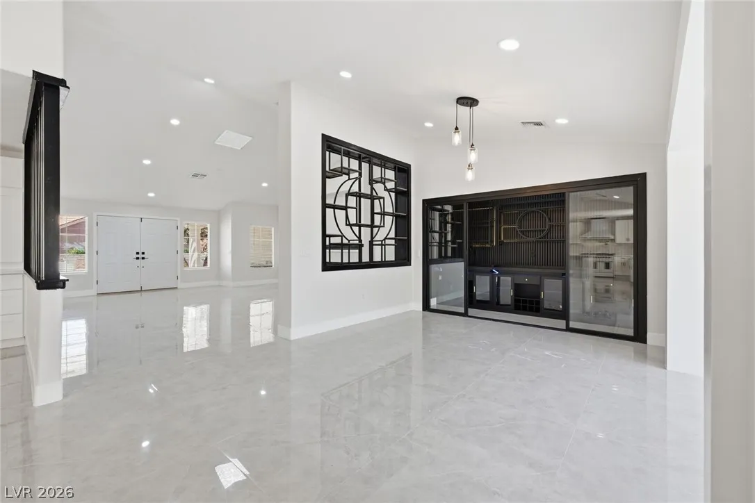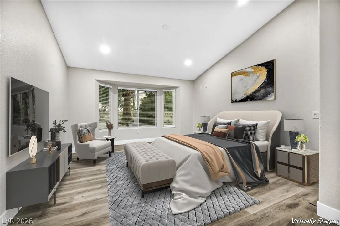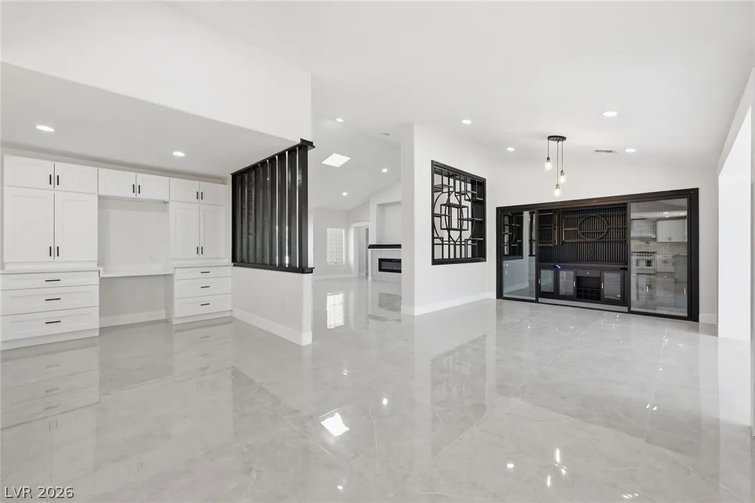 Welcome to this beautifully renovated home in Sun City Summerlin with golf views. This single story, 2 bed 2 bath residence offers outstanding curb appeal with oversized 2 car garage as well as elegant double door entry. The thoughtfully upgraded kitchen features tile flooring, white shaker cabinets, granite & quartz countertops, sleek black hardware, & upgraded appliances. A bright dining area showcases a wall spanning window that fills the space with natural light & provides serene backyard views. The spacious living room is warm & inviting, highlighted by a cozy fireplace, perfect for relaxing or entertaining. Both bathrooms have been tastefully upgraded, with the primary suite offering a spa like en suite complete with dual sinks & a large walk in shower. Step outside to a generous backyard designed for enjoyment, featuring a pergola ideal for outdoor dining or lounging. This move in ready home combines modern upgrades with the lifestyle & amenities Sun City Summerlin is known for.