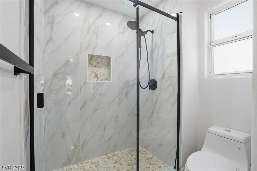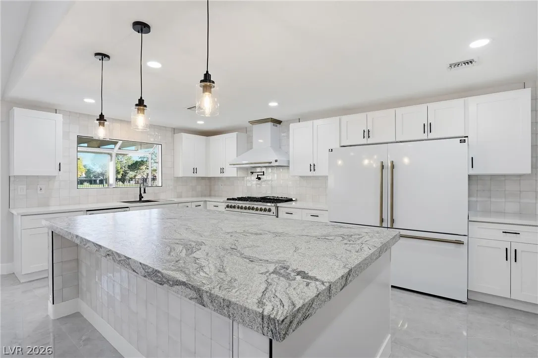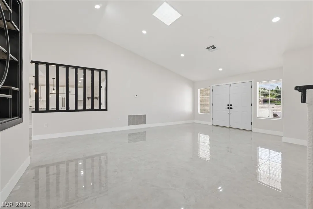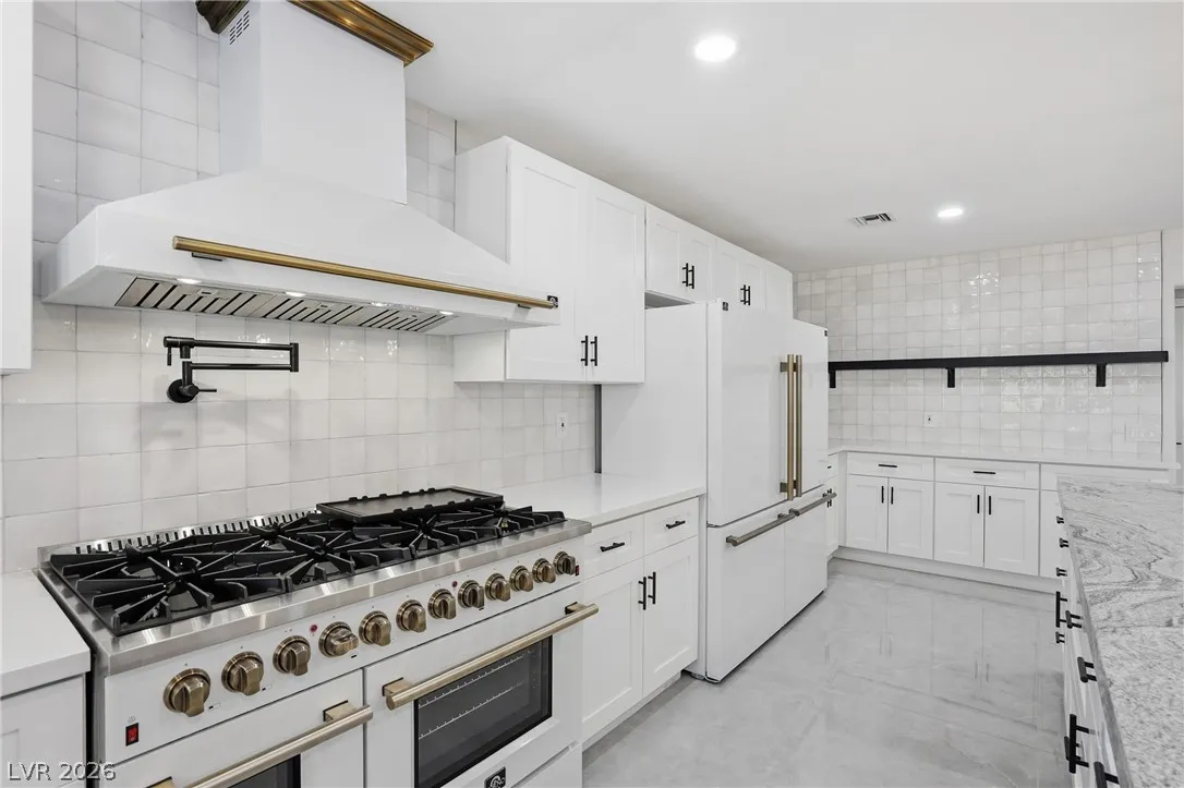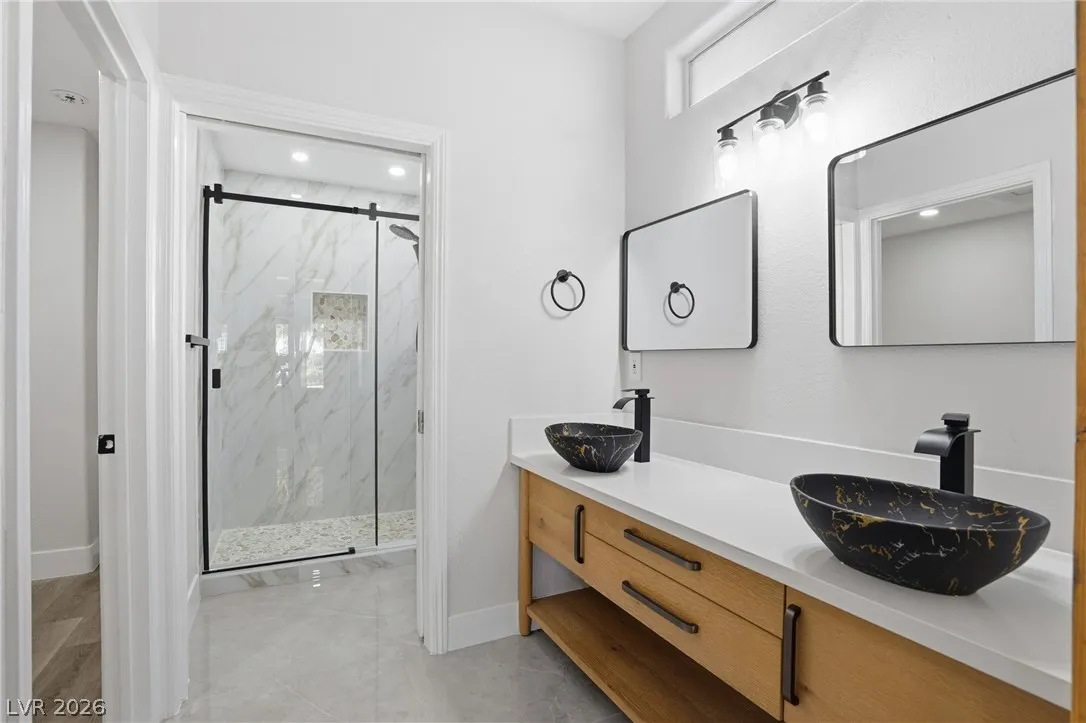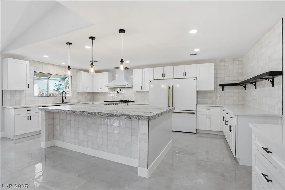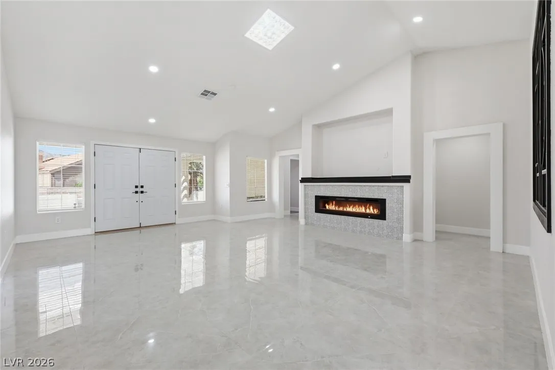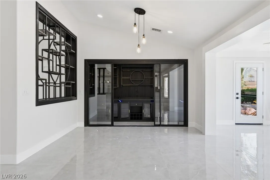 Welcome to this beautifully renovated home in Sun City Summerlin with golf views. This single story, 2 bed 2 bath residence offers outstanding curb appeal with oversized 2 car garage as well as elegant double door entry. The thoughtfully upgraded kitchen features tile flooring, white shaker cabinets, granite & quartz countertops, sleek black hardware, & upgraded appliances. A bright dining area showcases a wall spanning window that fills the space with natural light & provides serene backyard views. The spacious living room is warm & inviting, highlighted by a cozy fireplace, perfect for relaxing or entertaining. Both bathrooms have been tastefully upgraded, with the primary suite offering a spa like en suite complete with dual sinks & a large walk in shower. Step outside to a generous backyard designed for enjoyment, featuring a pergola ideal for outdoor dining or lounging. This move in ready home combines modern upgrades with the lifestyle & amenities Sun City Summerlin is known for.