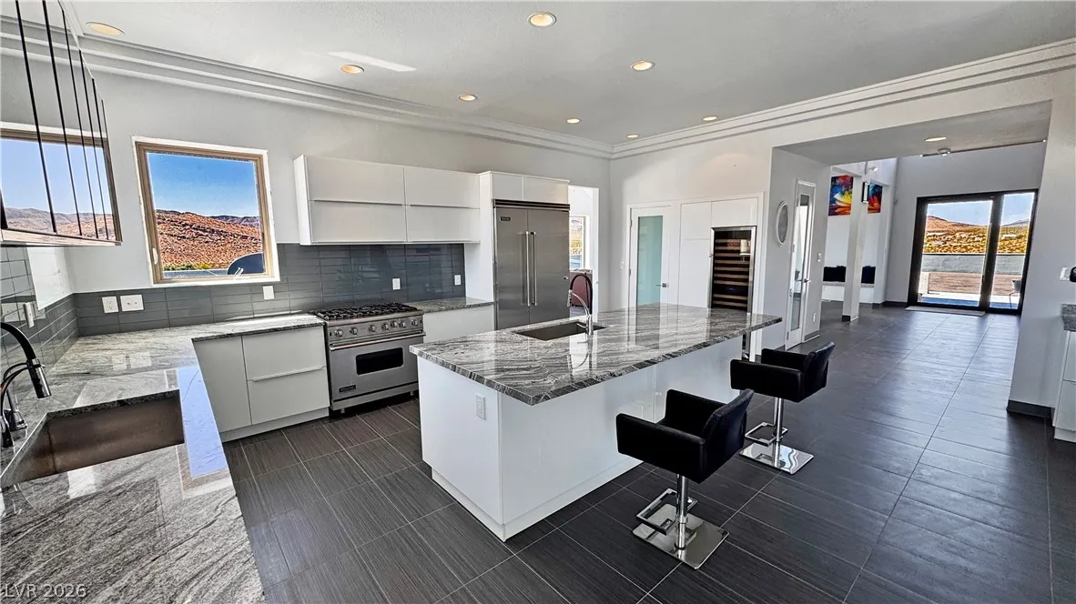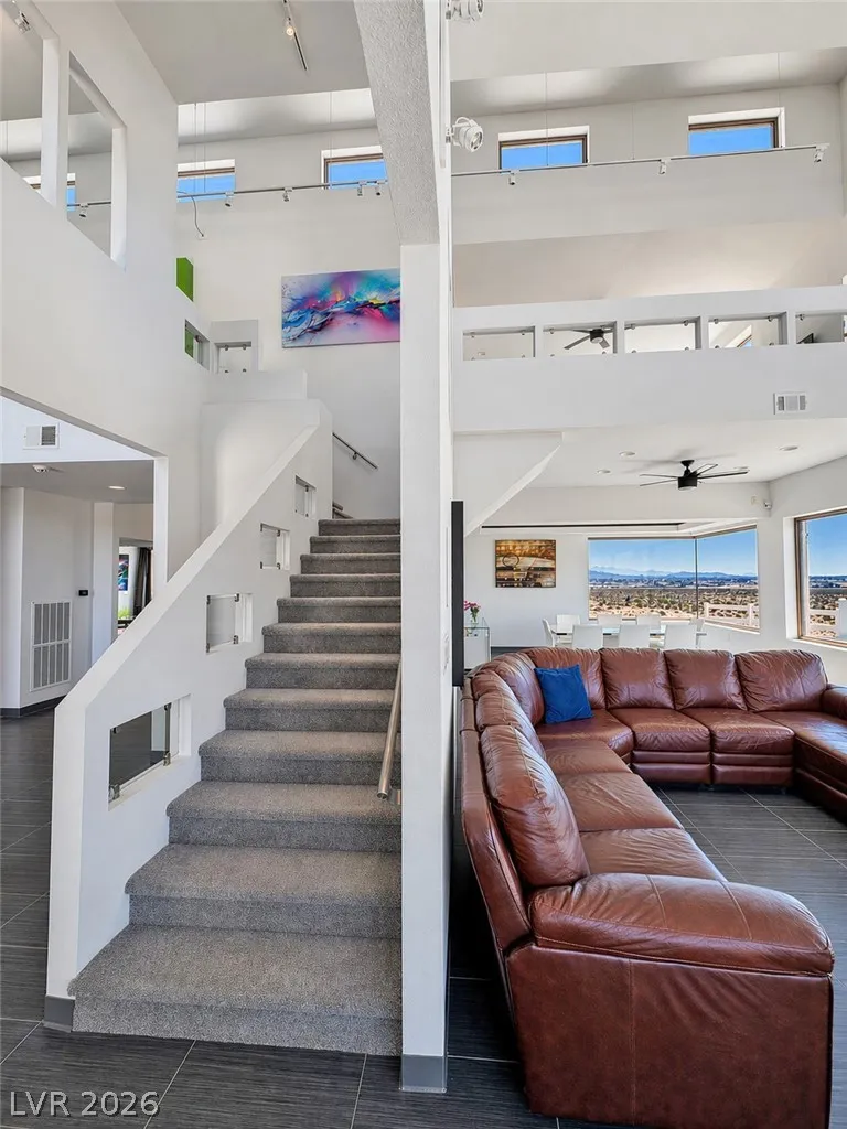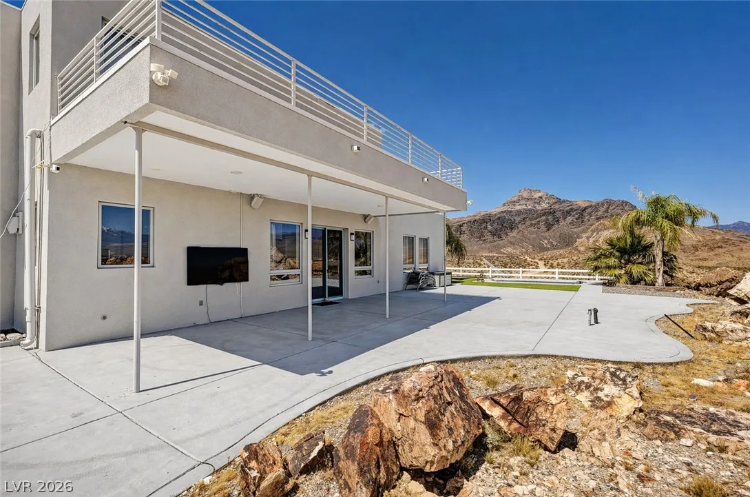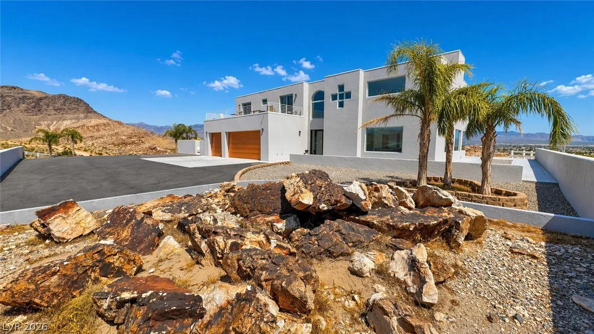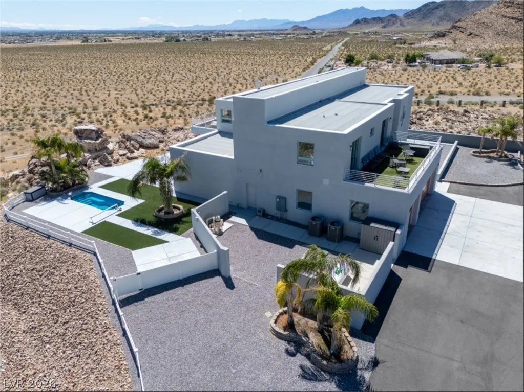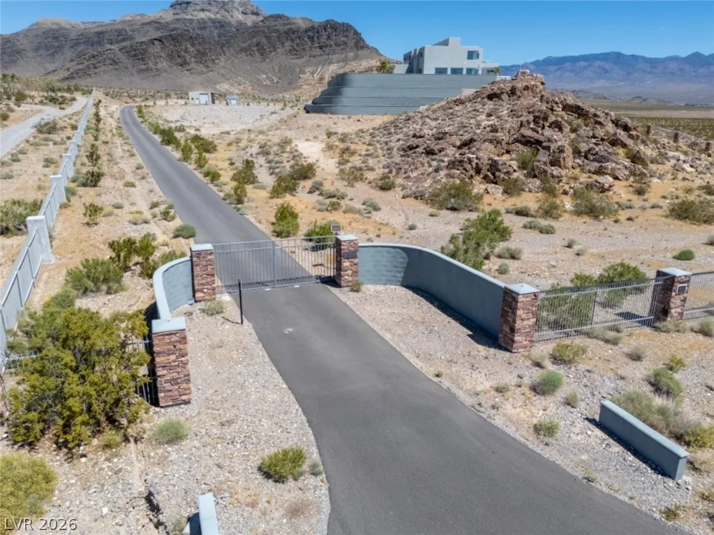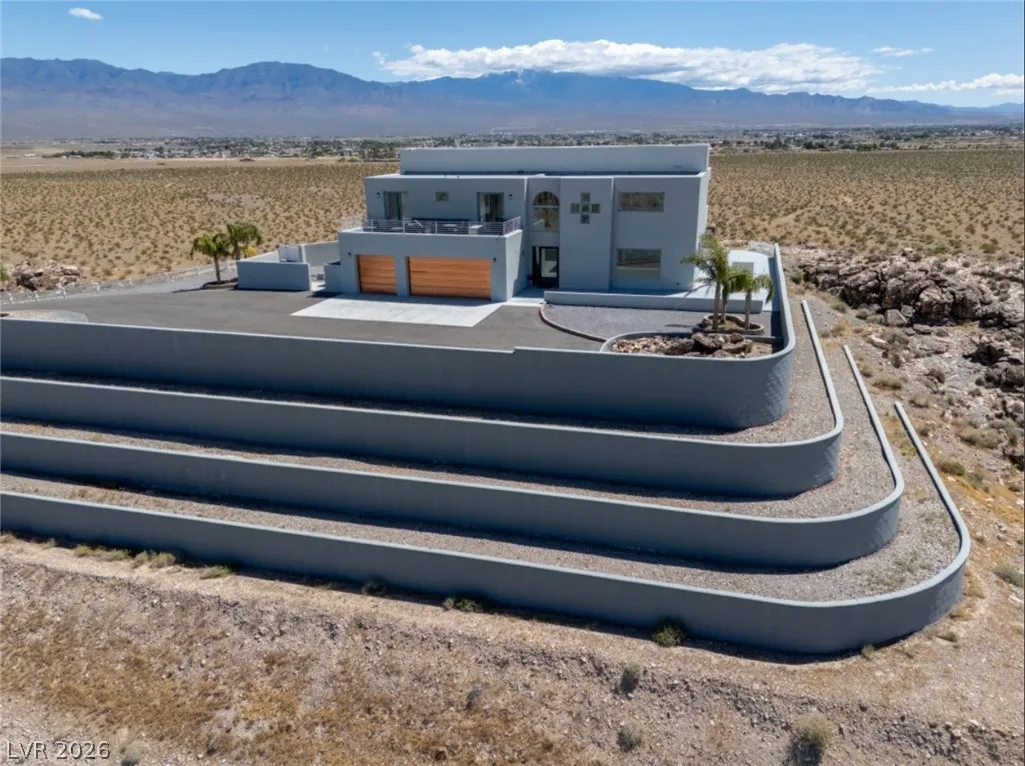 VIEWS!! VIEWS! ON THE ROCKS!! 8.3 ACRES, THIS ESTATE IS BUILT ON TOP OF A NATURAL QUARTZ QUARRY WITH A 360 DEGREE BREATH TAKING VIEW OF THE SOME OF NEVADA’S MOST MAGESTIC MOUNTAIN RANGES.THIS ESTATE’S FLOOR PLAN HAS A MODERN DESIGN FOCUSED ON ENTAINING & INDOOR /OUTDOOR LIFESTYLE WITH APPROIMATELY 2800 SQ FT OF PATIO. PLUMBED FOR OUTDOOR KITCHEN.SPACIOUS KITCHEN W/LARGE BREAKFAST BAR, VIKING APPLIANCES, CUSTOM CABINETS, GRANITE COUNTER TOPS WALKIN PANTRY AND WINE REFRIGERATOR, THIS ESTATE ALSO FEATURES BASEMENT FAMILY ROOM, GAMEROOM. FIREPLACE, MEDIA ROOM, LARGE WET BAR WITH REFRIGERATON &WINE, RV HOOK UPS,ALSO GALLERY AREA WHERE YOU CAN DISPLAY YOUR ART PLUS, AN ENDLESS SWIM SPA,PRIMARY BEDROOM FEATURES WALKIN CLOSET FRIDGE BALCONY WHERE YOU WILL EXPERIENCE SOME BREATH TAKING VIEWS,THE GROUNDS OFFER INFINITE RECREATIONAL OPPORTUNIES & ENJOY DIRECT ACCESS TO BLM TRAILS PLUS A NEWLY BUILT 1500 SQ FT PLUS INSULATED WORKSHOP WITH ATTACHED CARPORT, MUST EXPERIENCE IN PERSON