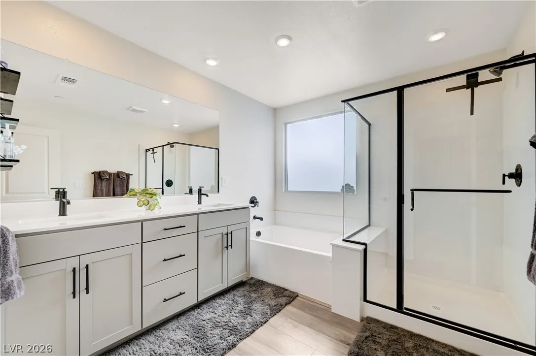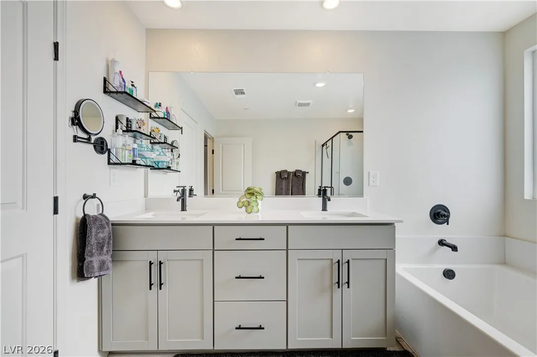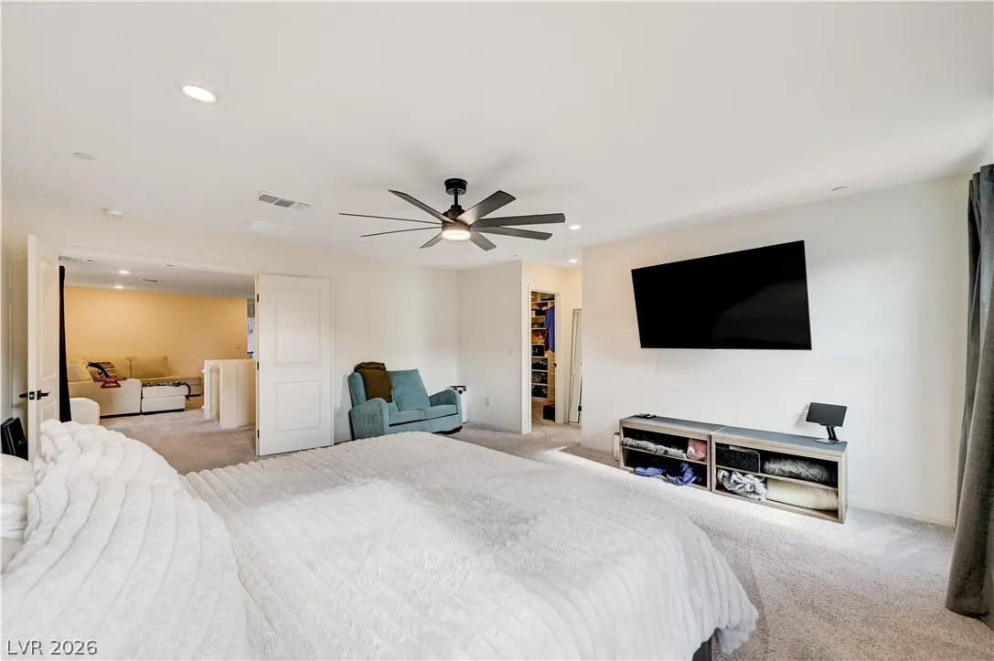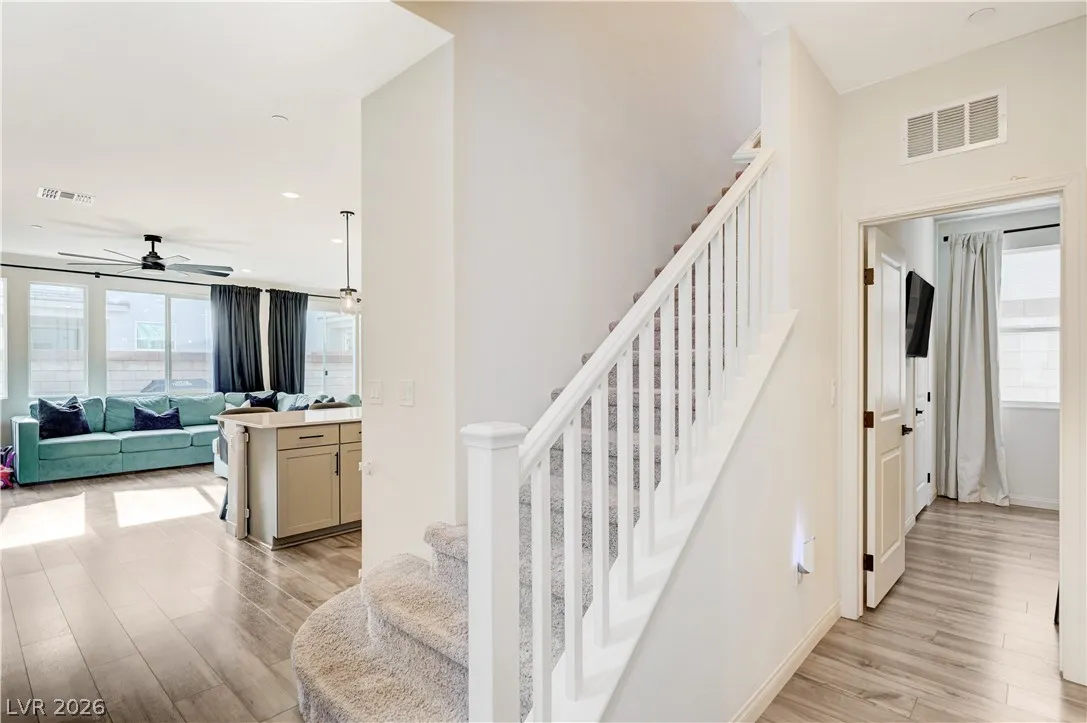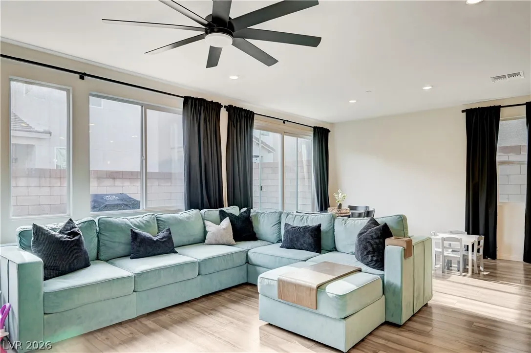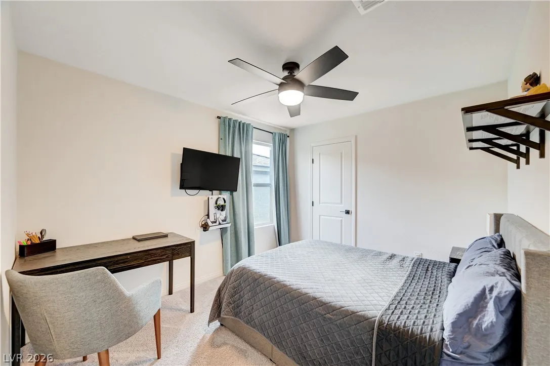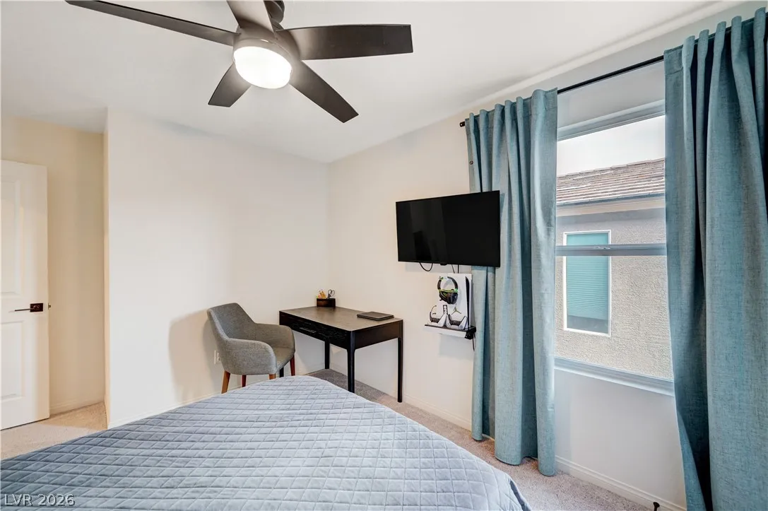 Spacious and beautifully maintained 5-bedroom home located in a desirable gated community just minutes from Skye Canyon. This thoughtfully designed floorplan features a highly sought-after bedroom and full bathroom downstairs, perfect for guests or multi-generational living. The open-concept layout offers plenty of natural light and comfortable living spaces for everyday living and entertaining.
