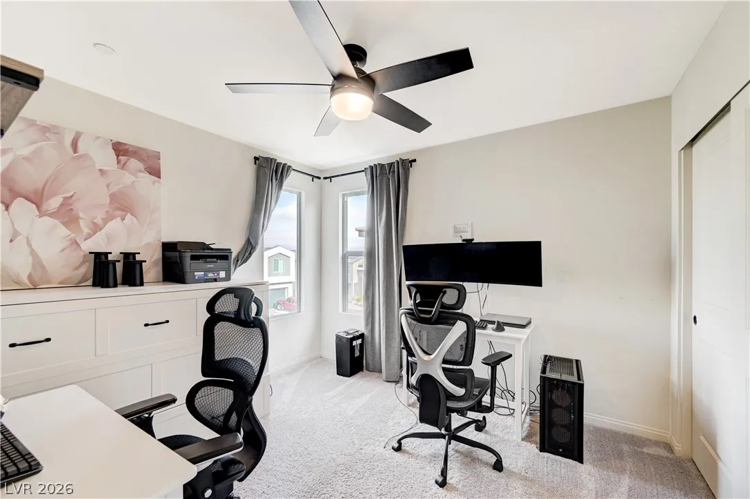 Upstairs you’ll find a large loft, ideal for a second living area, media room, or home office. Bedrooms feature custom closet systems providing excellent storage and organization. Step outside to a newly landscaped backyard, ready for relaxing or entertaining. The community also offers a park and walking paths, creating a welcoming neighborhood atmosphere.