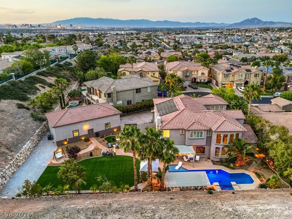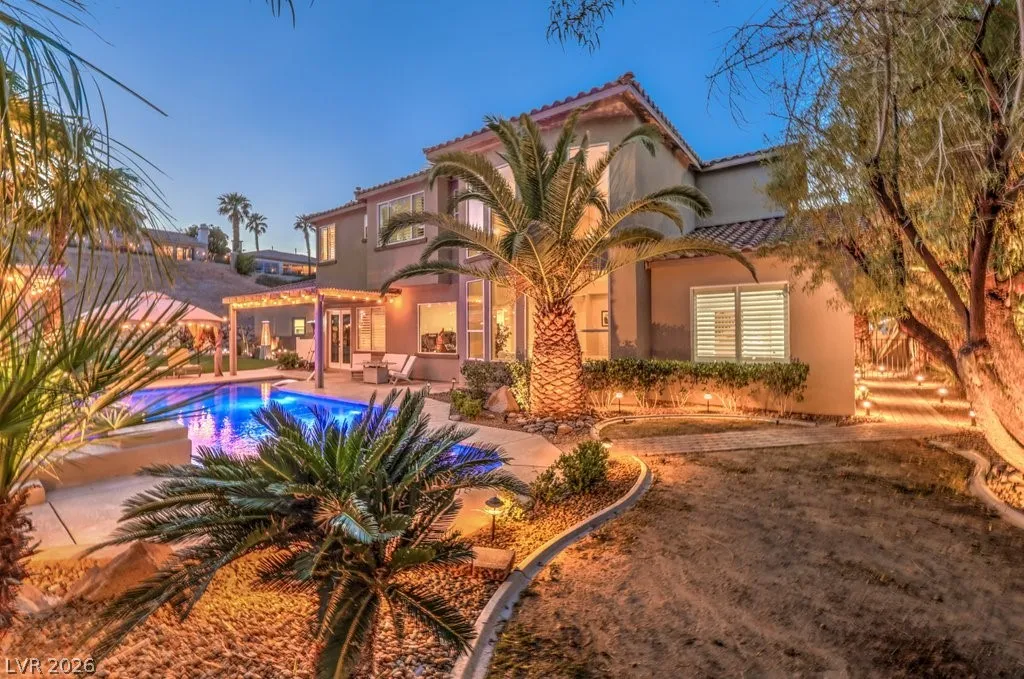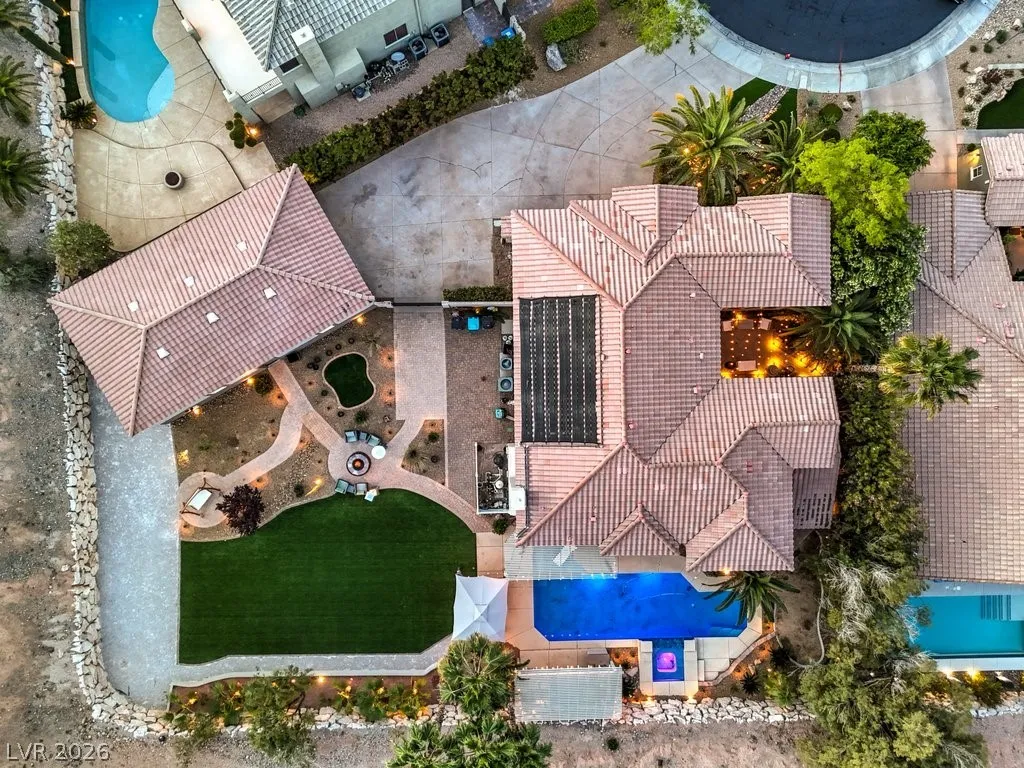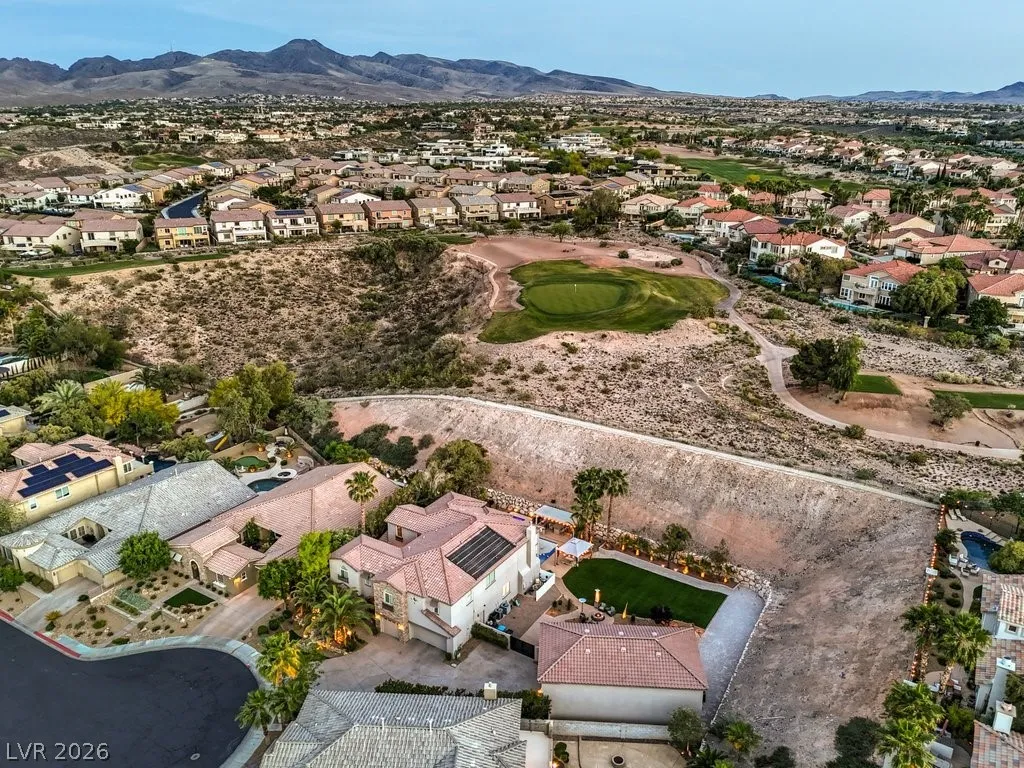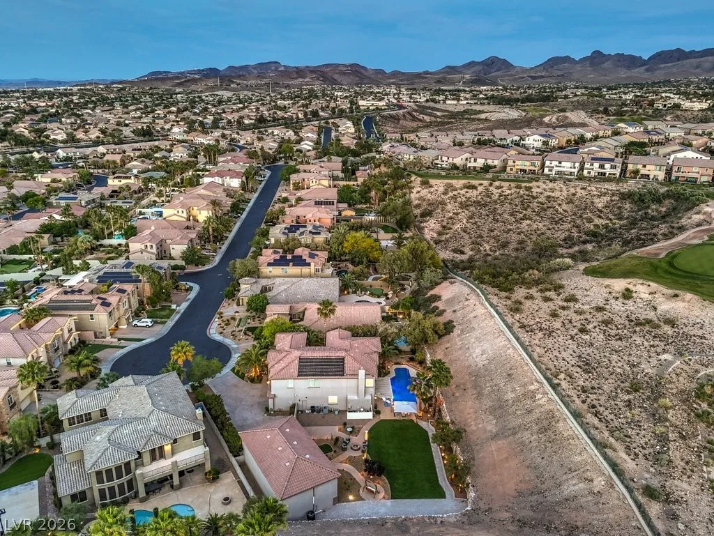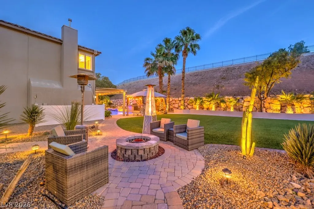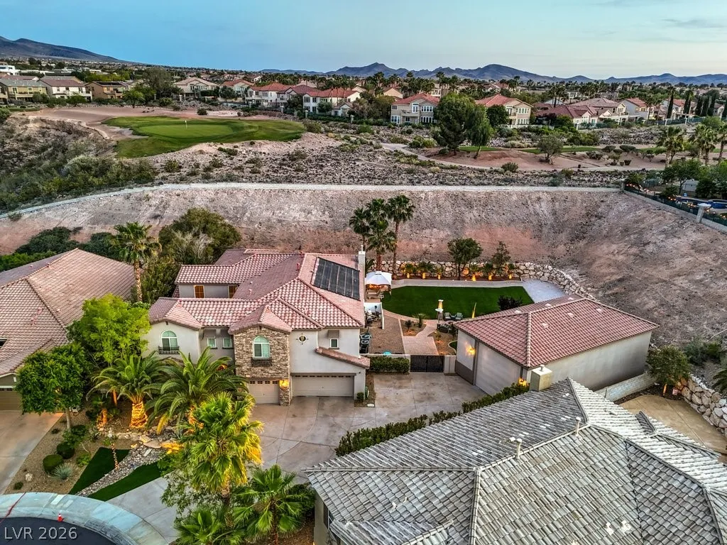Turnkey luxury estate with over $126K in recent upgrades, ideally located in a gated cul-de-sac on over half an acre backing to Rio Secco Golf Course. This Stunning 6-bedroom, 5-bath home offers a resort-style backyard featuring a Resurfaced pool & spa with new tile, built-in BBQ, firepit, outdoor speaker system controlled by your phone, and multiple seating areas.