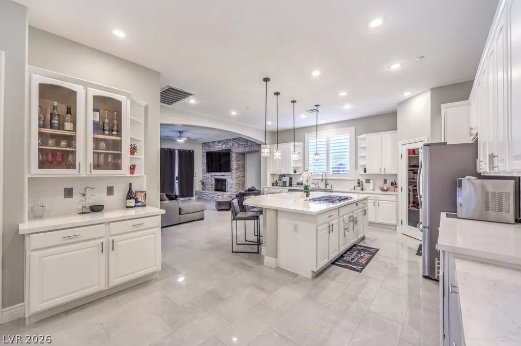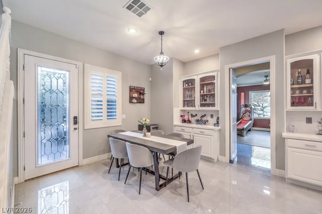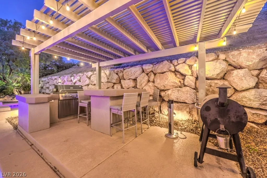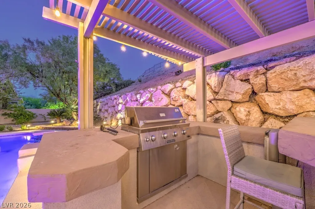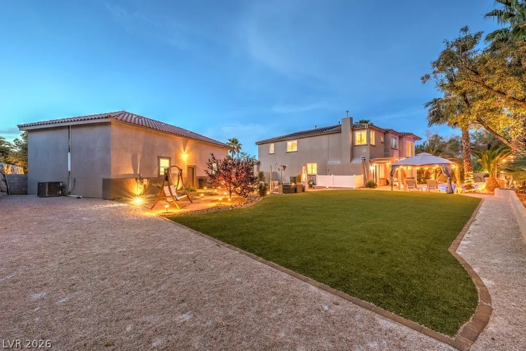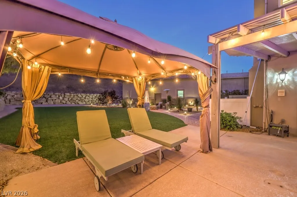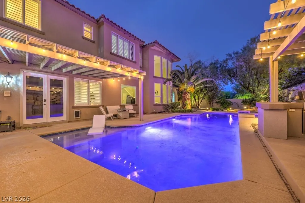 Turnkey luxury estate with over $126K in recent upgrades, ideally located in a gated cul-de-sac on over half an acre backing to Rio Secco Golf Course. This Stunning 6-bedroom, 5-bath home offers a resort-style backyard featuring a Resurfaced pool & spa with new tile, built-in BBQ, firepit, outdoor speaker system controlled by your phone, and multiple seating areas.