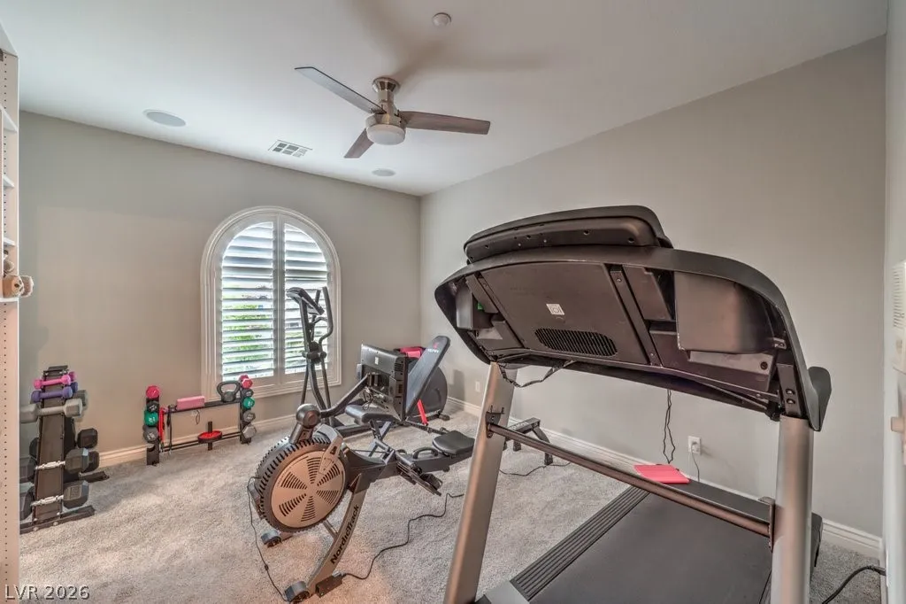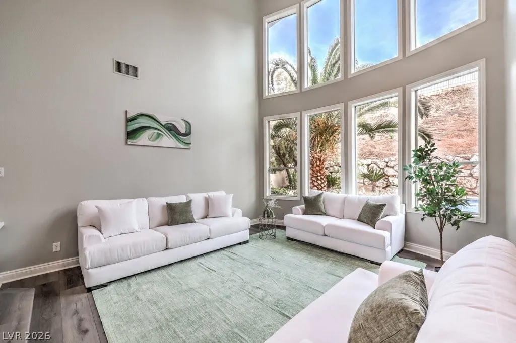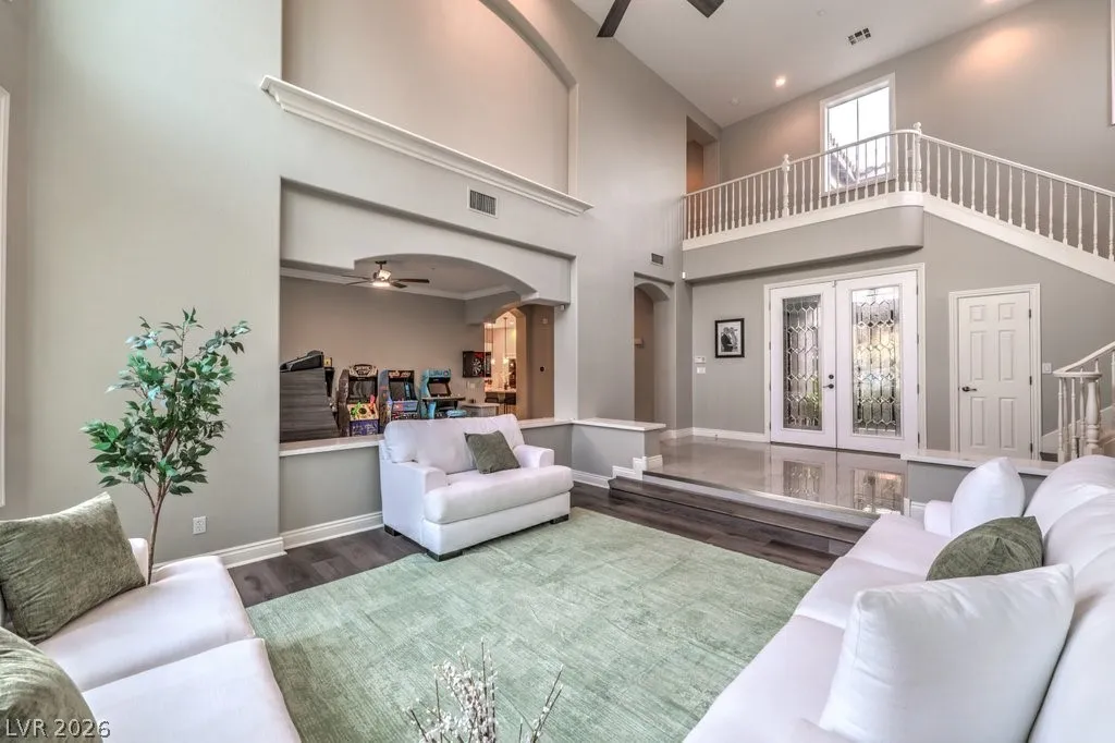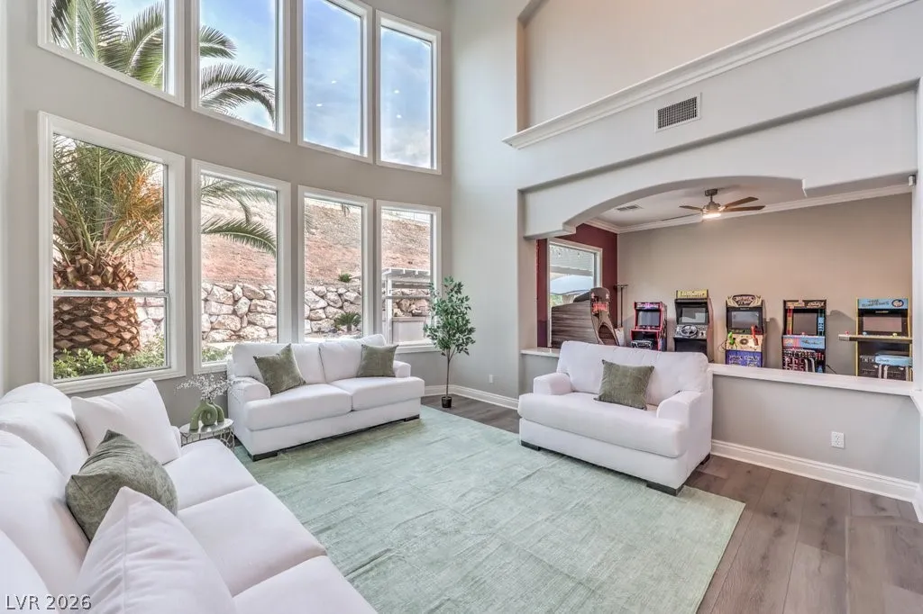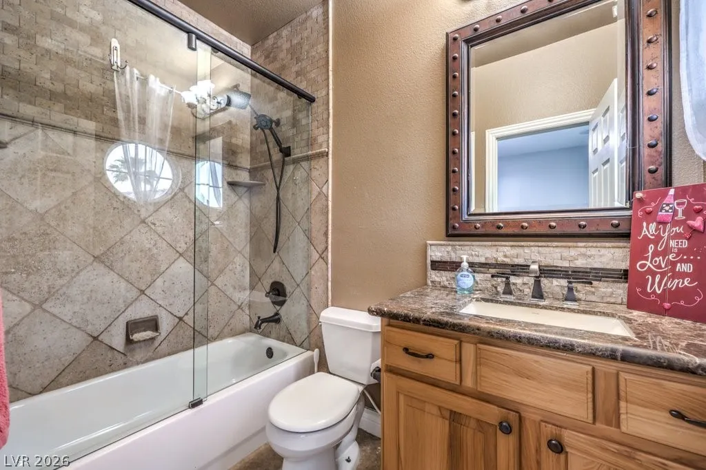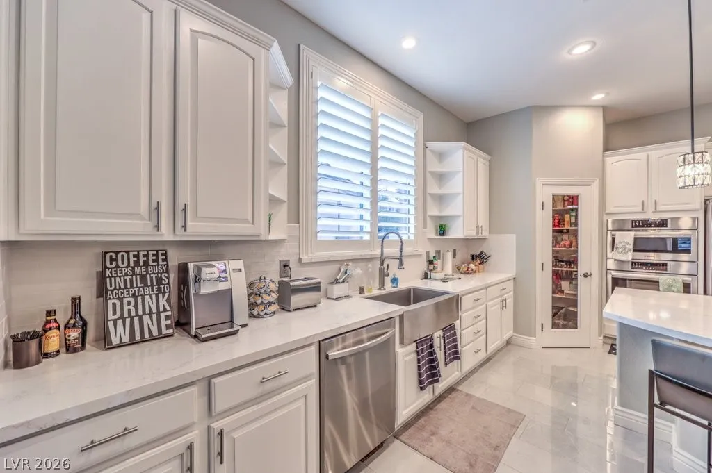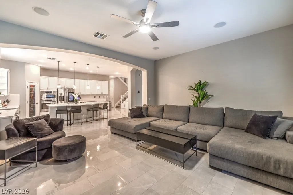 Turnkey luxury estate with over $126K in recent upgrades, ideally located in a gated cul-de-sac on over half an acre backing to Rio Secco Golf Course. This Stunning 6-bedroom, 5-bath home offers a resort-style backyard featuring a Resurfaced pool & spa with new tile, built-in BBQ, firepit, outdoor speaker system controlled by your phone, and multiple seating areas.