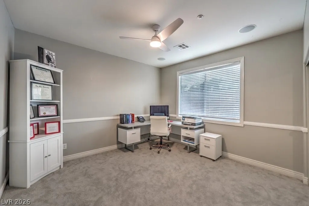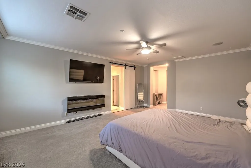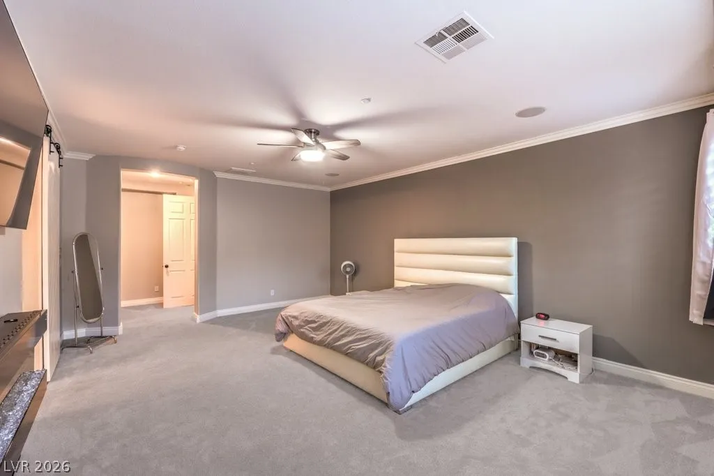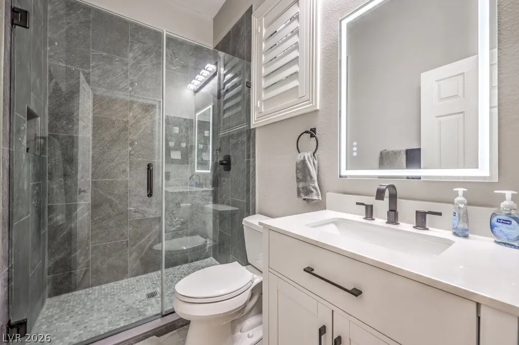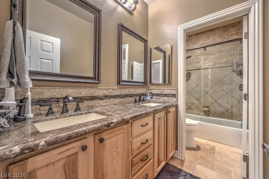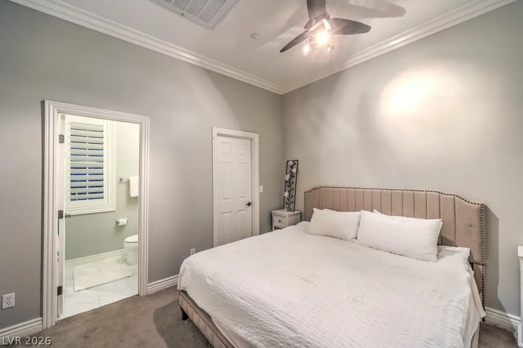 The spacious primary suite offers a jetted tub, steam shower, and custom walk-in closet. An attached casita with private ensuite provides flexible living options for guests or multigenerational use.