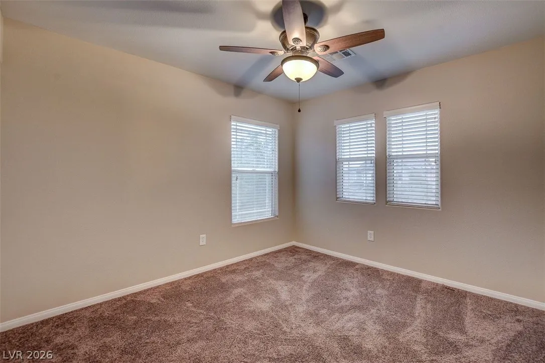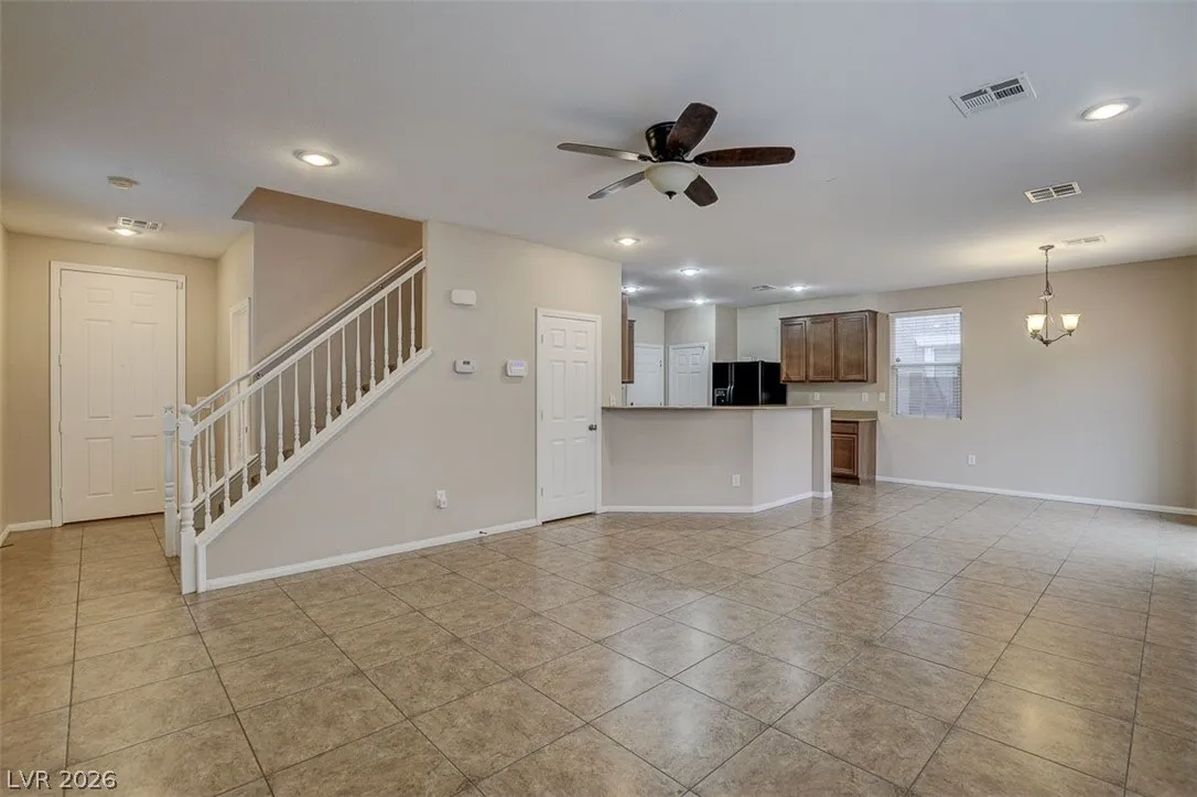 This charming North Las Vegas residence features three bedrooms and boasts a two-car garage. The lower level showcases elegant tile flooring, an inviting open floor plan, and modern amenities including granite countertops and sleek black appliances. The low-maintenance backyard adds to the appeal. Upstairs, you’ll find three comfortable bedrooms. This home is ready for immediate occupancy, offering a seamless move-in process.