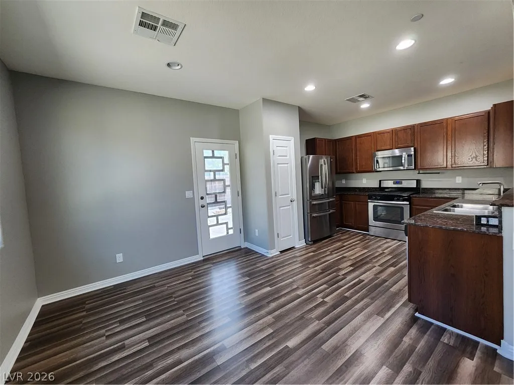 Welcome to this beautiful single-story 3-bedroom home located in Henderson, NV, close to Cadence. With the convenience of a single-story layout, this home is both stylish and functional Enjoy the comfort of ceiling fans throughout the home, perfect for keeping cool during the warmer months. The kitchen boasts stainless steel appliances, perfect for cooking and entertaining. Relax by the firepit in the backyard, ideal for cozy evenings outdoors. The property is conveniently located near shopping centers and parks, providing easy access to amenities and outdoor activities. Don’t miss out on the opportunity to make this lovely house your new home.