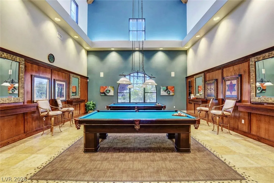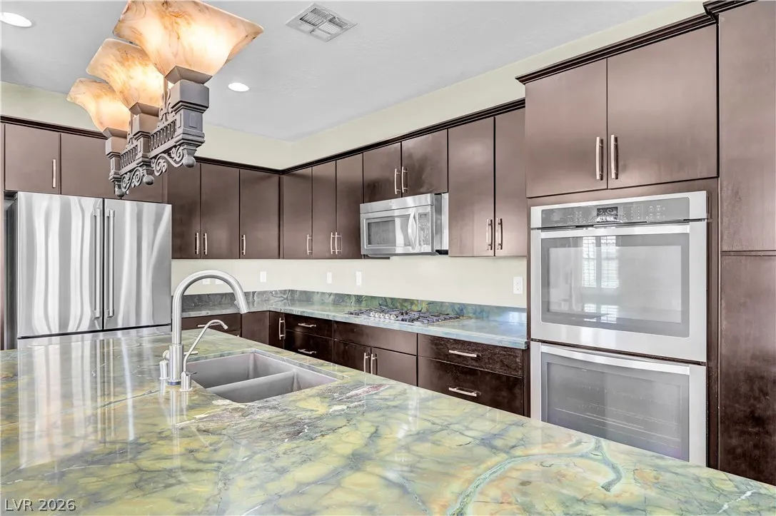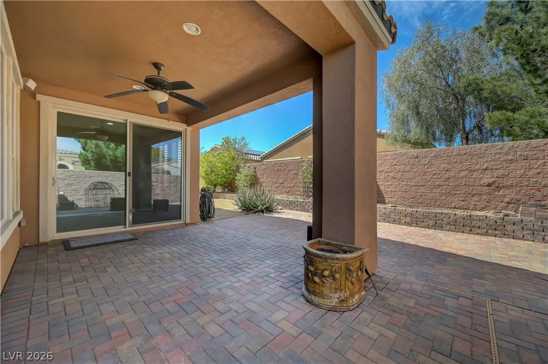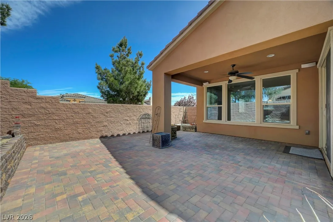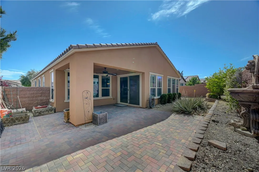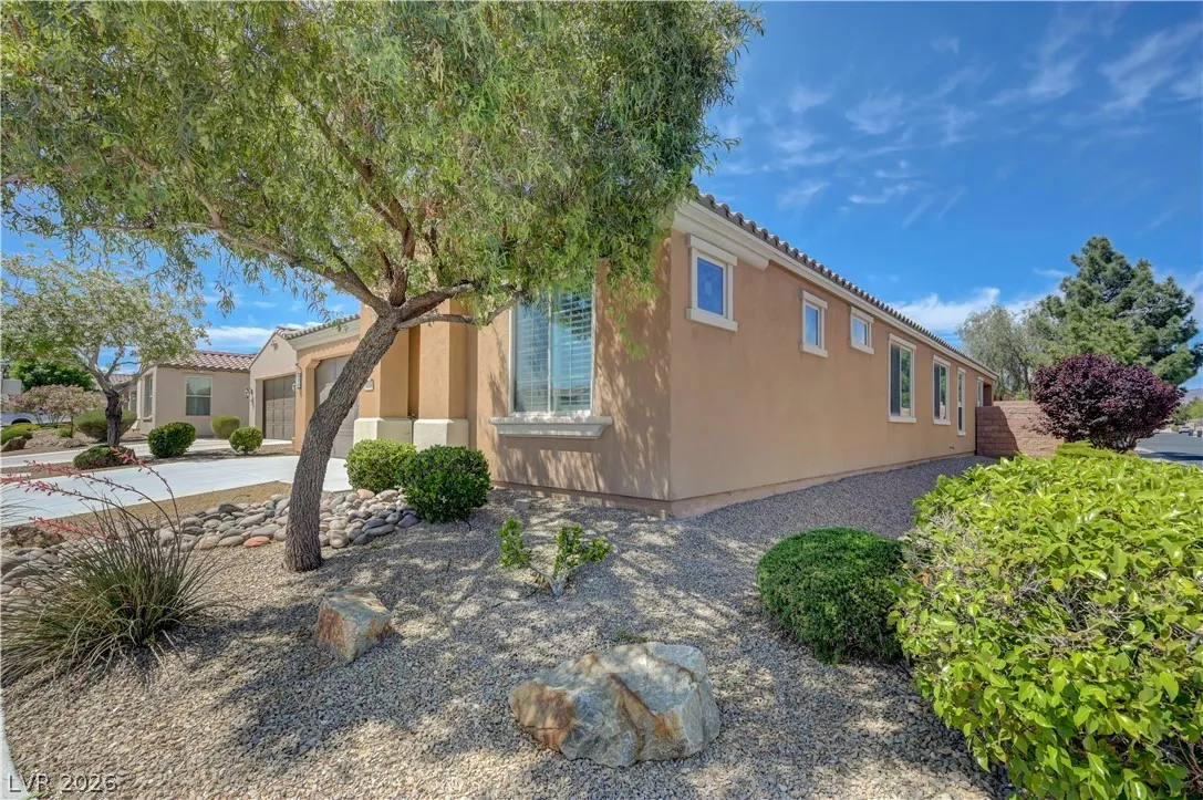 AGE RESTRICTED 55+ Resort Style Living. Gated. Prepaid Solar Panels. Close to New State of The Art VA Hospital and Shopping. Easy Access to the 215 and I-15. Rarely Available. Large Corner Lot. NO CARPET. Extended Garage. 2 Bedrooms, Plus Den with Built in Murphy Bed – Could Easily be 3rd Bedroom. 2-1/2 Baths. Chefs Kitchen, Brazilian Granite Counters, S/S Appliances, Double Ovens, Gas Cook Top, R/O. Huge Island, Tons of Cabinets and Counter Space – Breakfast Area has Plenty of Space for a Table. Primary Retreat with Huge Tiled Shower, Large Vanity, Double Sinks, Walk In Closet. Fabulous Formal Dining Room with Built in Bar with Wine Fridge. Extra Smart Space has Cabinets, Built in Desk/Counters for Crafts/Office or Anything You’d like it to be. Soft Water System. Fabulous Arches Throughout. Shutters. Entertainers Backyard with a Covered Pavered Patio. Clubhouse with 2 Pools, Spa, BBQ Area, Billiards, Gym, Steam Room, Pickleball, Tennis, Putting Green, Bocce, Dog Park, Social Calendar