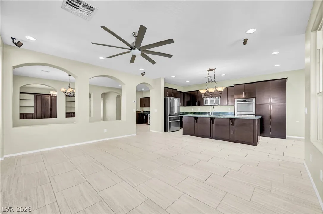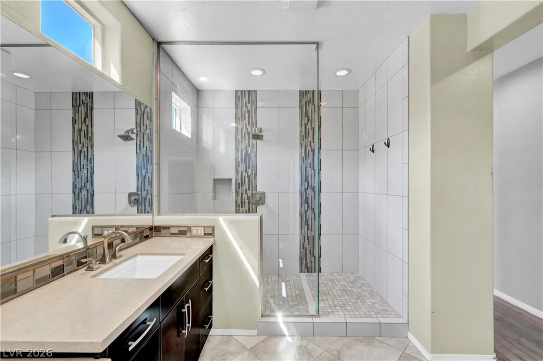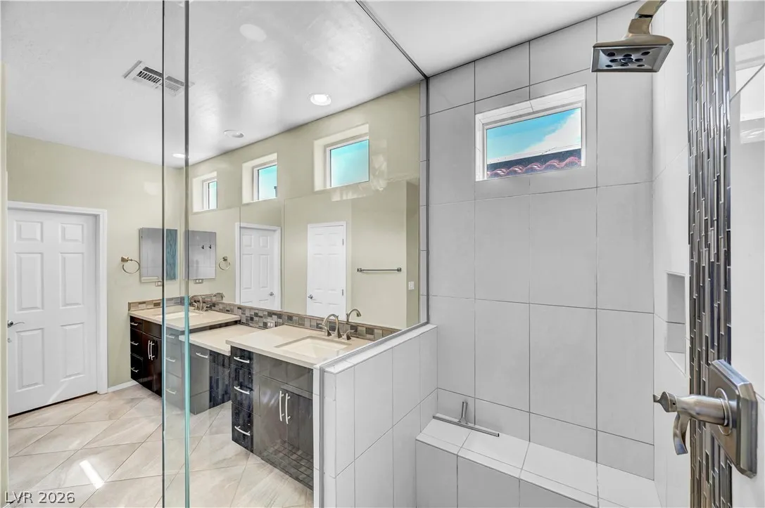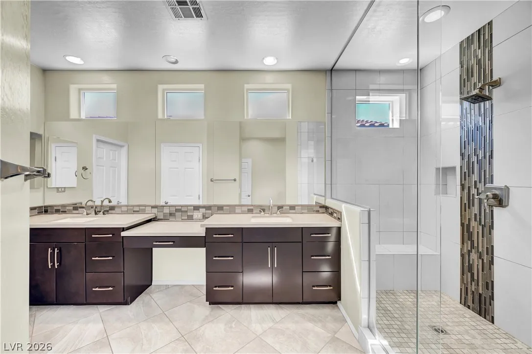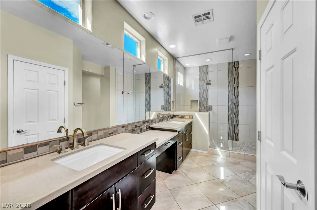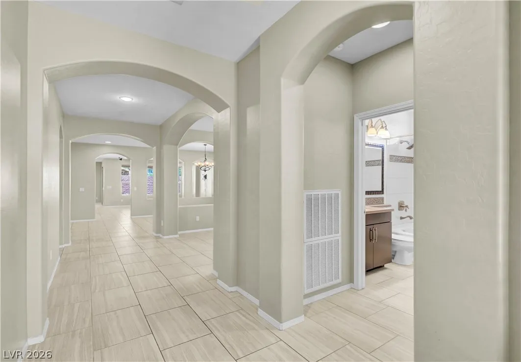 AGE RESTRICTED 55+ Resort Style Living. Gated. Prepaid Solar Panels. Close to New State of The Art VA Hospital and Shopping. Easy Access to the 215 and I-15. Rarely Available. Large Corner Lot. NO CARPET. Extended Garage. 2 Bedrooms, Plus Den with Built in Murphy Bed – Could Easily be 3rd Bedroom. 2-1/2 Baths. Chefs Kitchen, Brazilian Granite Counters, S/S Appliances, Double Ovens, Gas Cook Top, R/O. Huge Island, Tons of Cabinets and Counter Space – Breakfast Area has Plenty of Space for a Table. Primary Retreat with Huge Tiled Shower, Large Vanity, Double Sinks, Walk In Closet. Fabulous Formal Dining Room with Built in Bar with Wine Fridge. Extra Smart Space has Cabinets, Built in Desk/Counters for Crafts/Office or Anything You’d like it to be. Soft Water System. Fabulous Arches Throughout. Shutters. Entertainers Backyard with a Covered Pavered Patio. Clubhouse with 2 Pools, Spa, BBQ Area, Billiards, Gym, Steam Room, Pickleball, Tennis, Putting Green, Bocce, Dog Park, Social Calendar