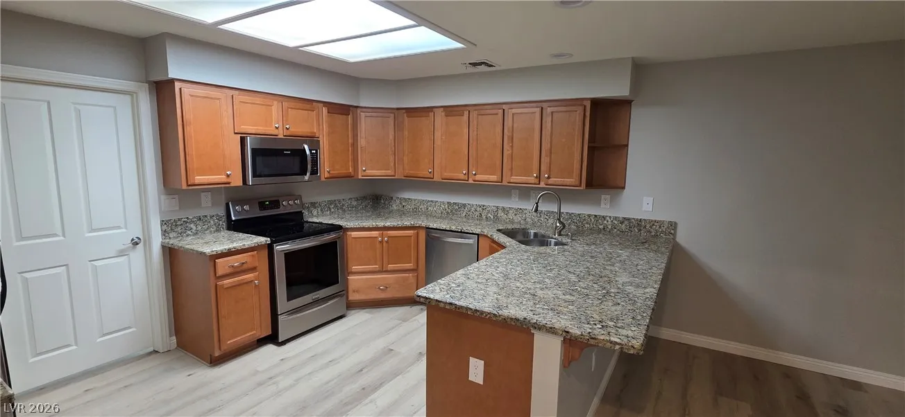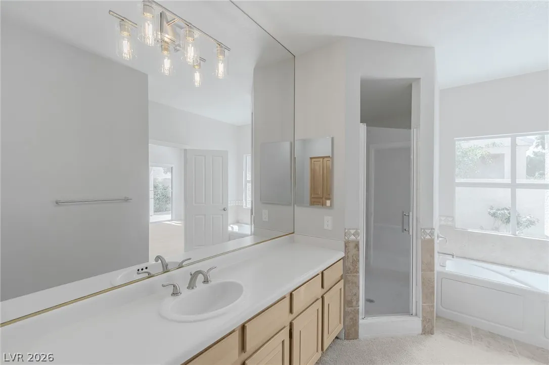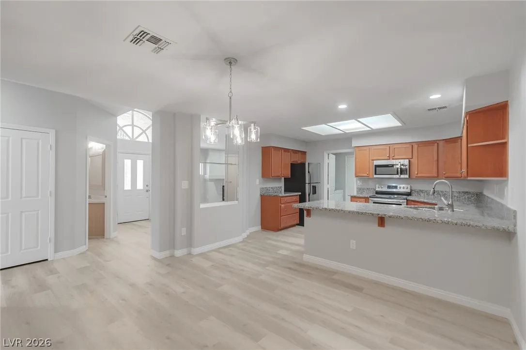 STUNNING 1 story home in charming Guard Gated community with PICTURESQUE curb appeal! dual master suites, brand new luxury vinyl plank floors, New Door handles, New Carpet, New Paint, New LED Lighting, New Faucets, New Shower Doors, New New New! Open & flowing floor plan! Chef’s dream kitchen with rich wood cabinetry, beautiful granite countertops & SS Appliances.