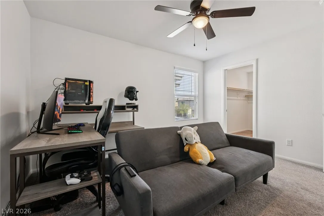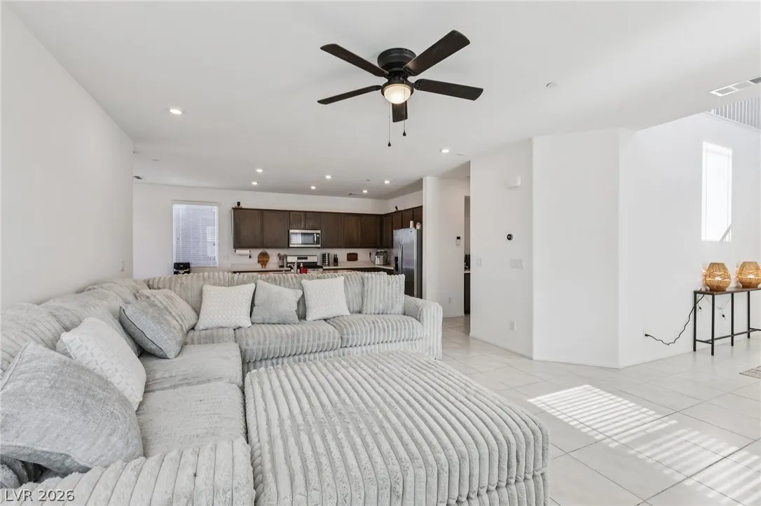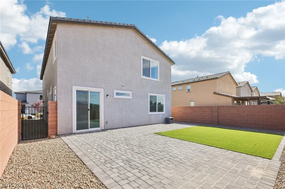 MOVE-IN READY & BETTER THAN NEW! BUILT IN 2022 BY BEAZER HOMES, THIS STUNNING 2-STORY HOME IN GATED RANCHO CROSSINGS OFFERS 4 BR, 3 BA & 2,532 SQ FT OF BEAUTIFULLY DESIGNED LIVING SPACE. ONLY 4 YEARS OLD & IN EXCEPTIONAL CONDITION. A GRAND ENTRY W/ ELEGANT STAIRCASE OPENS TO A SPACIOUS GREAT ROOM W/ CEILING FAN & TILE THRU-OUT THE 1ST FLOOR. THE GORGEOUS OPEN KITCHEN FEATURES AN OVERSIZED ISLAND, QUARTZ COUNTERS, SS APPLIANCES & FRIDGE INCL—PERFECT FOR ENTERTAINING. THE DINING AREA W/ SLIDER OPENS TO A FULLY LANDSCAPED BACKYARD W/ PAVERS & SYNTHETIC GRASS FOR EASY OUTDOOR LIVING. A DOWNSTAIRS GUEST BR W/ FULL BATH IS IDEAL FOR VISITORS, AN OFFICE OR GYM. UPSTAIRS FEATURES A LG LOFT, AN EXPANSIVE PRIMARY SUITE W/ FAN, A HUGE WALK-IN CLOSET & A SPA-LIKE BATH. BEDS 3 & 4 ALSO FEATURE CEILING FANS. ALL APPLS INCL. SOLAR INSTALLED FOR SAVINGS! CLOSE TO SHOPPING, HWY ACCESS, NELLIS & CREECH AFB. A TRUE TURNKEY OPPORTUNITY!
