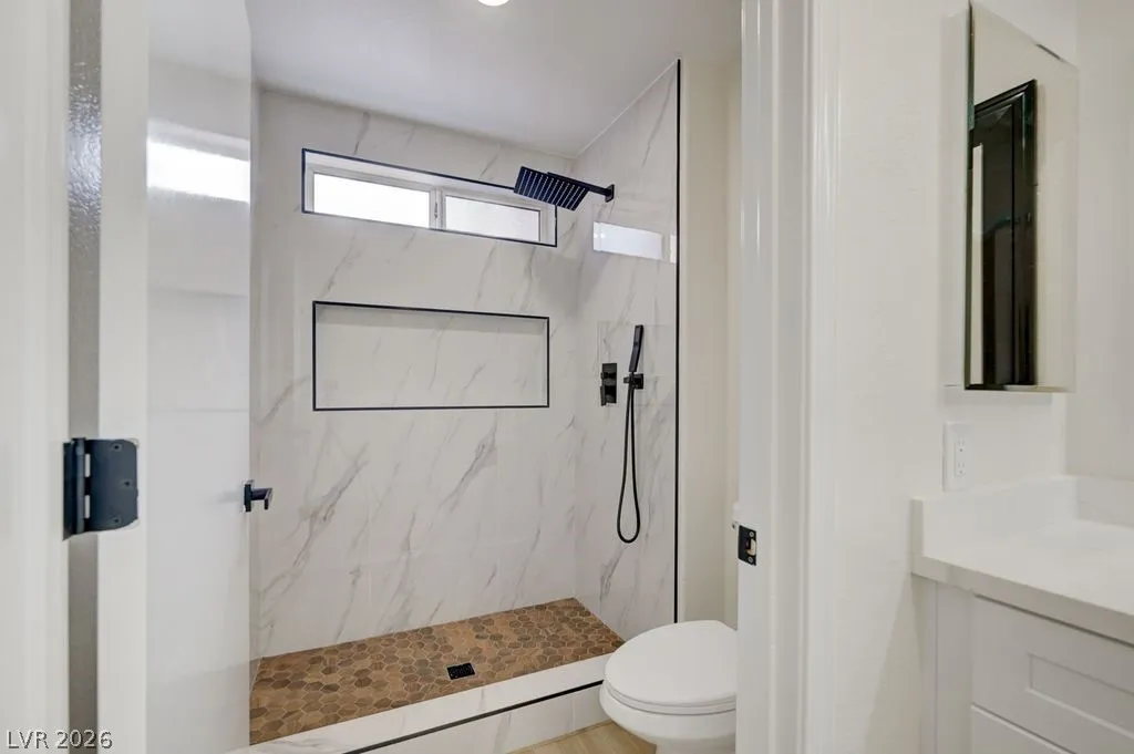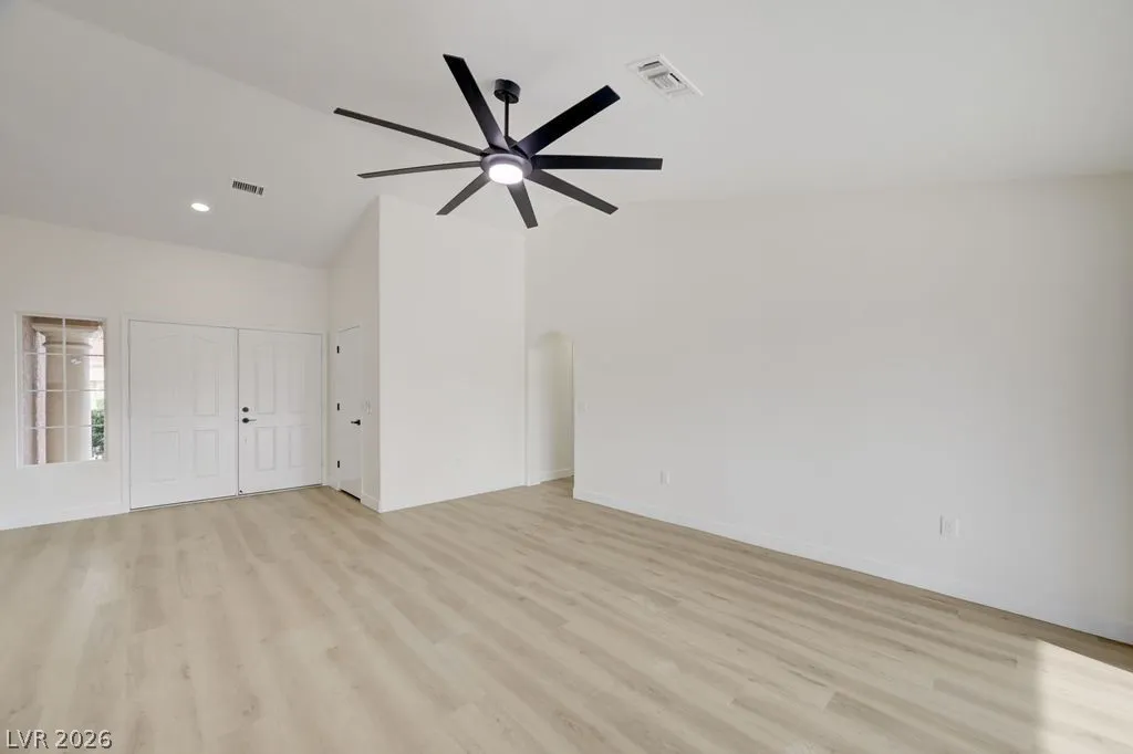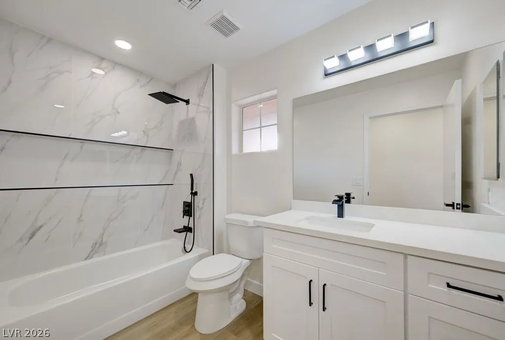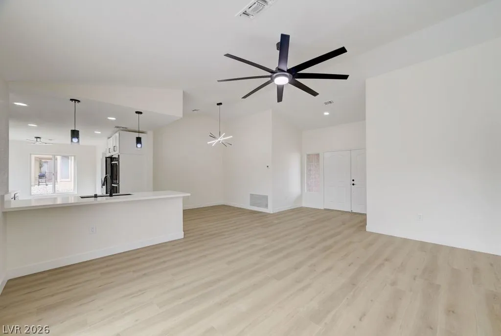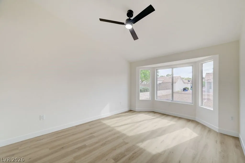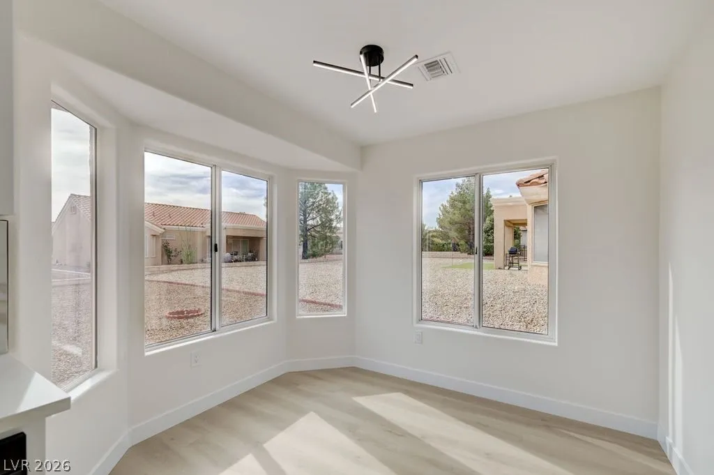 Beautiful completely remodeled open concept home in the age restricted 55+ Sun City Summerlin community! This home features new quartz countertops throughout, kitchen sink and the stove location were switched unlike other remodels creating a more functional kitchen, new custom cabinets throughout, new LG black stainless steel appliances, double ovens, microwave, refrigerator, kitchen backsplash, dual bathroom vanities, custom tile shower, new interior paint, laminate flooring with 5 inch baseboards, new plumbing and lighting fixtures, covered patio and vaulted ceilings! Sun City Summerlin has again won best Premier 55+ community in the state of Nevada and #3 in the US with 3 golf courses, 2 restaurants, 4 club houses, many amenities including 4 indoor/outdoor pools, gyms, tennis and pickle ball courts, racquetball court, baseball park, miniature golf, roaming patrols, social clubs and activities galore! Living in Sun City Summerlin makes you feel like you are on vacation!