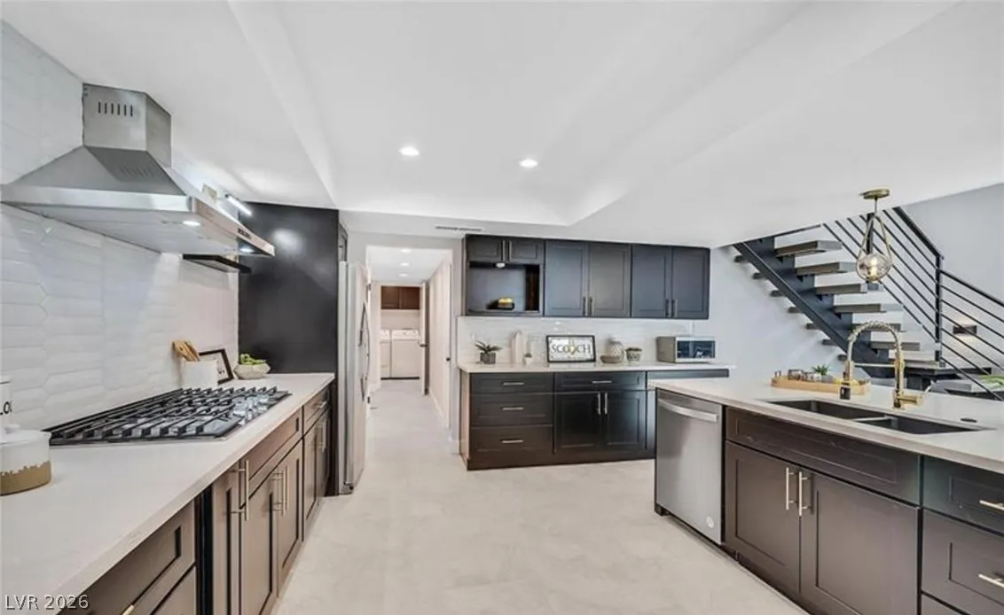 chef’s kitchen, complete with quartz countertops, espresso shaker cabinets, and NEW stainless steel