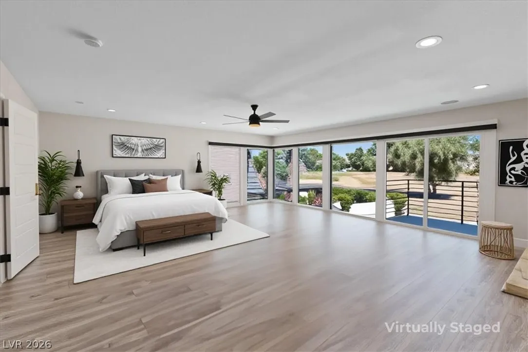 massive primary suite offers a spa-inspired bathroom, new floor-to-ceiling windows, and a balcony with