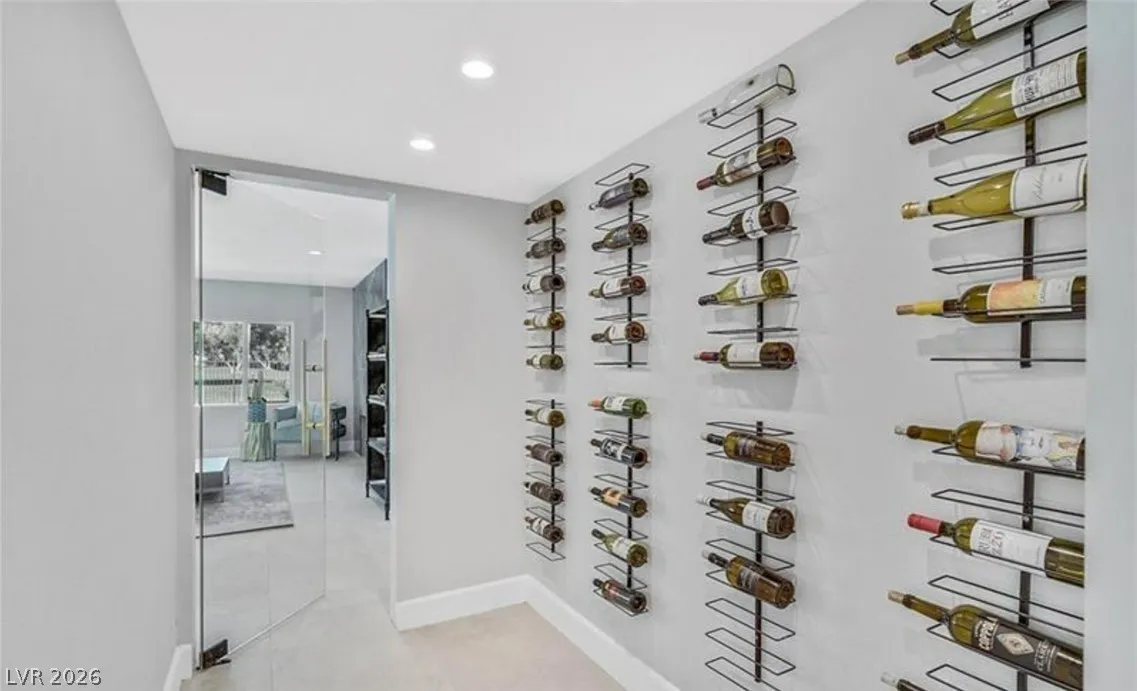 vaulted ceilings, Italian tile throughout, a stylish floating staircase, refrigerated wine room, wet bar and