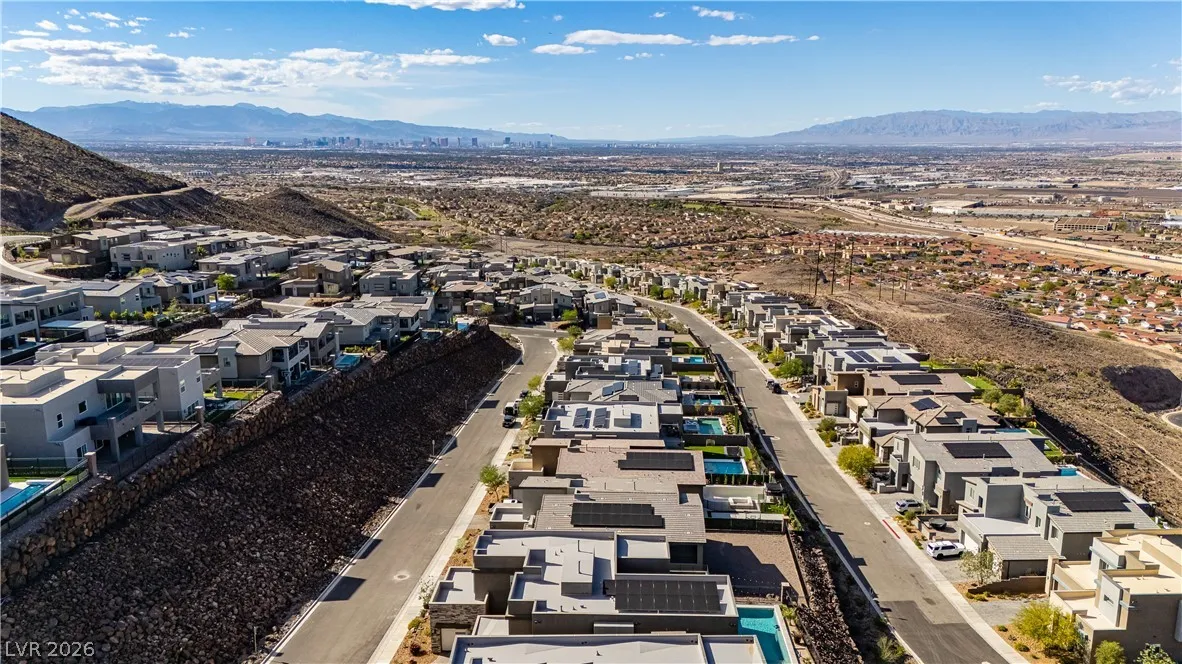 DISCOVER UNPAARALELE LUXURY AT 322 NATOIRE COURT, AN EXQUISITE SOLAR POWERED RESIDENCE IN ELITE TRESOR. COMMANDING SWEEPING LAS VEGAS STRIP, CITY, AND MOUNTAIN VISTAS. THIS ARCHITECTURAL MASTERPIECE BLENDS PRIVACY, MODERN DESIGN AND IMPECCABLE OPEN-CONCEPT LIVING. PREMIUM FINISHES, EXPANSIVE SPACES, AND A CHEF INSPIRED KITCHEN WITH PROFESSIONAL-GRADE APPLIANCES AWAIT. THE EXCLUSIVE NEXT GEN SUITE-WITH PRIVATE ENTRANCE, GARAGE, BEDROOM AND BATH, KITCHENETTE. ELEVATES MULTIGENERATIONAL LIVING. UPSTAIRS, THE SPACIOUS PRIMARY SUITE BOAST A PRIVATE BALCONY WITH SWEEPING VIEWS, SPA INSPIRED BATH AND A LARGE WALK IN CLOSET. A VERSATILE DEN/LOFT WITH HALF BATH ADDS FLEXIBILITY. STEP OUTSIDE TO A RESORT STYLE BACKYARD: NEW POOL/SPA, FIREPIT, COVERED PATIO, PERFECT FOR ENTERTAINING AMID STUNNING VIEWS. AVAILABLE JUST 1ST IN HENDERSONS PREMIER COMMUNITY OF TRESOR. DON’T MISS THIS RARE GEM.