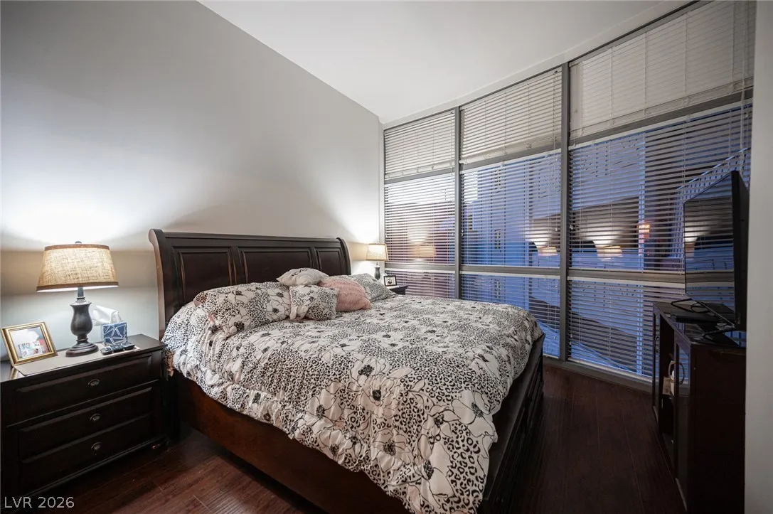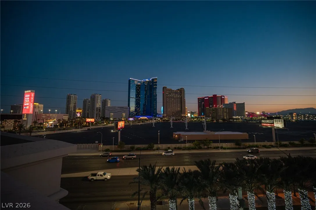 bathroom condo offers breathtaking views of the Strip from floor-to-ceiling windows and two balconies.