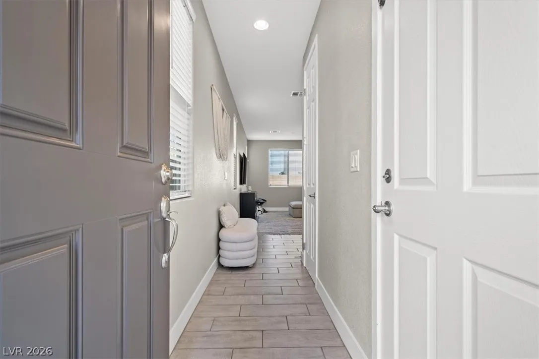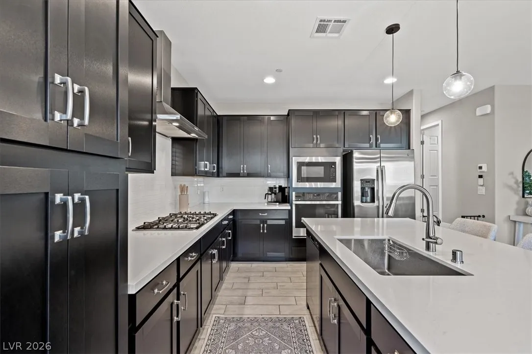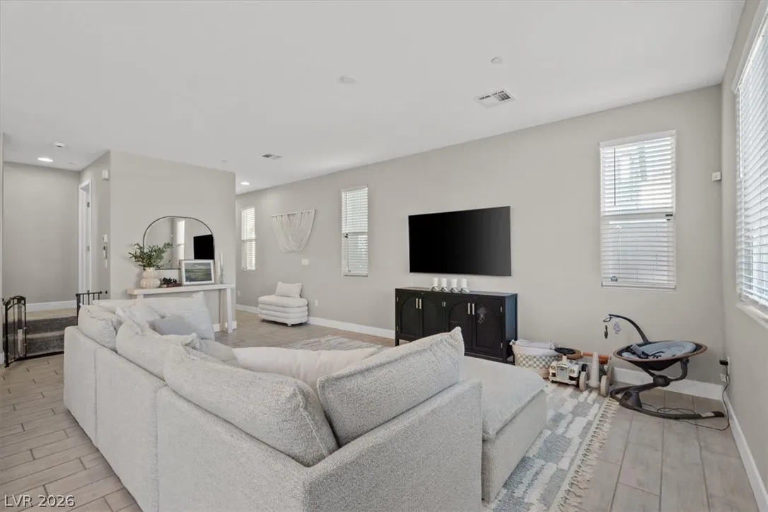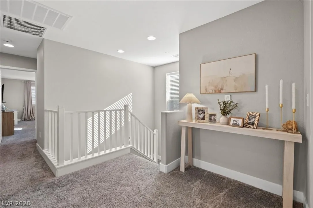 Welcome to your LIKE NEW home in Dove Point! Bright, well-kept, and ideally located near highway access, dining, and shopping along N Rancho. Enjoy countless upgrades throughout: artificial turf, gazebo, and a relaxing owner’s suite retreat. The primary bath features quartz shower surrounds, while the gourmet kitchen boasts GE stainless steel appliances, a vented hood, Duraform linen-finish cabinets, 42″ uppers, quartz countertops, tile backsplash, and upgraded sink and faucet. Additional highlights include upgraded insulation, soft water loop, tankless water heater, enhanced lighting and ceiling fan prewires, upgraded bath fixtures, and stylish 7″x22″ ceramic tile flooring throughout the main level and wet areas, plus upgraded carpet elsewhere. Finished with two-tone paint and mission-style stair rails. Why buy new when this one has it all—plus a completed backyard! Home!