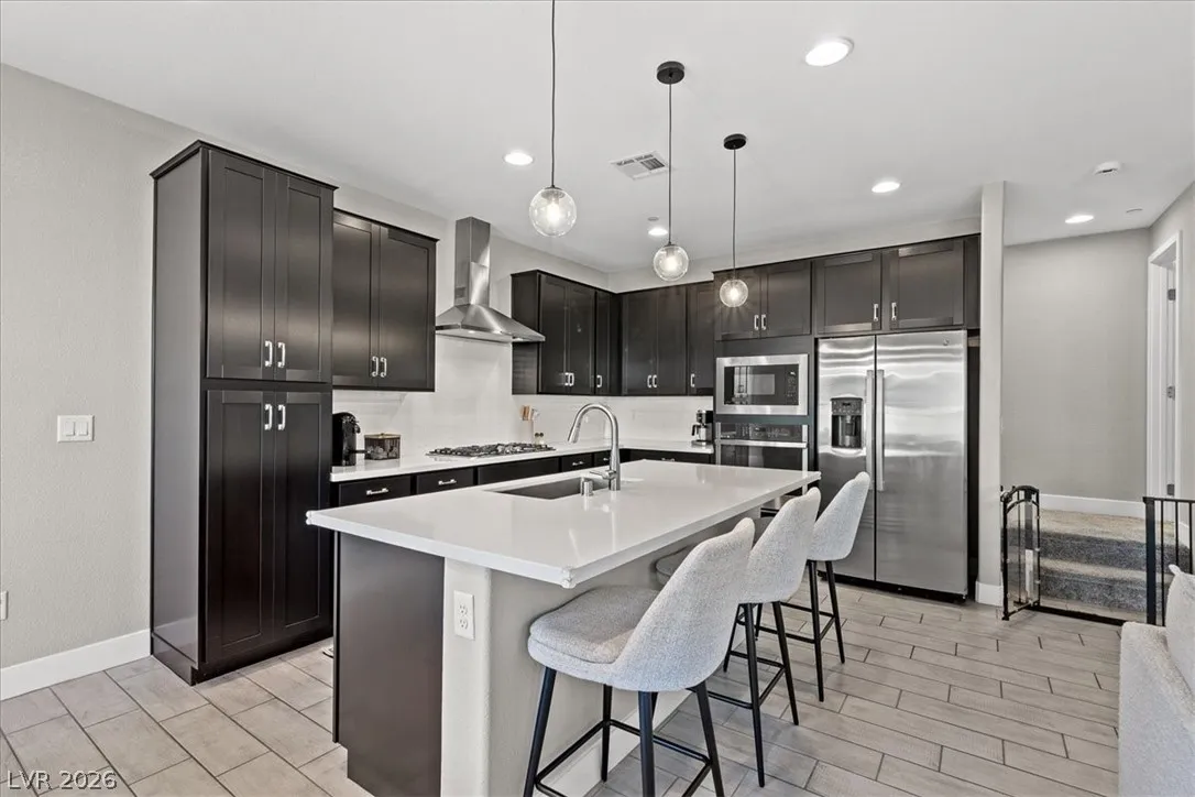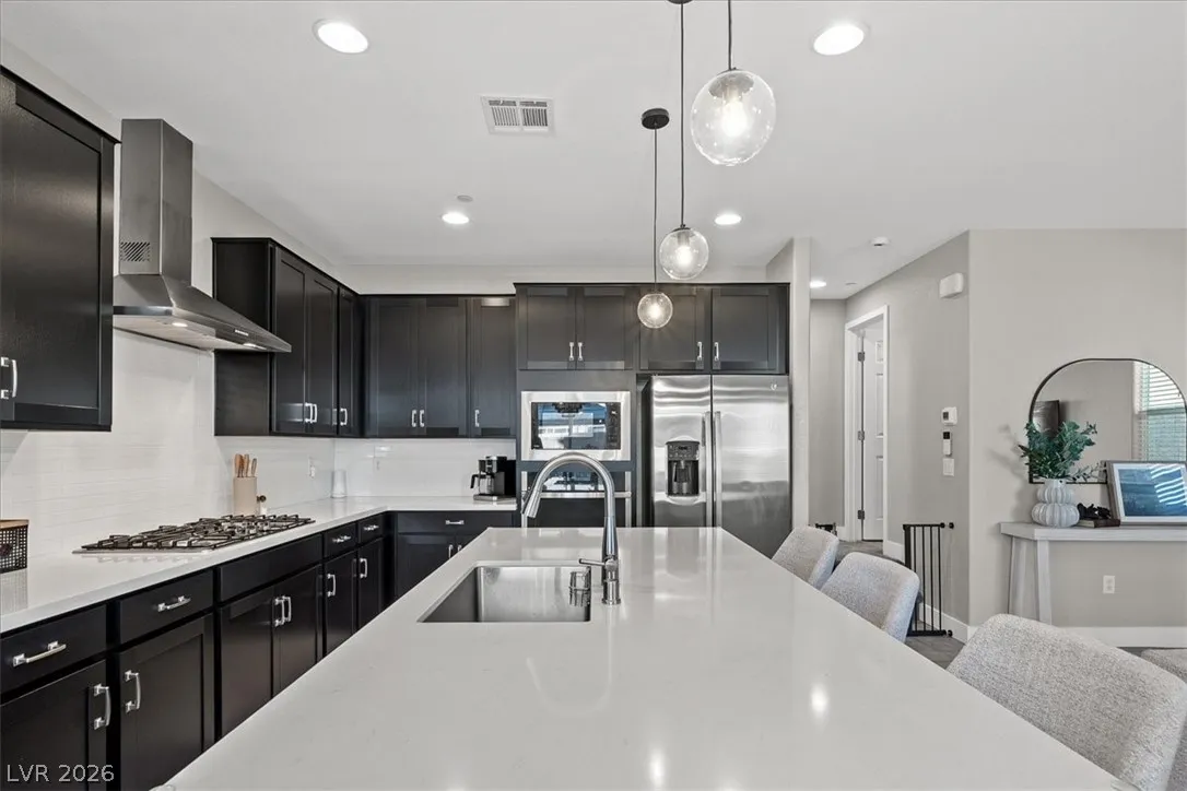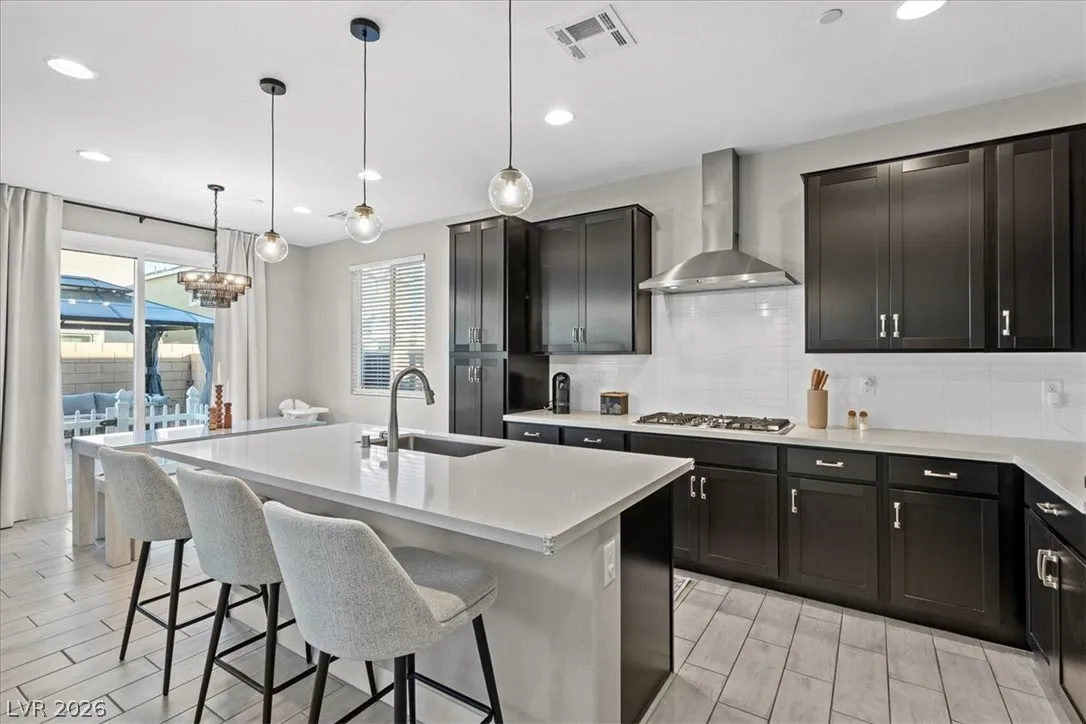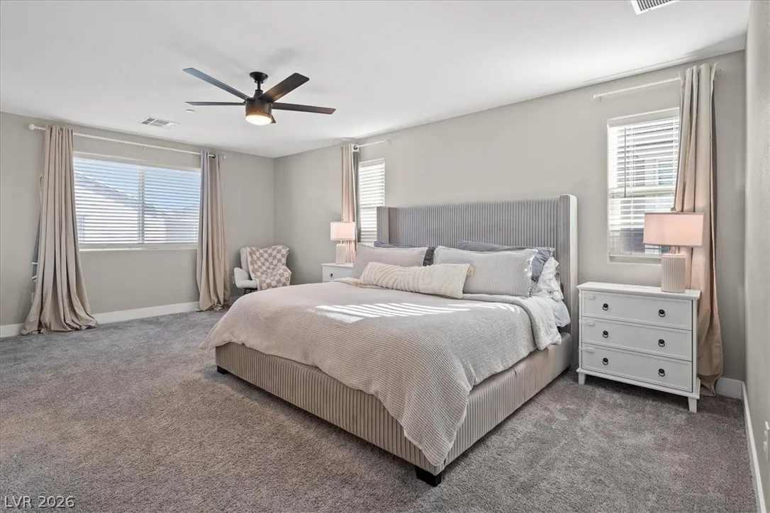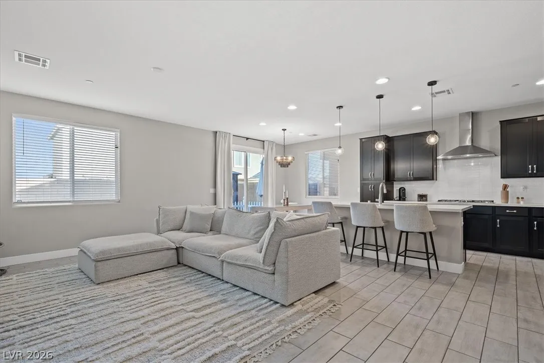 Welcome to your LIKE NEW home in Dove Point! Bright, well-kept, and ideally located near highway access, dining, and shopping along N Rancho. Enjoy countless upgrades throughout: artificial turf, gazebo, and a relaxing owner’s suite retreat. The primary bath features quartz shower surrounds, while the gourmet kitchen boasts GE stainless steel appliances, a vented hood, Duraform linen-finish cabinets, 42″ uppers, quartz countertops, tile backsplash, and upgraded sink and faucet. Additional highlights include upgraded insulation, soft water loop, tankless water heater, enhanced lighting and ceiling fan prewires, upgraded bath fixtures, and stylish 7″x22″ ceramic tile flooring throughout the main level and wet areas, plus upgraded carpet elsewhere. Finished with two-tone paint and mission-style stair rails. Why buy new when this one has it all—plus a completed backyard! Home!