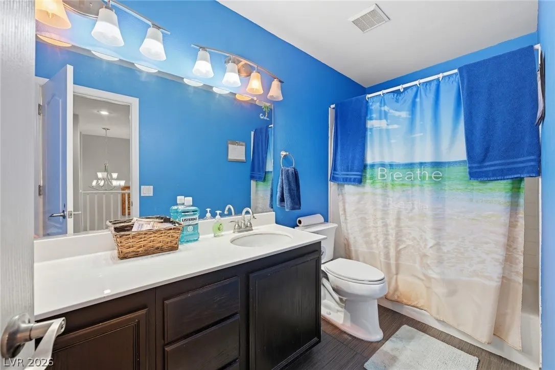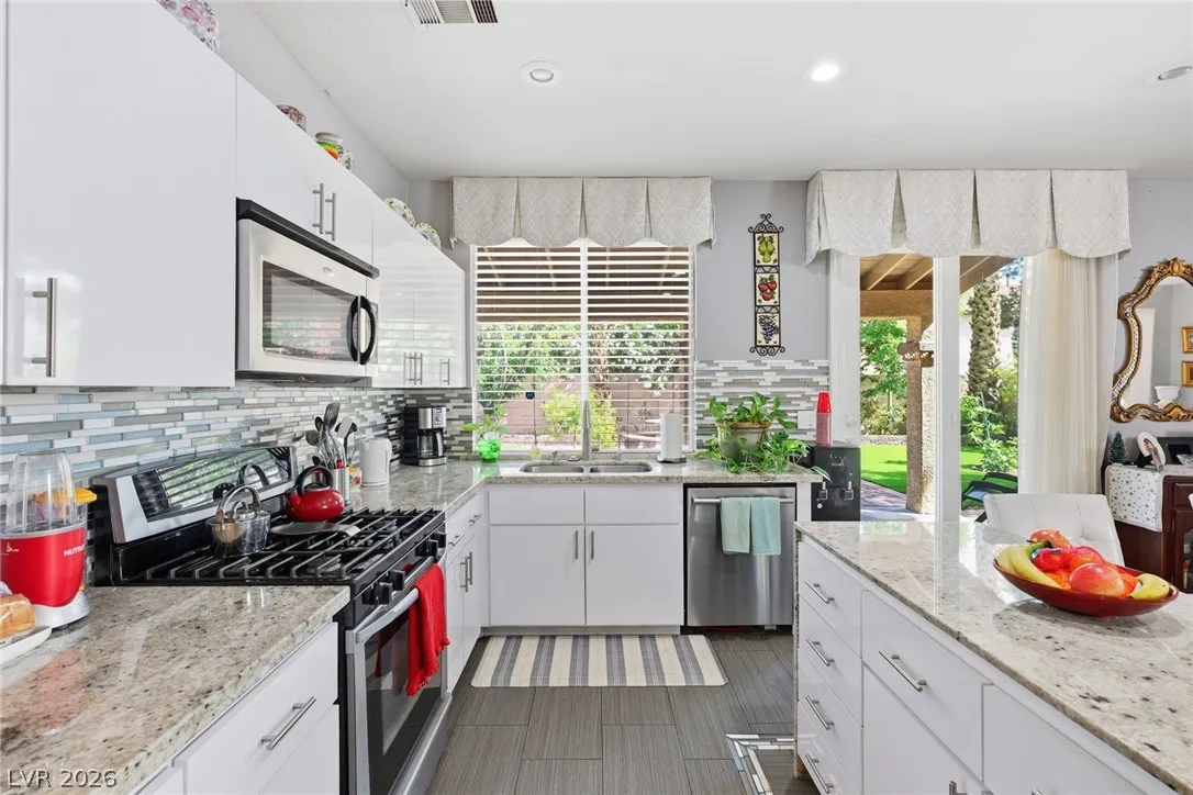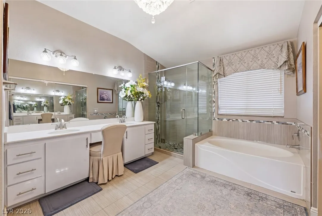 Absolutely stunning, fully upgraded home with over $100,000 in modern features. This spacious two-story residence offers 5 bedrooms plus a versatile loft. A custom gated front entry with double doors creates an impressive first impression. The beautifully remodeled kitchen is designed for both style and function, featuring a built-in dining area, sleek tile flooring, stainless steel appliances, granite countertops, a large walk-in pantry, custom window coverings, and a center island. The main-level bedroom offers tile flooring, a walk-in closet, and convenient access to a fully remodeled bathroom just steps away. Upstairs, you’ll find three generously sized guest bedrooms along with an impressive primary suite. The primary retreat features custom window coverings, a beautifully remodeled bathroom with dual sinks, a dedicated makeup area, a custom tile and glass-enclosed shower, a soaking tub, and an expansive walk-in closet with custom built-ins. Close to shopping & freeway access.