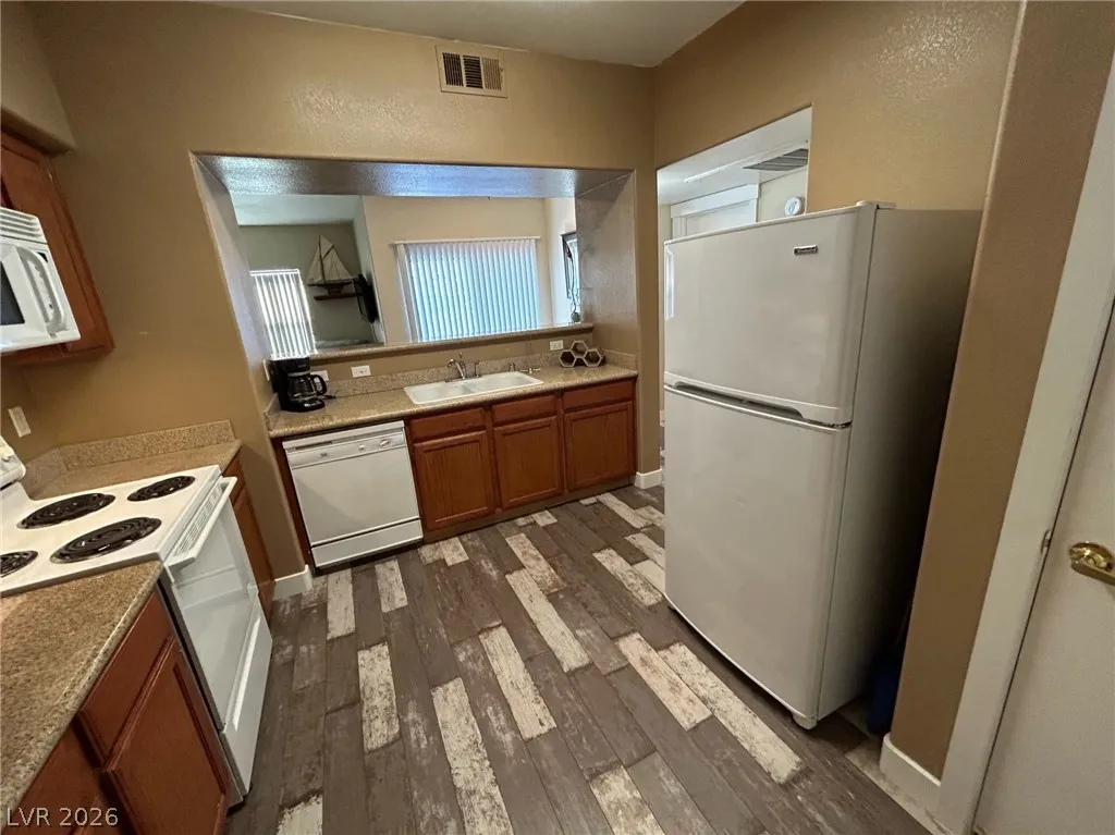 Tastefully renovated first floor, fully furnished, two bedroom two bathroom condo in a gated Southwest condo. Finished with wood laminate flooring, granite countertops, and neutral tones throughout. Enjoy your private patio, washer/dryer in unit, assigned carport space, and desk to work from home. Location is tucked away in community, but still walking distance to luxury community amenities including two pools, a spa, workout center, playground, and clubhouse. Just down the road are retail stores, great restaurants, gyms, parks, coffee shops, and grocery stores. All housewares, linens, utilities, Youtube TV, and WiFi are included with your stay. Available for short or long term leases!