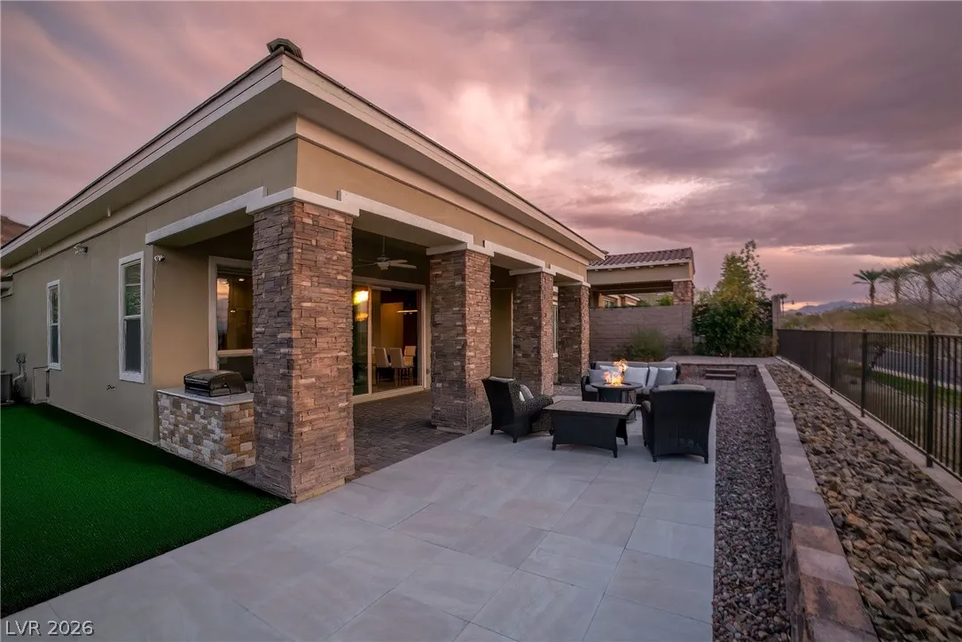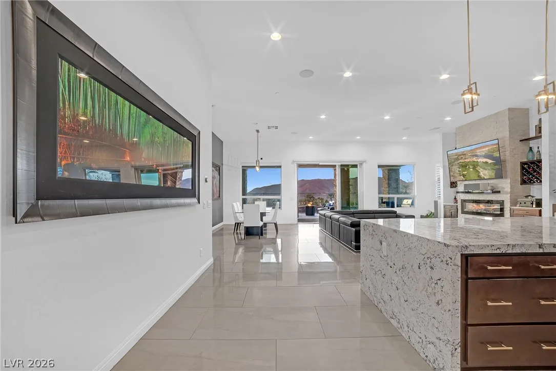 Fully furnished luxury rental in Lake Las Vegas available for 6 months or longer, located in a private gated community with Strip and mountain views. This single-story fully furnished home features an office plus 3 spacious bedrooms, each with en-suite baths and large walk-in closets, offering comfort and privacy throughout. The open-concept layout includes marble tile flooring throughout, tall ceilings, and large windows that fill the home with natural light while showcasing the beautifully landscaped yard. The kitchen features a waterfall island, tall custom cabinetry, and modern finishes, perfect for entertaining. Step outside to a fully landscaped backyard with a fire pit and incredible views, ideal for relaxing or hosting guests. Conveniently located near Village shops, dining, and the entrance to Lake Las Vegas, this home offers the perfect blend of luxury, lifestyle, and convenience, fully furnished move-in ready luxury.