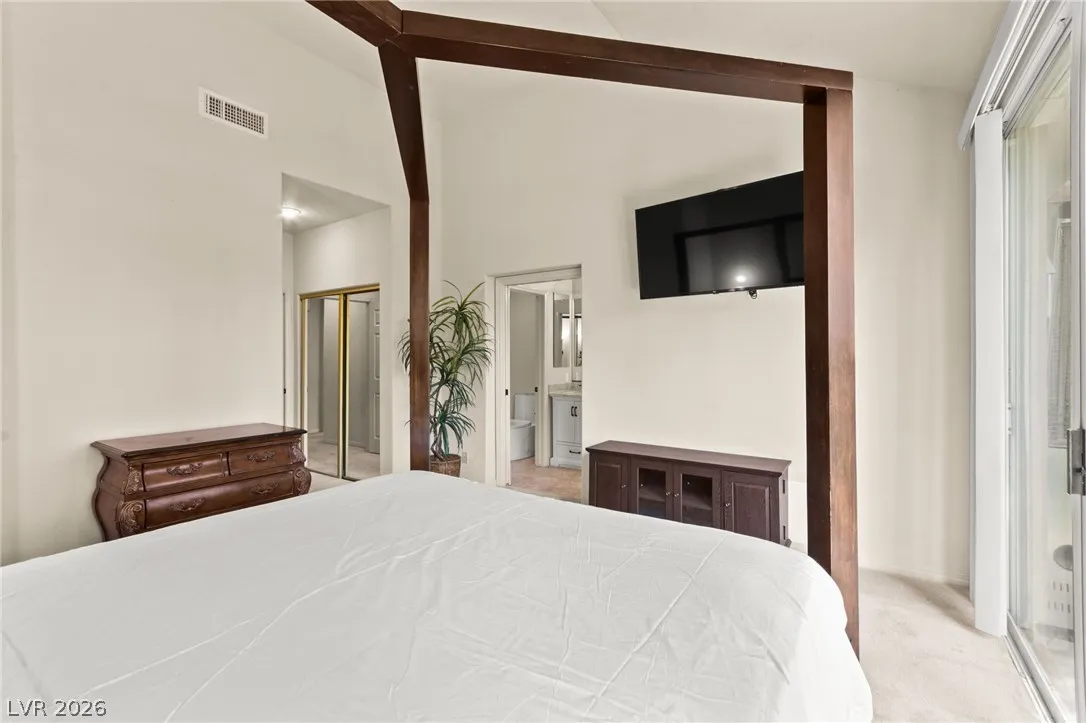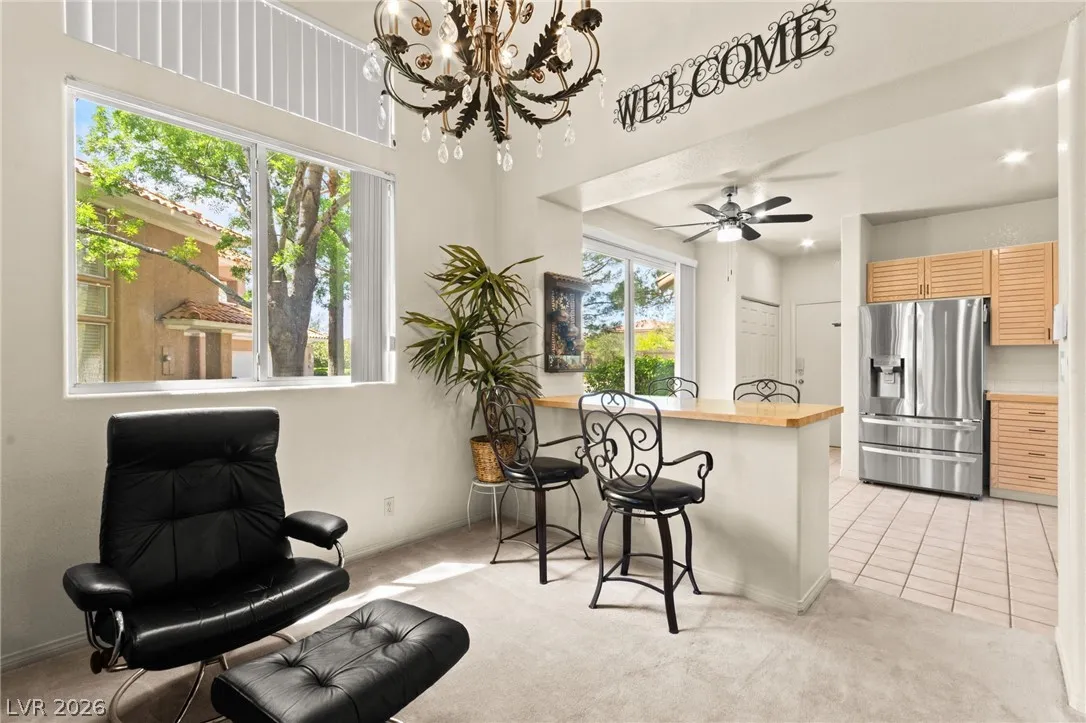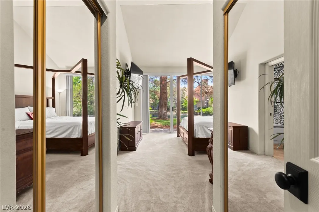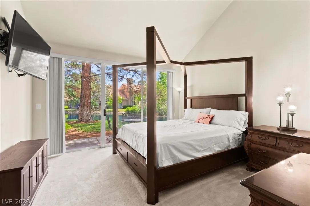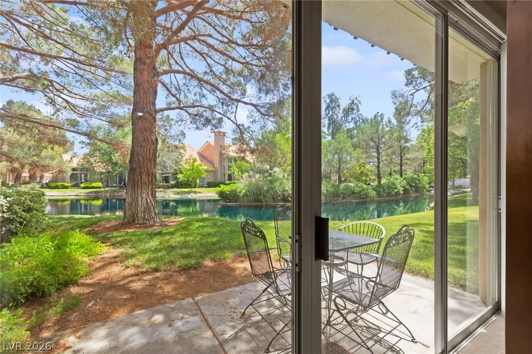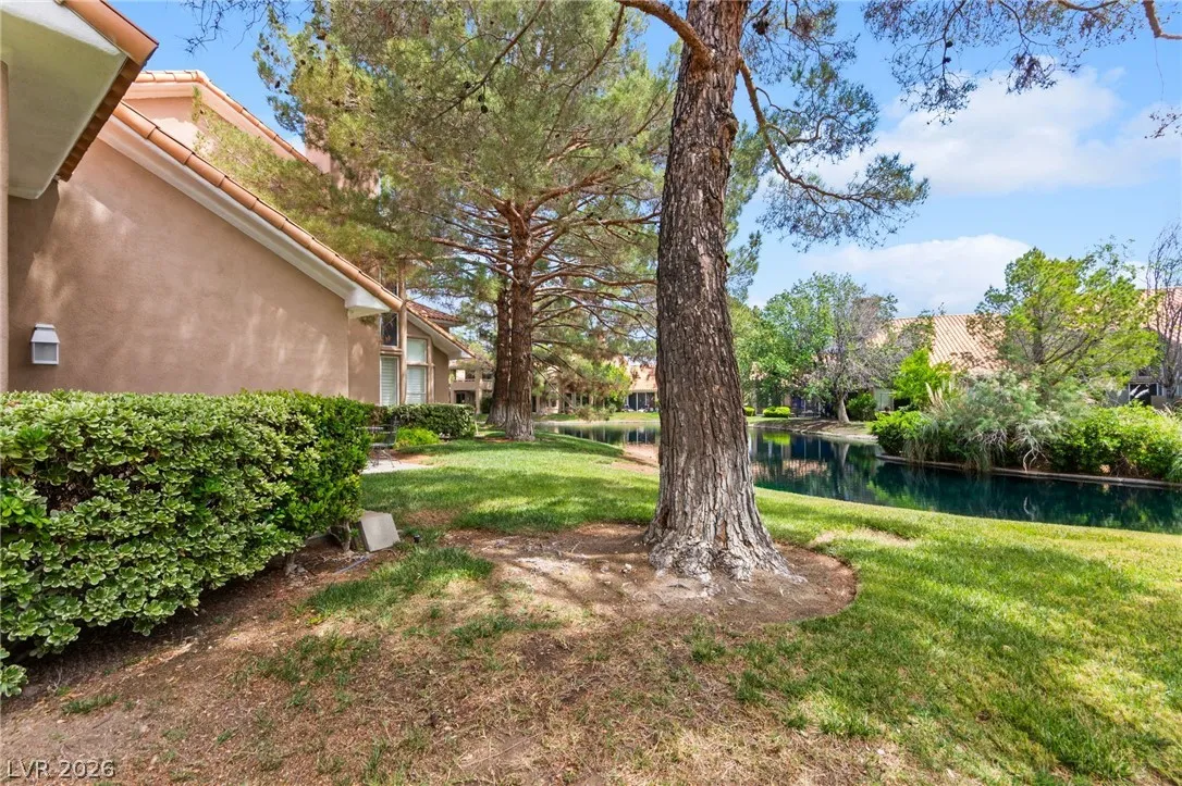 Welcome to this beautifully maintained townhome in the prestigious guard gated community of Spanish Trails. Ideally situated in a prime location within the community, this home offers both privacy and convenience. Step inside to find soaring vaulted ceilings that create an open, airy feel throughout the main living spaces. The home features thoughtfully updated bathrooms with modern finishes, adding comfort and style. Enjoy peaceful indoor outdoor living with private, serene walkouts that overlook a tranquil pond surrounded by lush, mature landscaping. This setting provides a rare sense of calm and natural beauty, perfect for relaxing or entertaining. Spanish Trails offers a premier lifestyle with 24 hour guard gated security, manicured grounds, and a highly sought after central location close to dining, shopping, and entertainment.