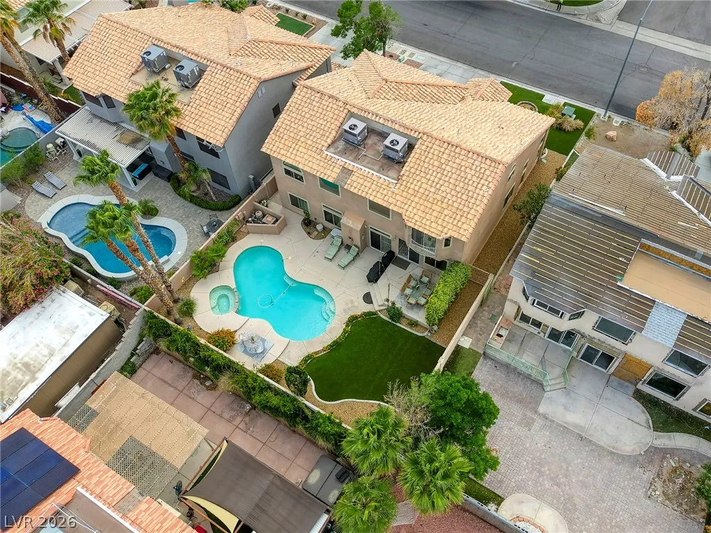 This turn-key home showcases thoughtful, high-quality upgrades, including brand-new windows, beautifully remodeled bathrooms, and expanded kitchen cabinetry with smooth-gliding shelves. Step outside to a sparkling pool and spa with a low-maintenance yard, or relax on the elevated patio in your private outdoor retreat. Inside, enjoy multiple spacious living areas perfect for entertaining, complete with a built-in wet bar. A downstairs bedroom next to a ¾ bath offers ideal guest accommodations. Owned by the ORIGINAL owners, pride of ownership shines throughout this impeccably clean NW Las Vegas home. Located in a quiet, Summerlin-adjacent neighborhood with NO HOA, you’ll enjoy quick access to the 215 and 95, plus nearby shopping and dining along Cheyenne. Minutes from Garehime Heights Park and Durango Hills Golf. Explore the 3D tour today!