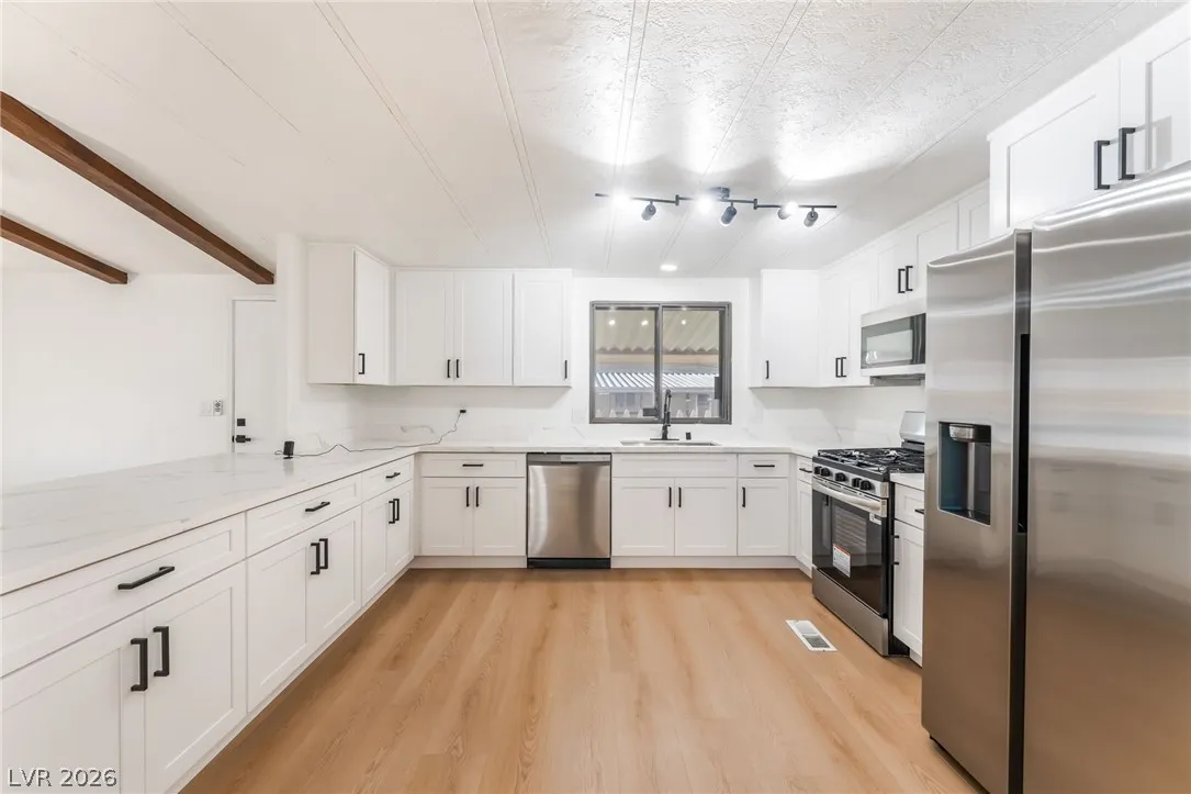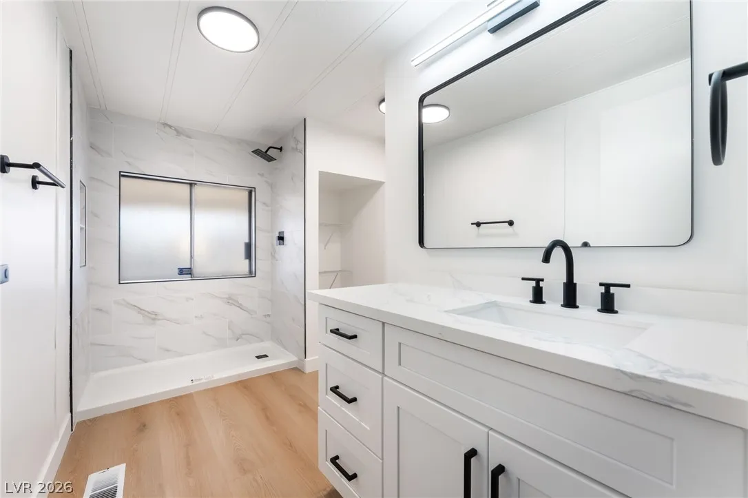This modernized property has been completely updated & renovated & there is no land lease. There is an entirely brand new kitchen with fresh cabinetry, stainless steel appliances & quartz countertops. The primary bedroom has an oversized shower with beautiful tile.